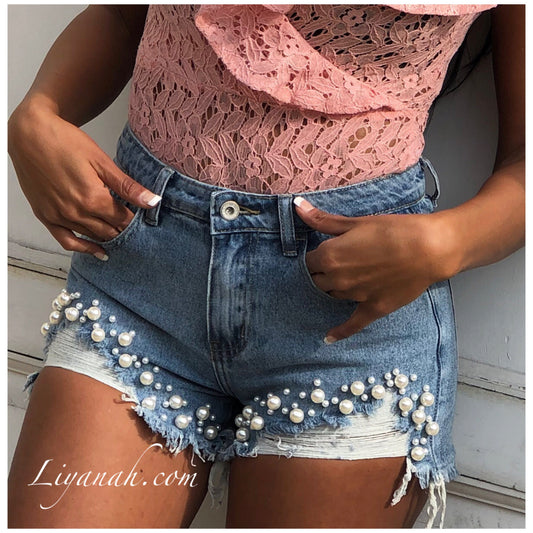 SHORT JEAN Destroy Perles Modèle JANYALA