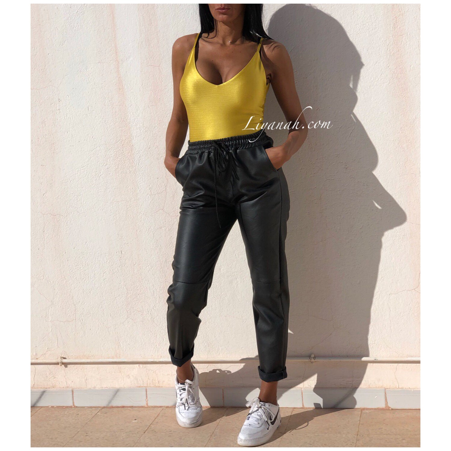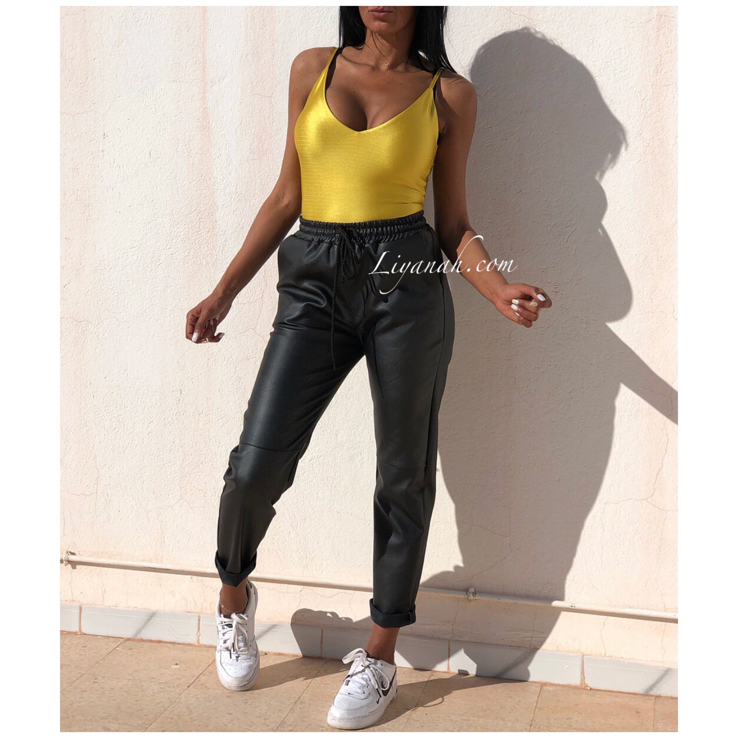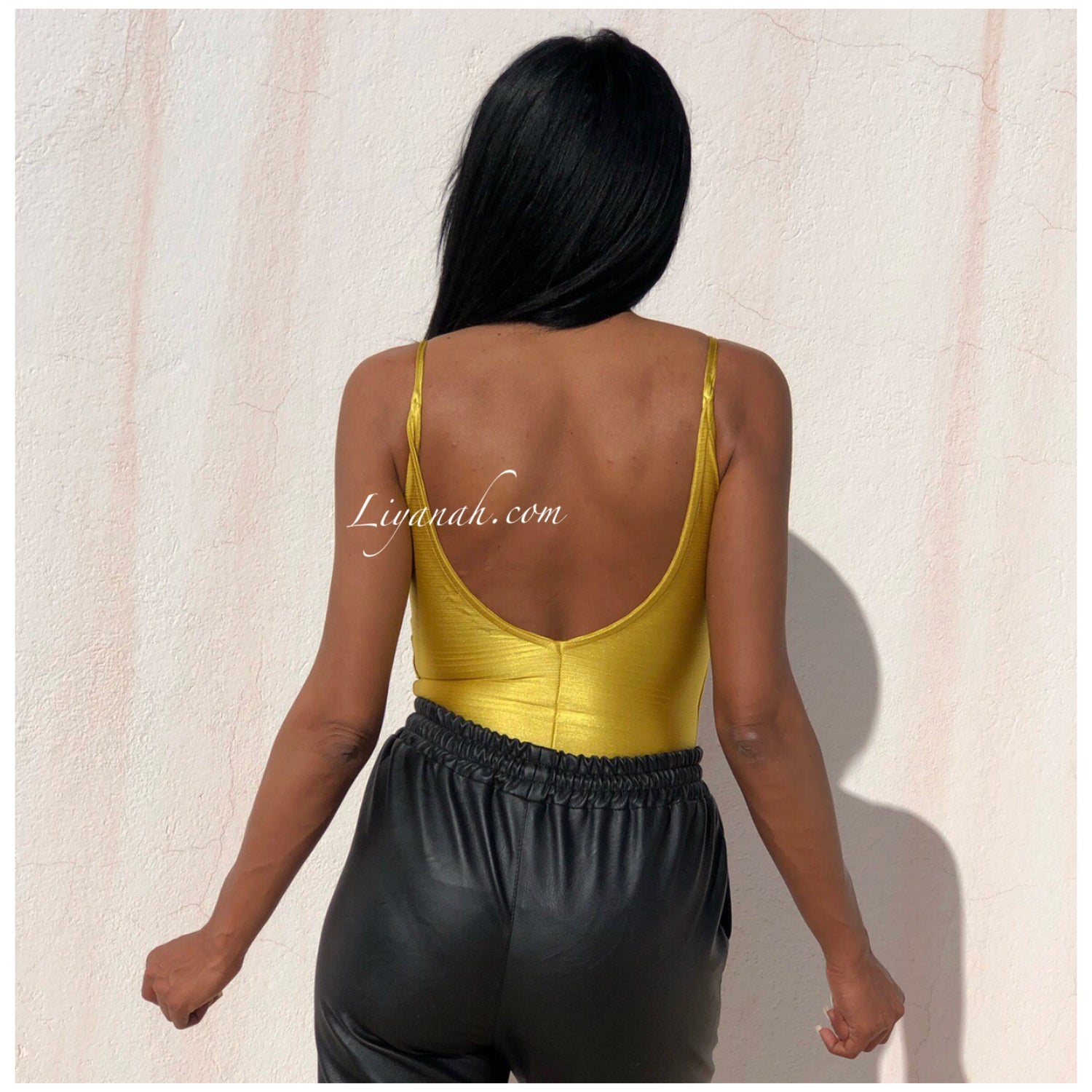 BODY Aspect Brillant Modèle OKARA JAUNE - Dingue des bodys chez Liyanah et ce modèle est sexy et décontracté !!! Portez-le avec un jean, short, pantalon ou jupe !!! Il s'adaptera à toutes vos envies !! Décolleté plongeant avec dos nu !! 100% Polyester - Taille XS au L - FERMETURE À BOUTONS A L’ENTREJAMBE - Notre modèle porte une Taille XS / Pour des raisons d'hygiène, les bodys et sous vêtement ne sont ni repris ni échangés