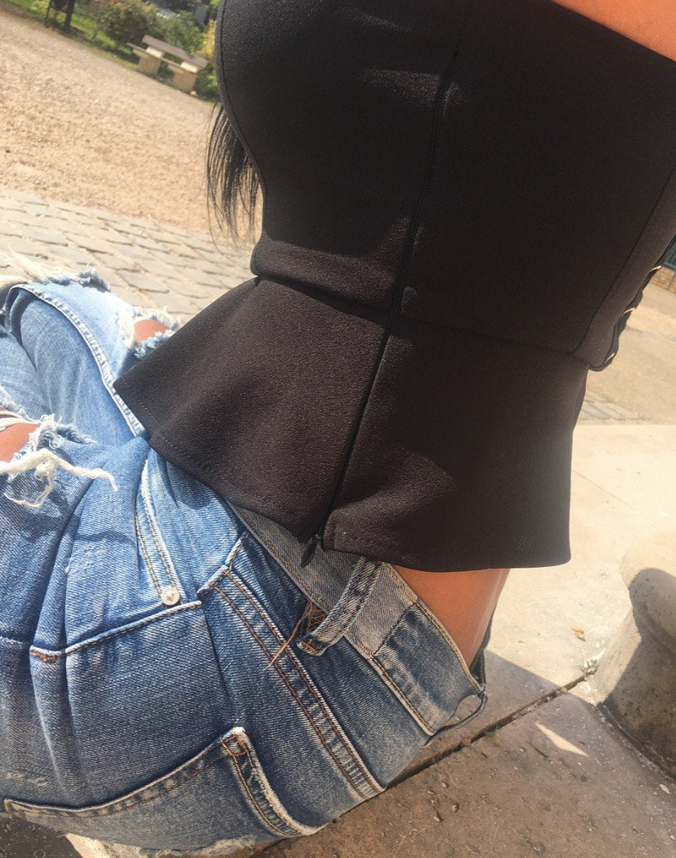 Crop top super chic avec un décolleté, de couleur noir intemporelle et ses lacets au top de la tendance !!