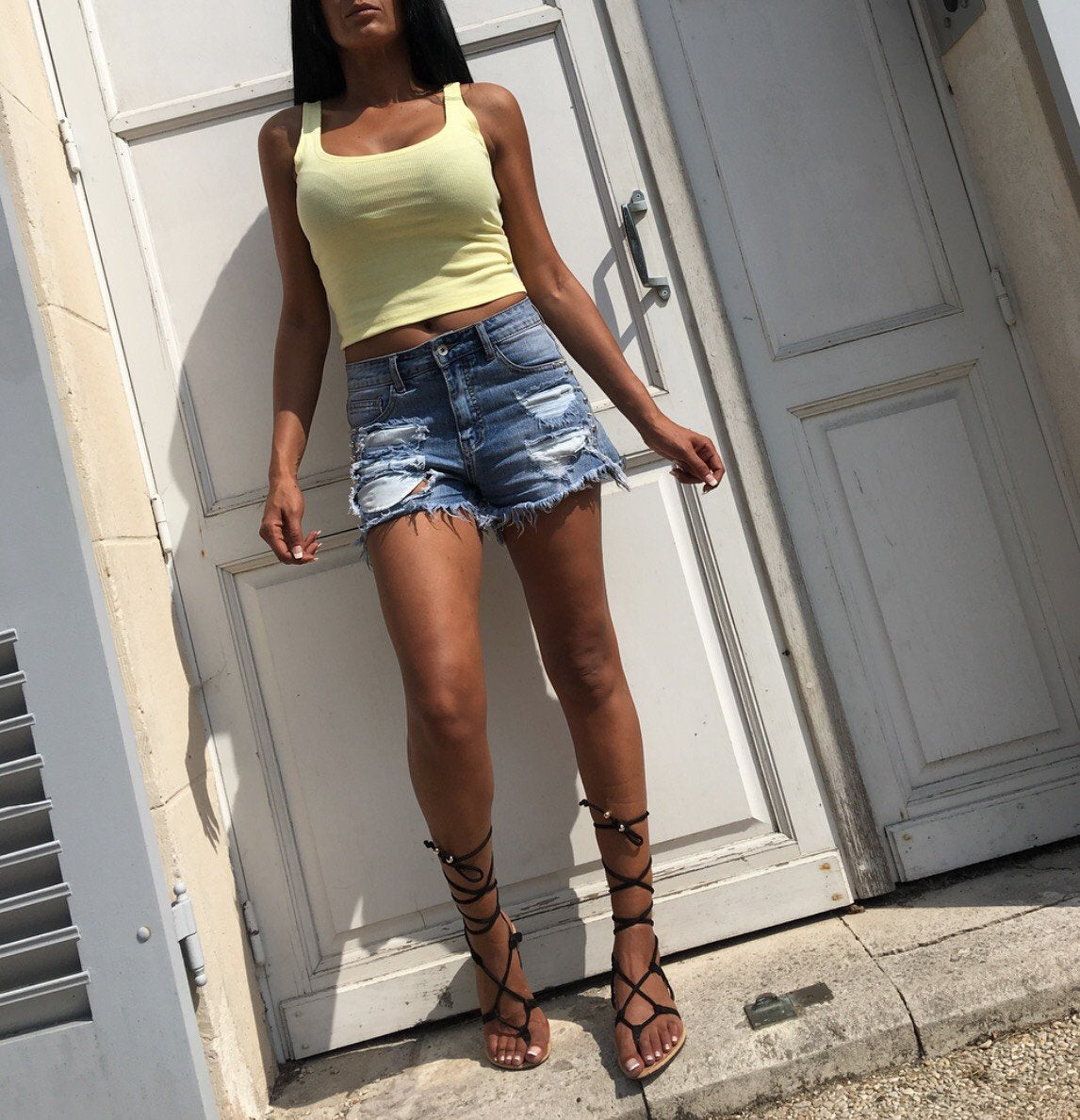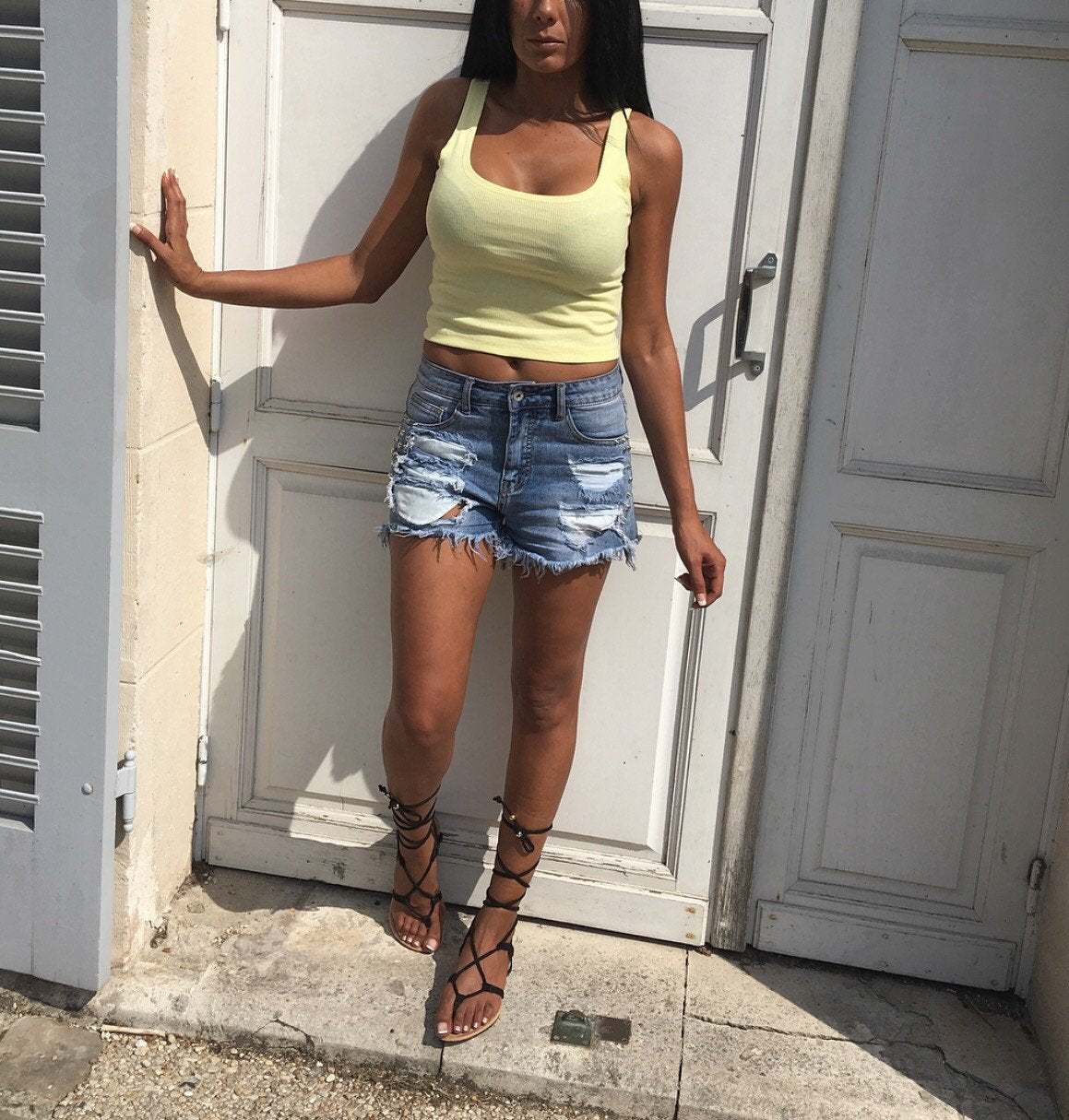 CROP TOP TAYI Jaune Crop Top simple qui s'adapte à toutes vos envies !!! Avec un Jean, Short, jupe .... 60% Polyester 35% Coton 5% Elasthanne Légèrement Strech / Taille S à L Equivalence S - 34/36 M - 38 L - 40 Notre modèle porte une Taille S Disponible également en Noir