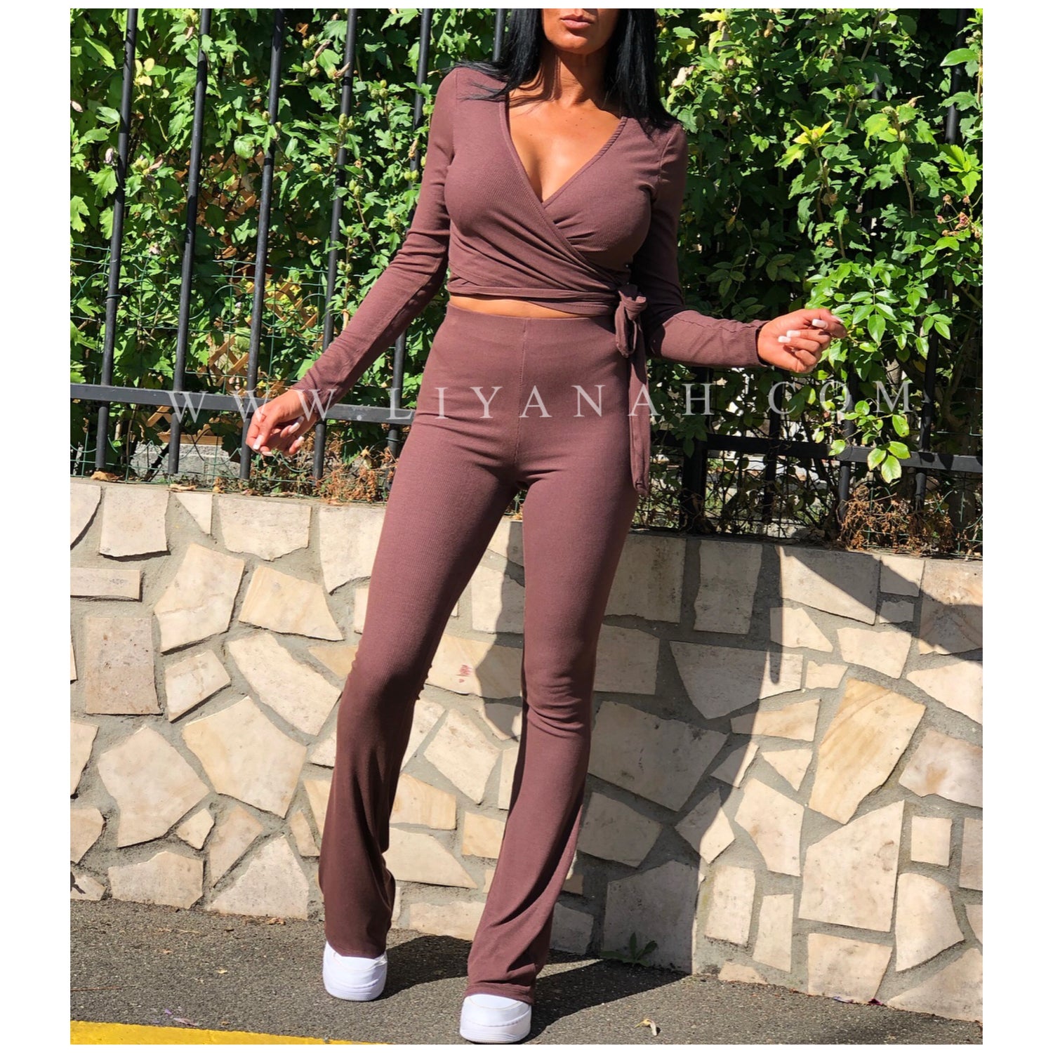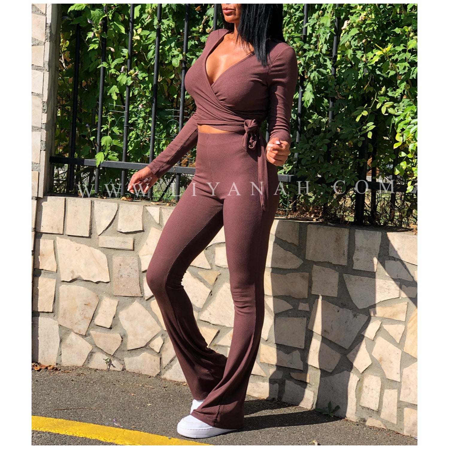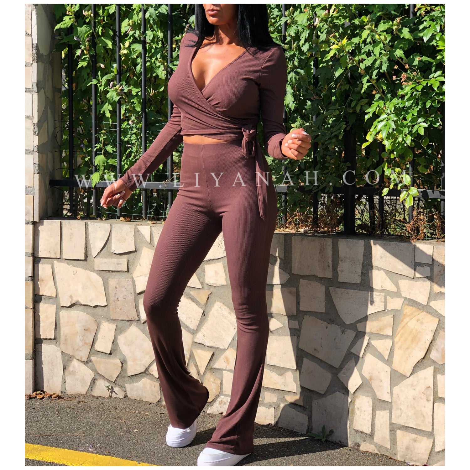 Ce modèle est vendu Ensemble avec un cache cœur à nouer et un pantalon style patte d’éléphant taille Mi-haute - 95% Viscose 5% Elasthanne - Taille Unique du 34 au 38