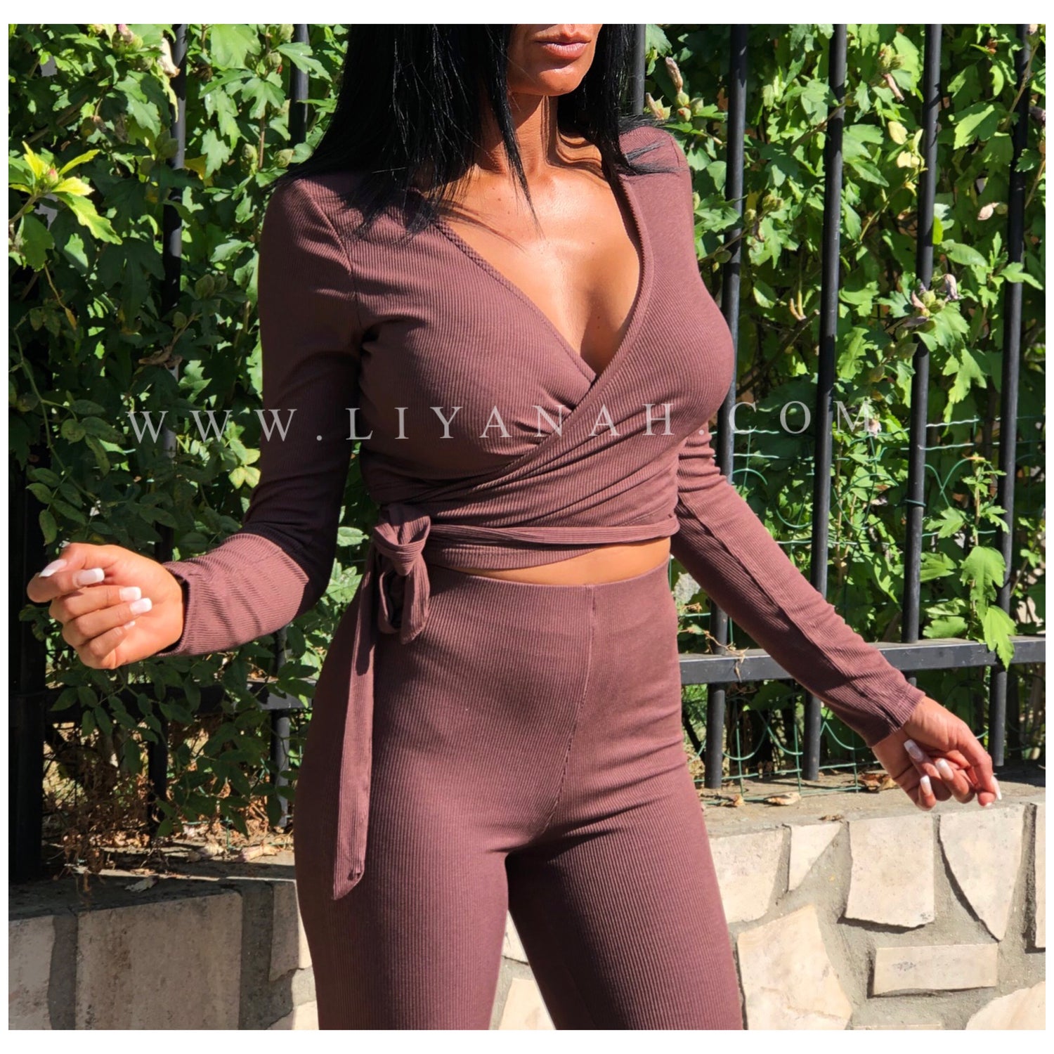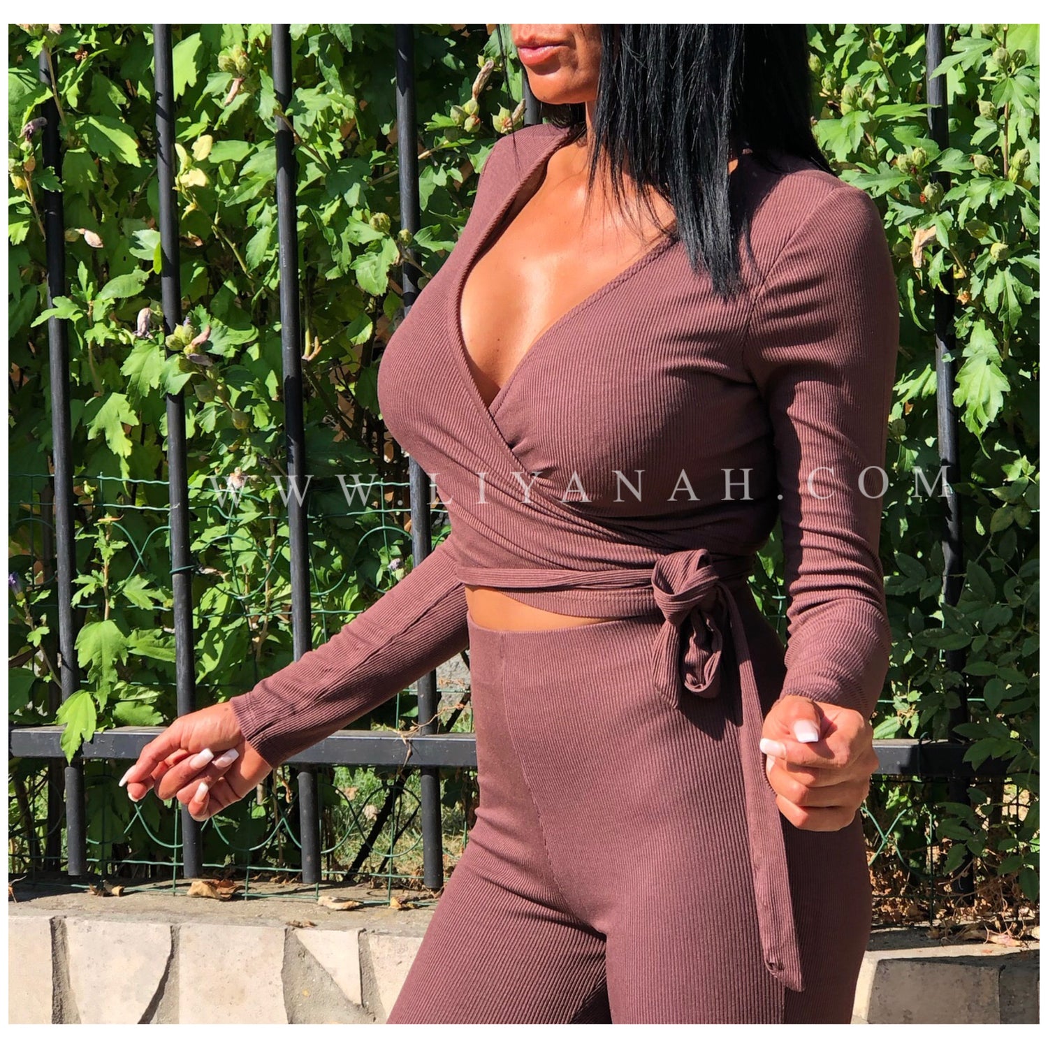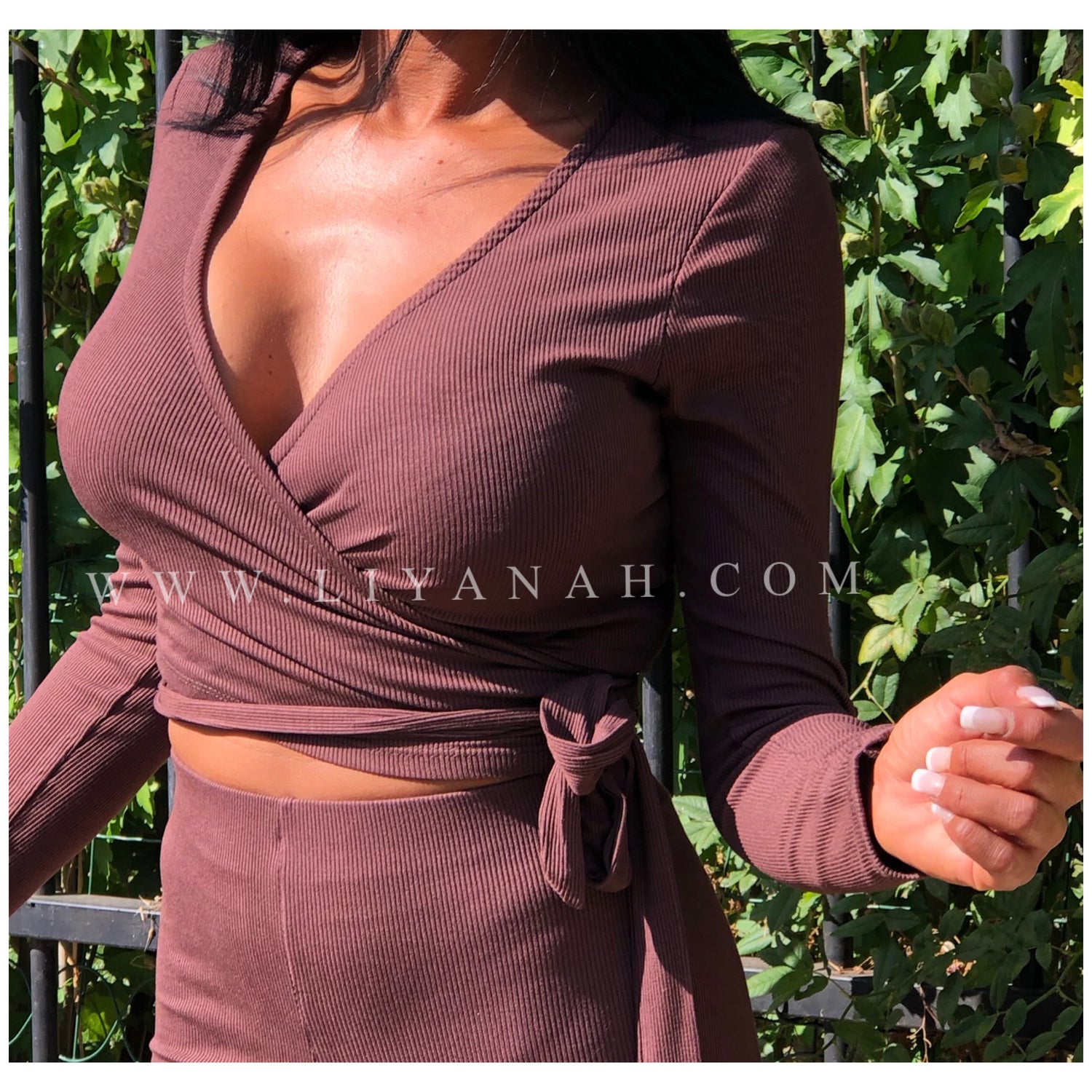 Ce modèle est vendu Ensemble avec un cache cœur à nouer et un pantalon style patte d’éléphant taille Mi-haute - 95% Viscose 5% Elasthanne - Taille Unique du 34 au 38