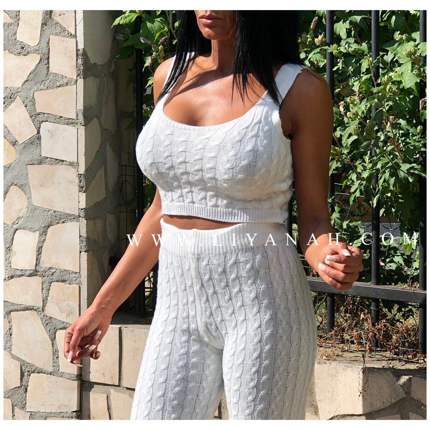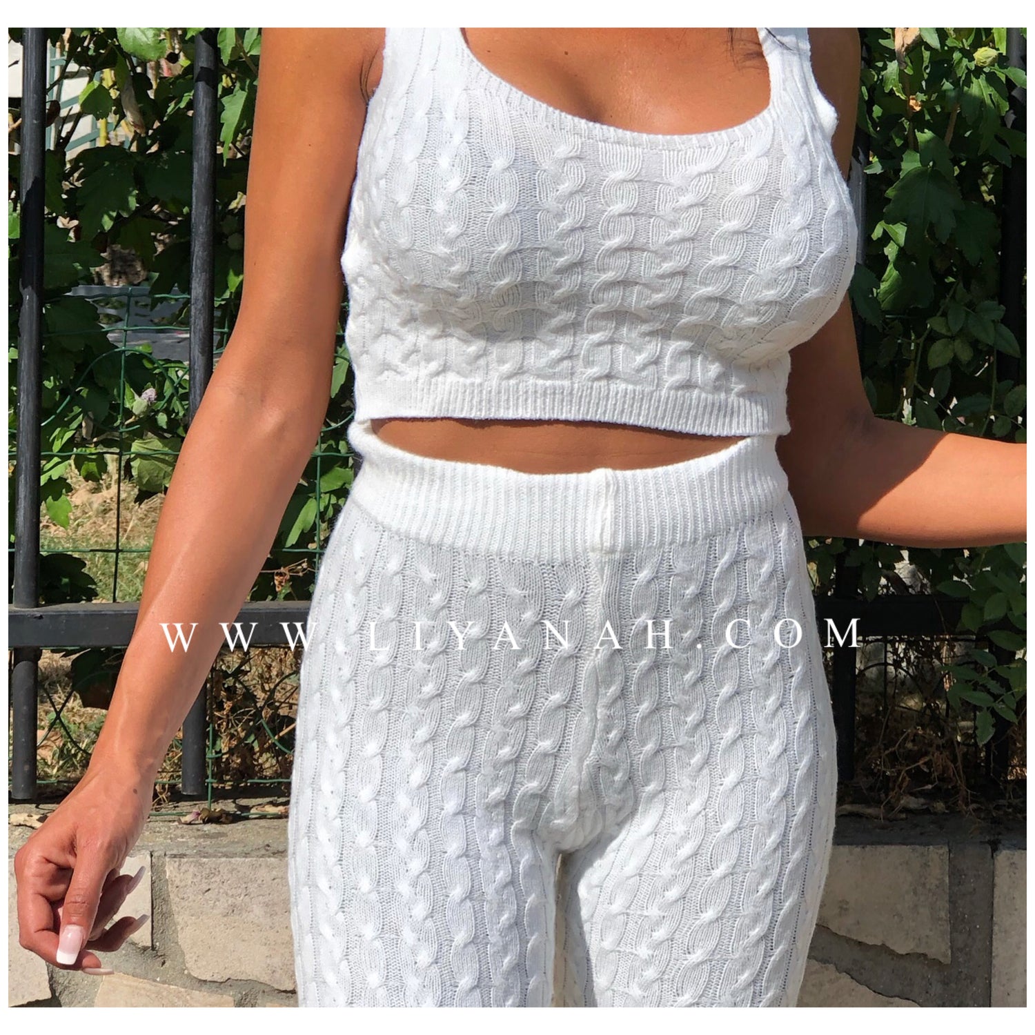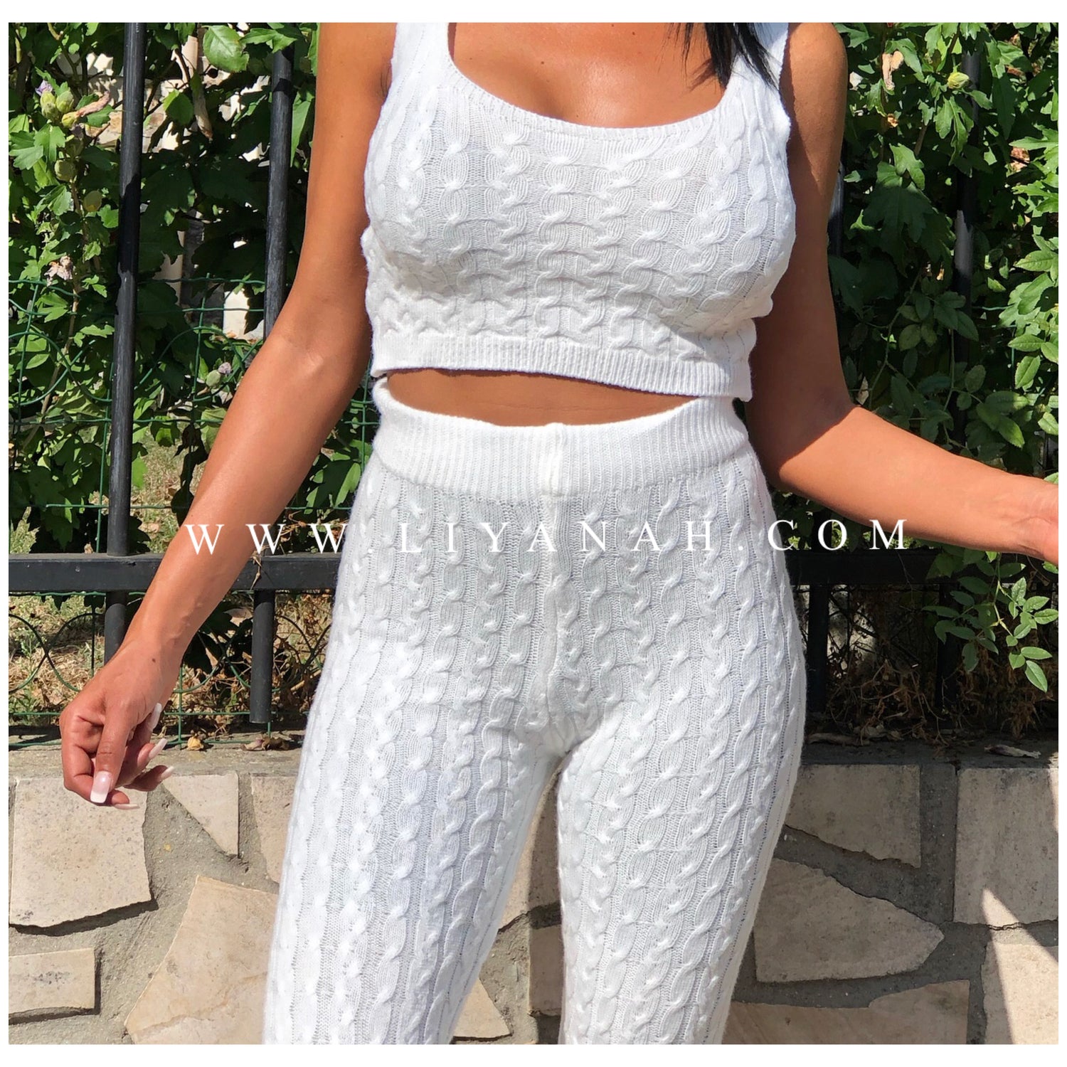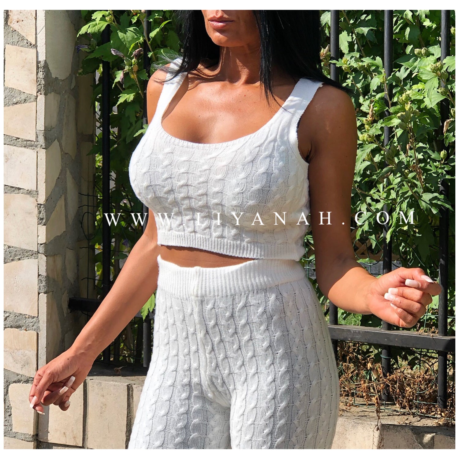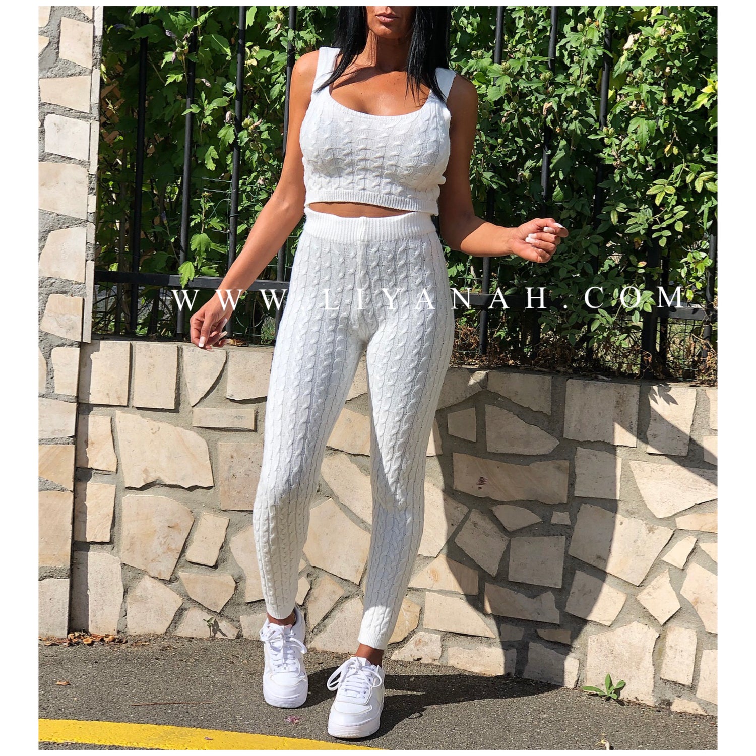 Ensemble Crop Top + Legging Modèle SVANA BLANC