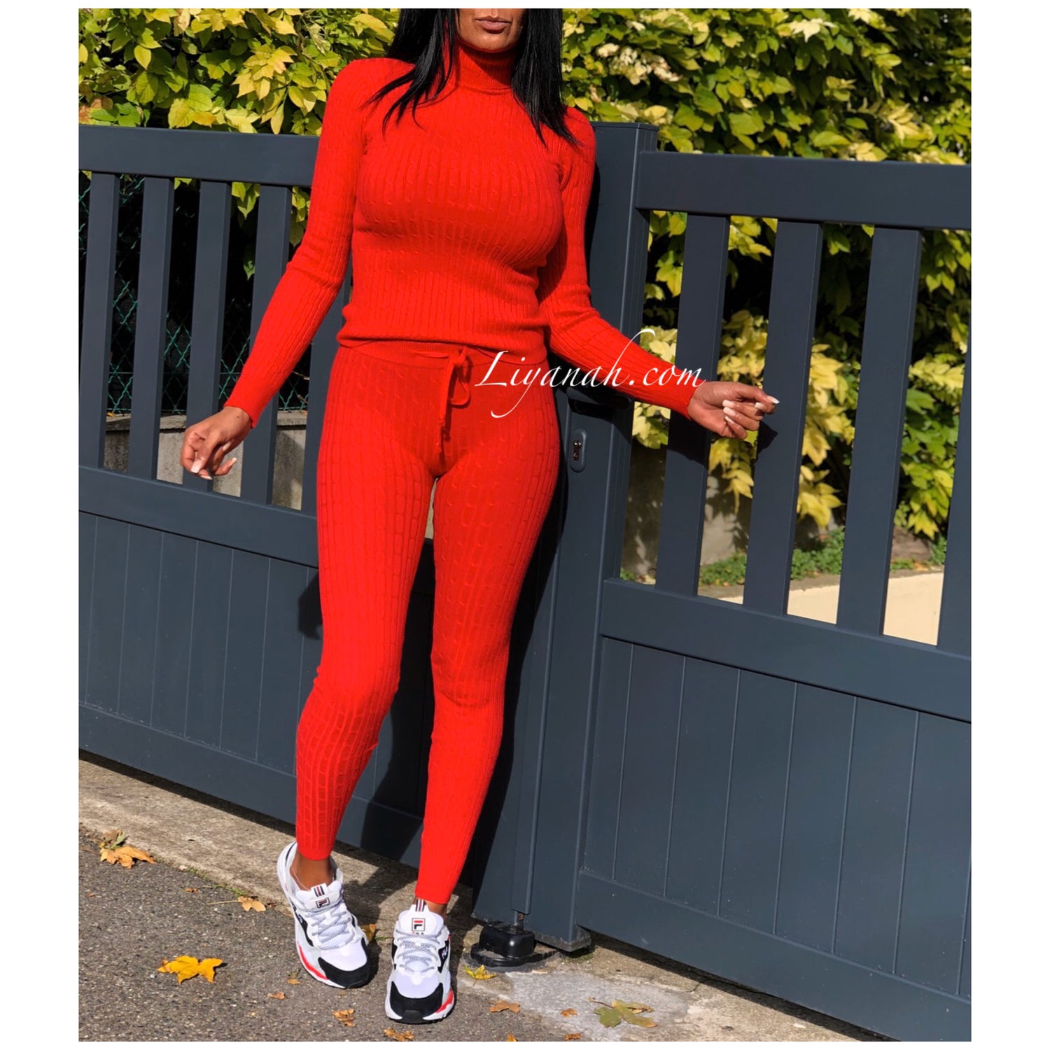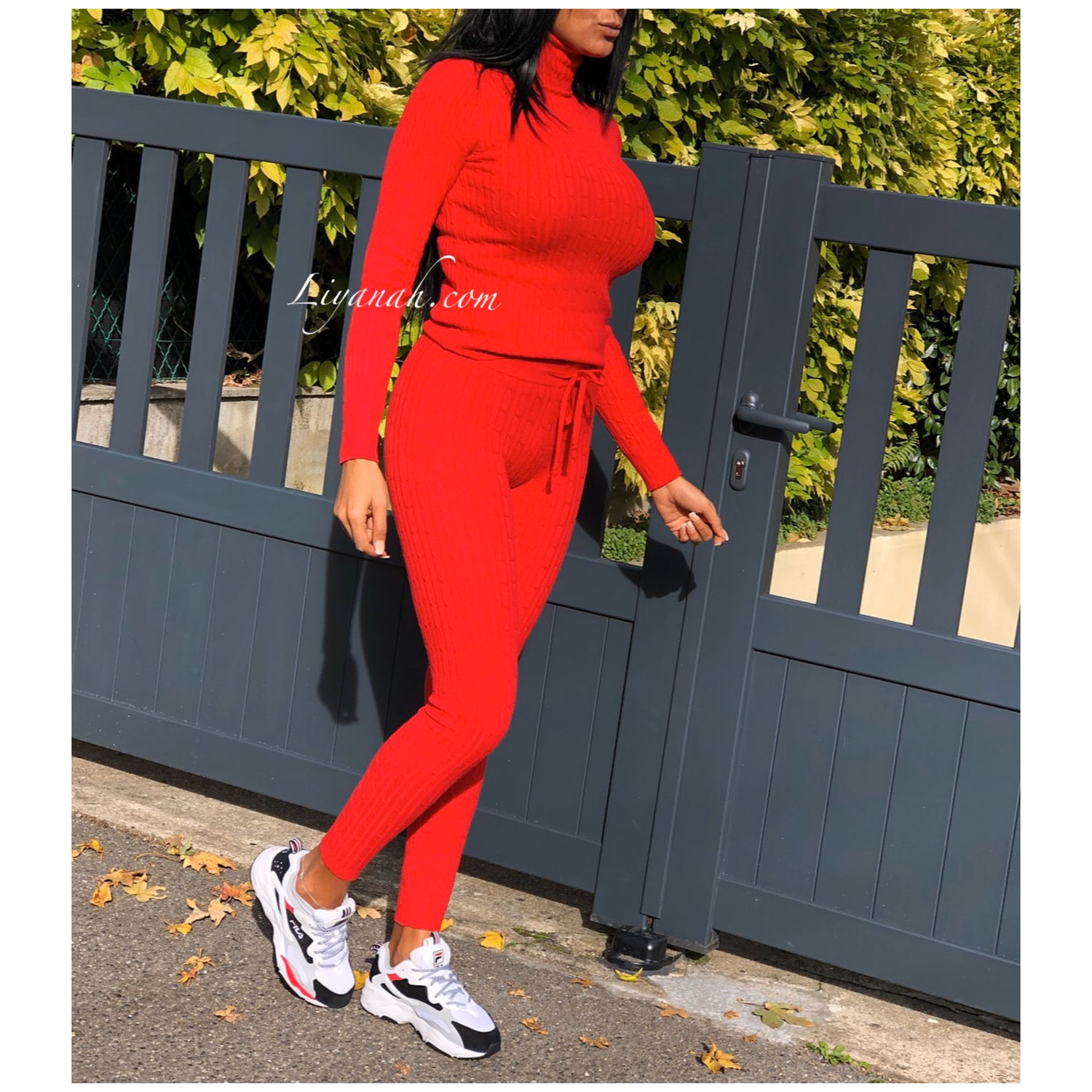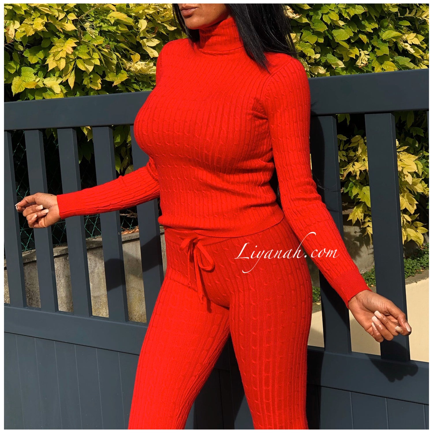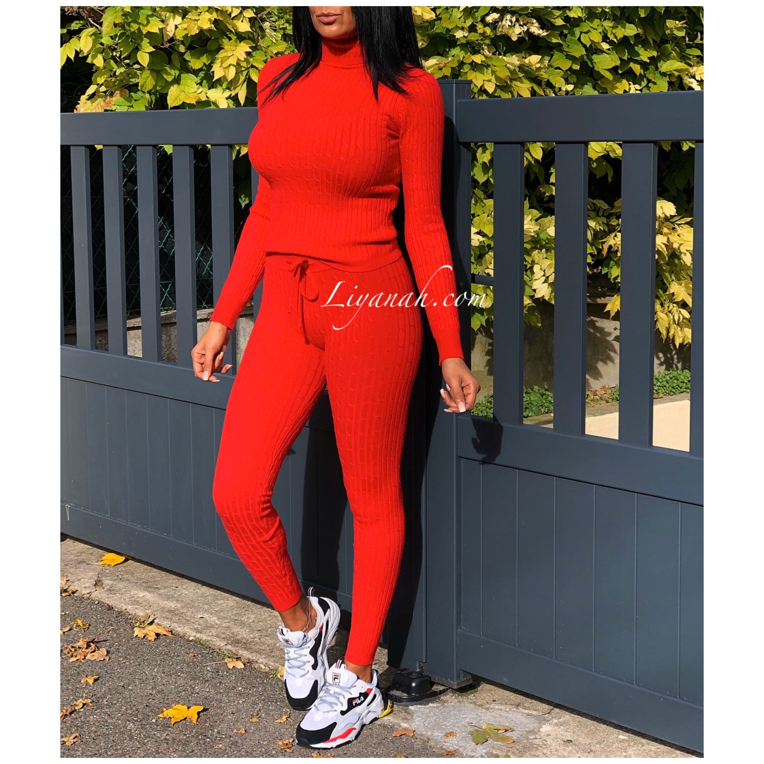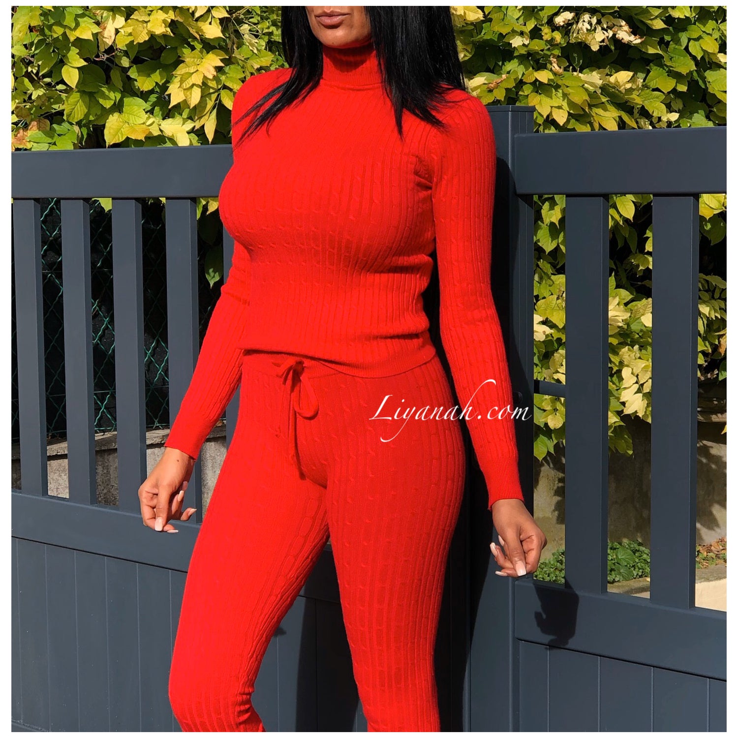 Ensemble Pull Col Roulé / Pantalon Modèle ALCANTARA ROUGE