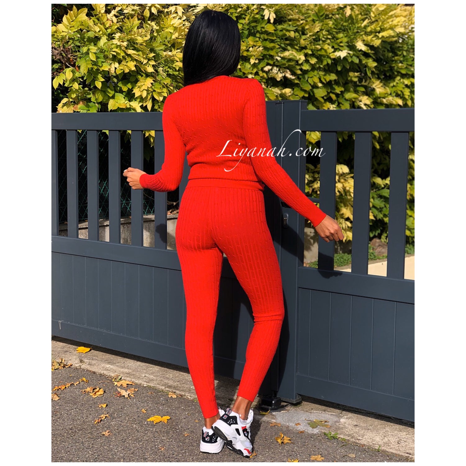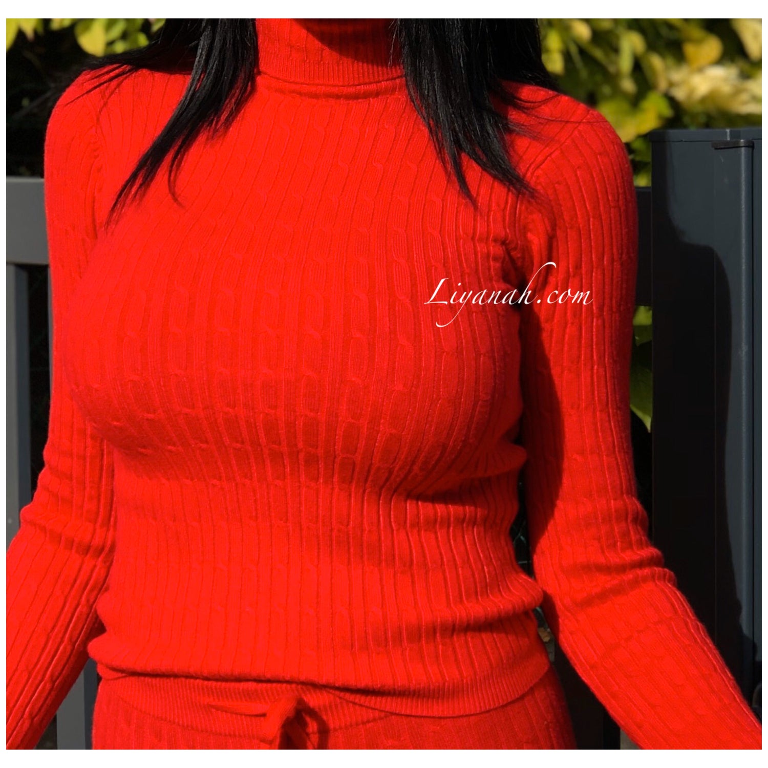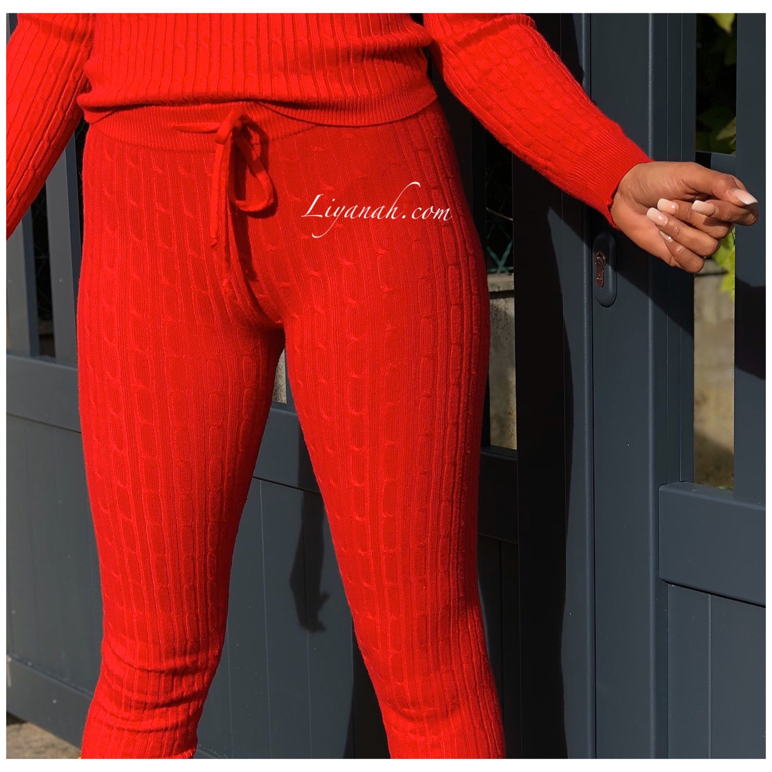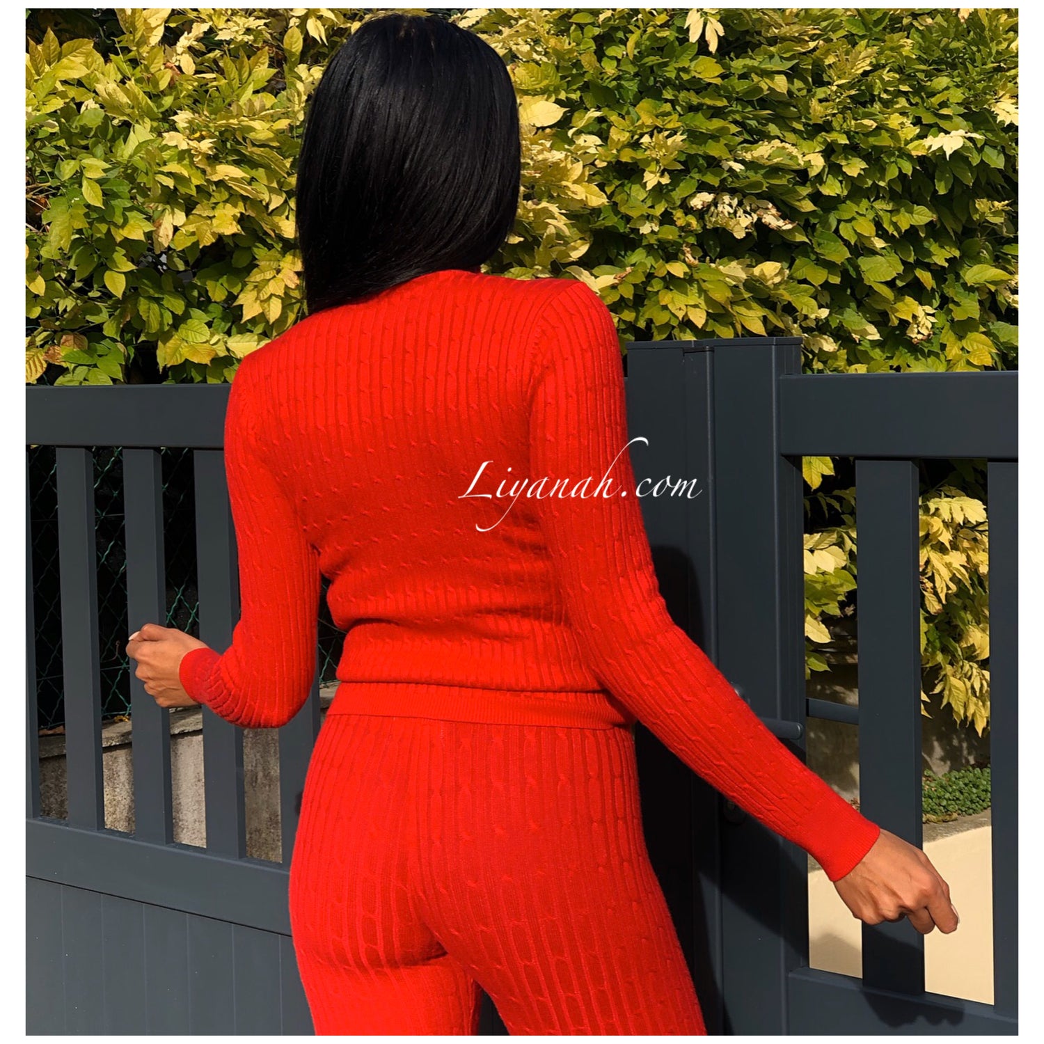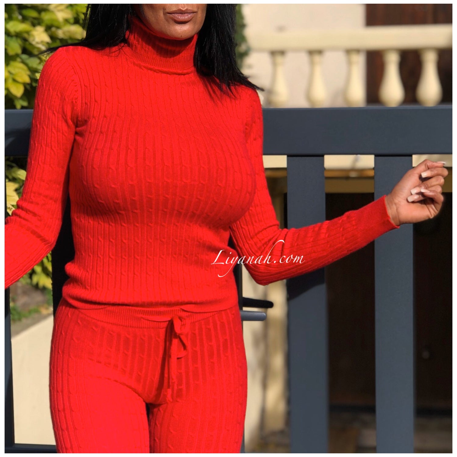 Ensemble Pull Col Roulé / Pantalon Modèle ALCANTARA ROUGE