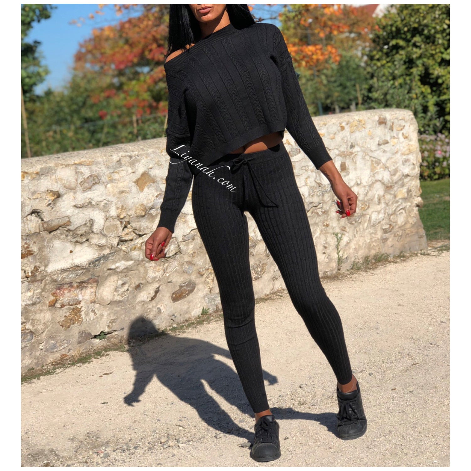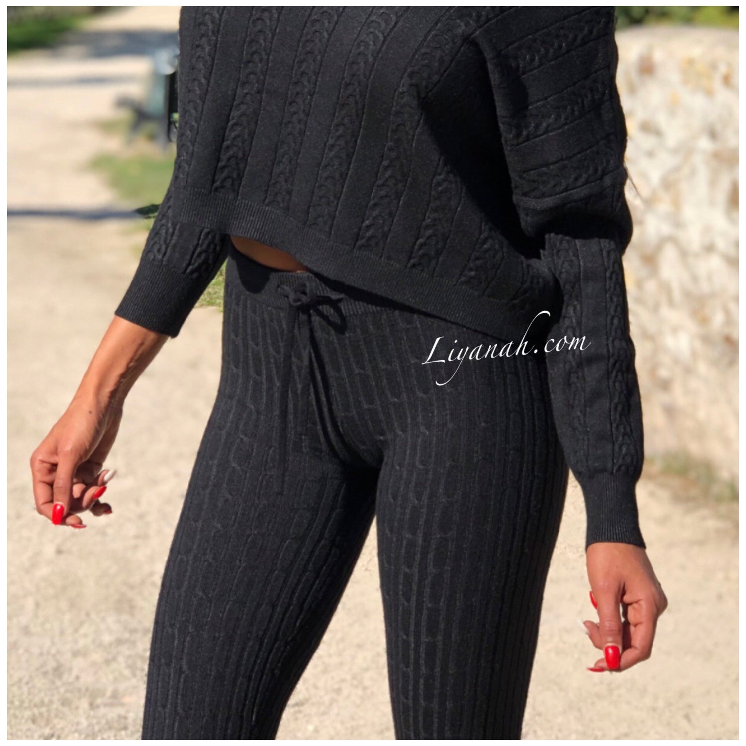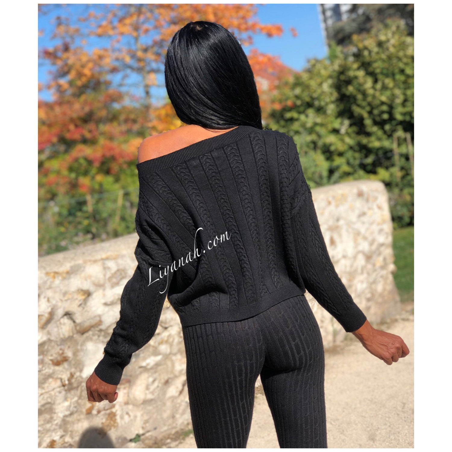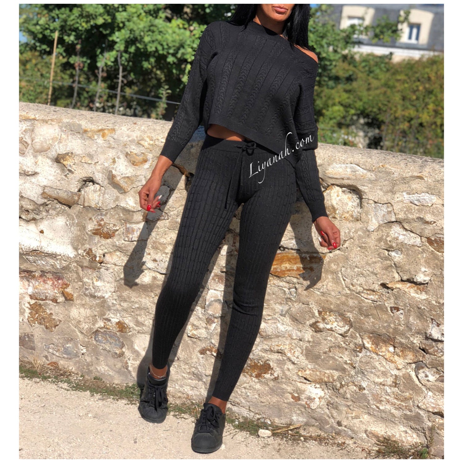 Ensemble Pull / Pantalon Modèle ALCANTARA NOIR - Ensemble avec Pull Col rond légèrement tombant, manches longues - Pantalon coupe très près du corps avec laçage !!! Matière agréable à porter - matière côtelée - 50% Viscose 28% Pbt 22% Nylon (Taille 32/34 ou 36/38) Pour un style décontractée 🌸 Disponible en Noir ou Écru