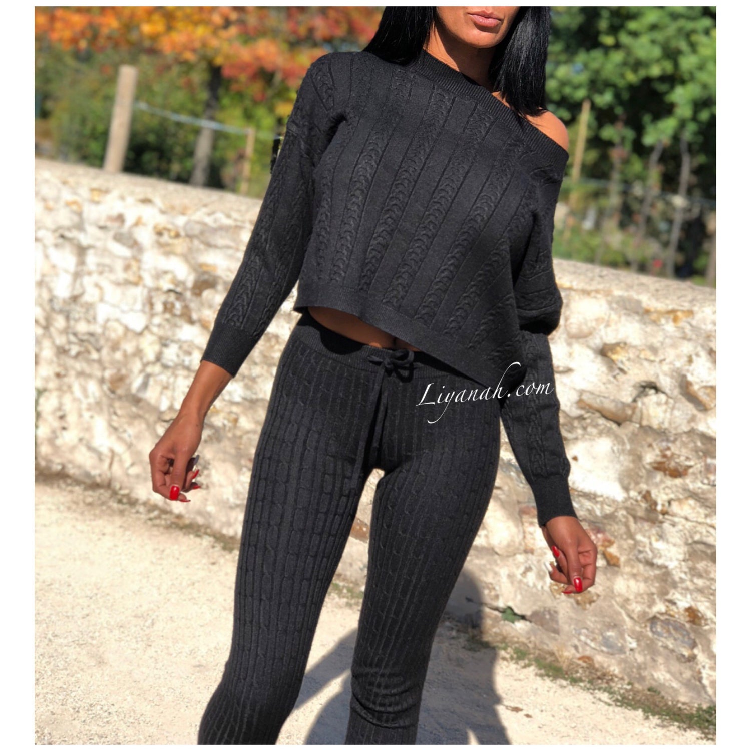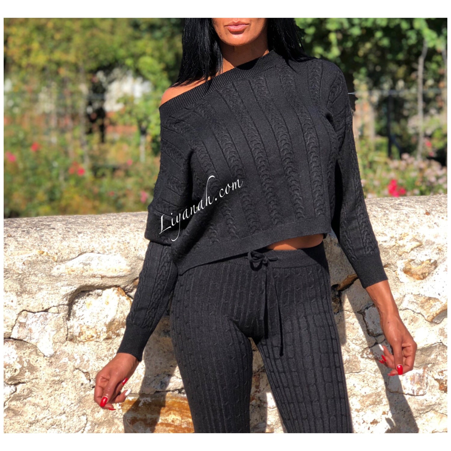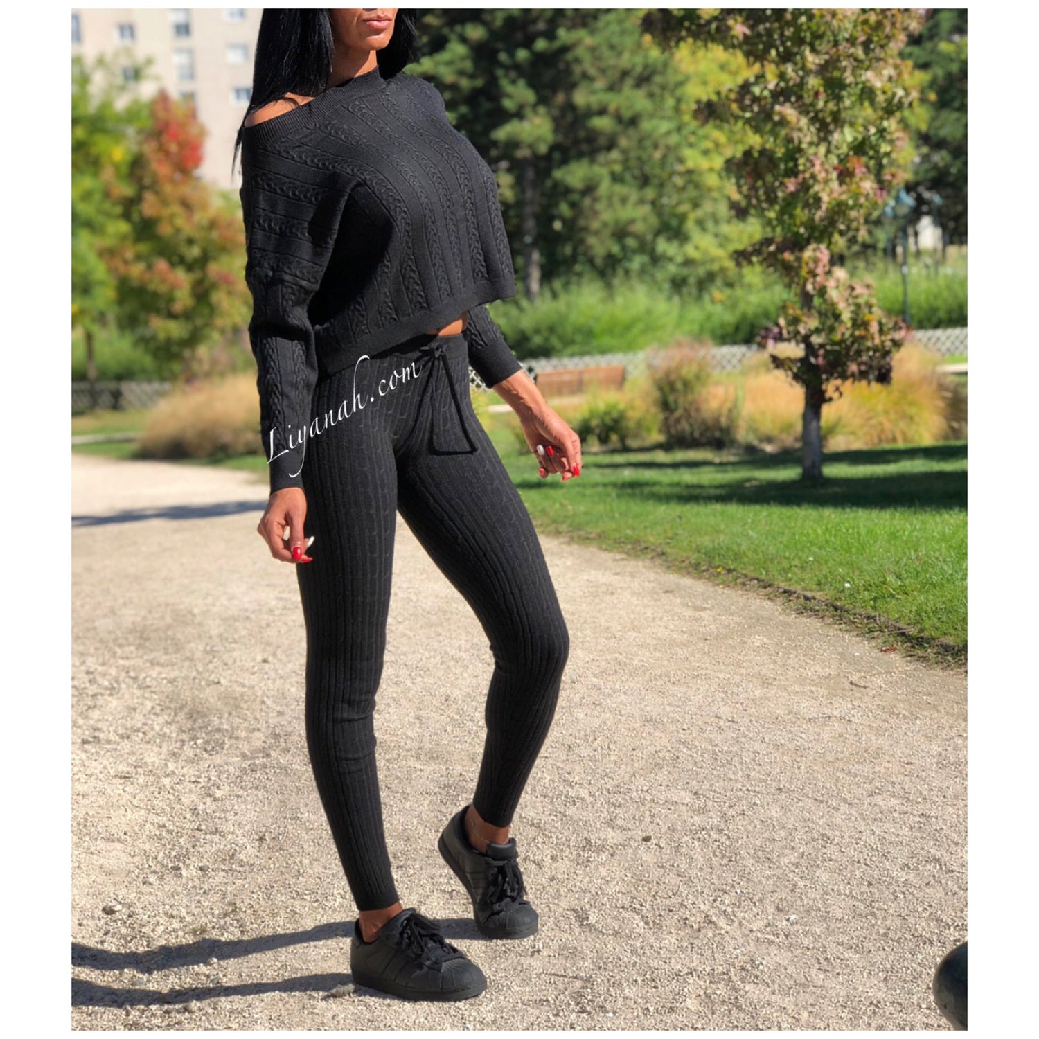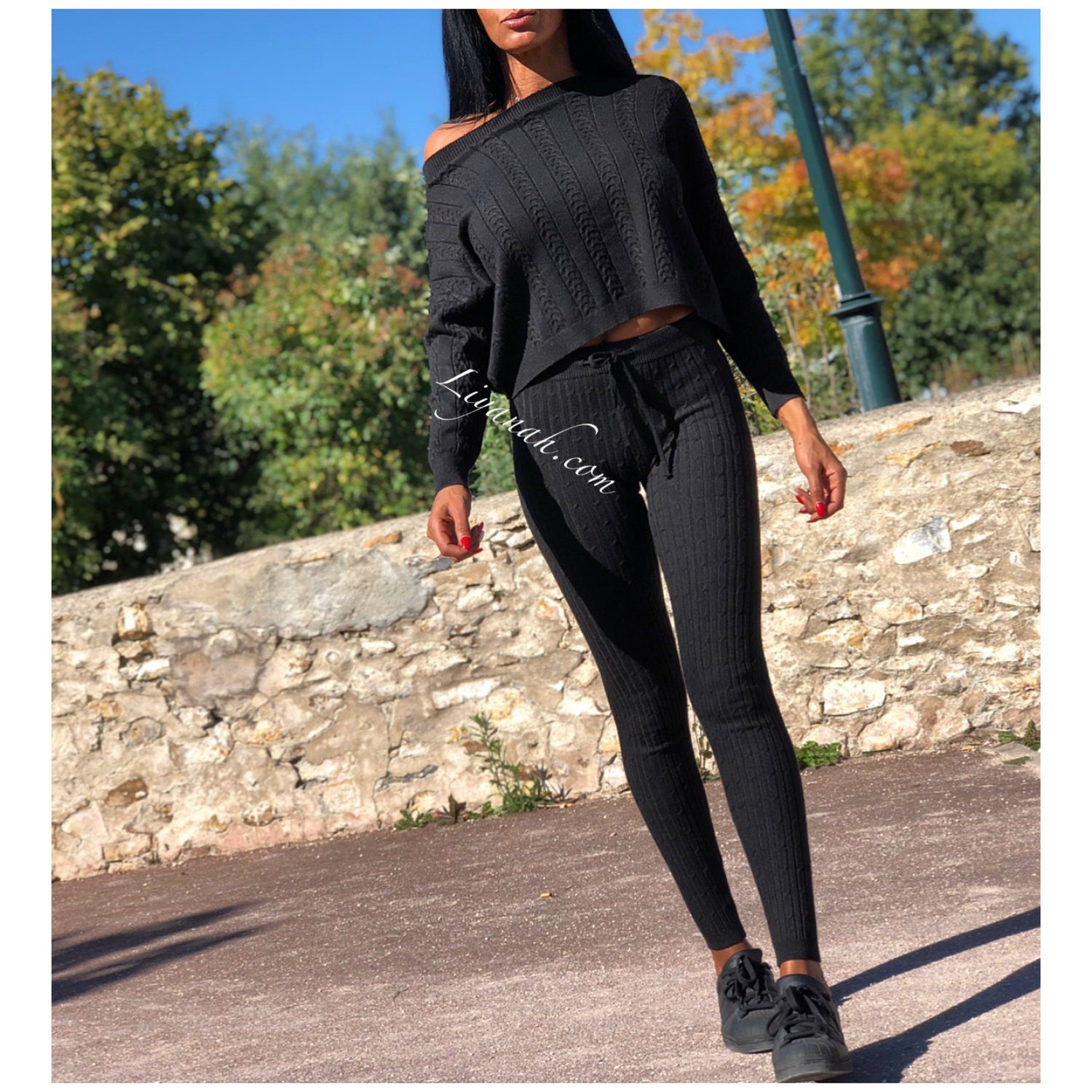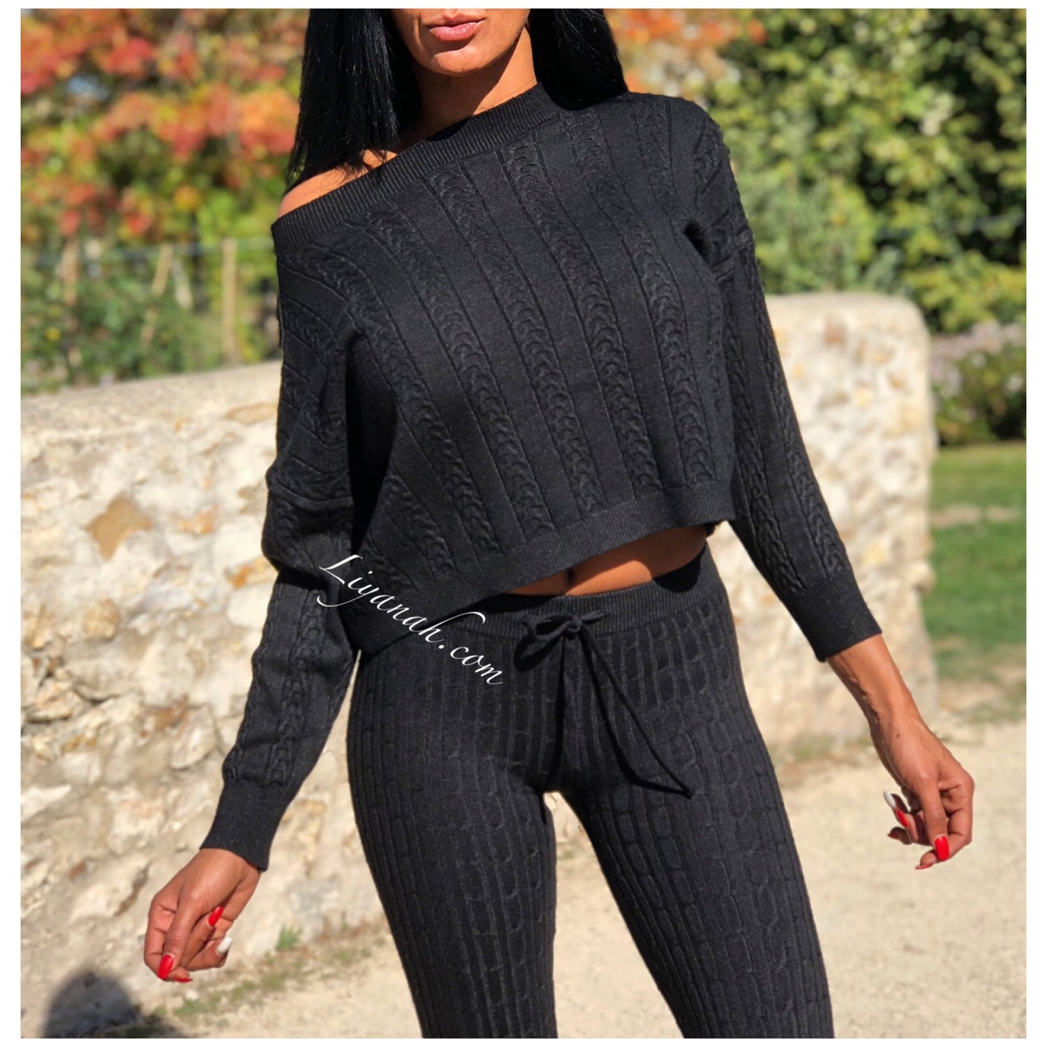 Ensemble Pull / Pantalon Modèle ALCANTARA NOIR - Ensemble avec Pull Col rond légèrement tombant, manches longues - Pantalon coupe très près du corps avec laçage !!! Matière agréable à porter - matière côtelée - 50% Viscose 28% Pbt 22% Nylon (Taille 32/34 ou 36/38) Pour un style décontractée 🌸 Disponible en Noir ou Écru