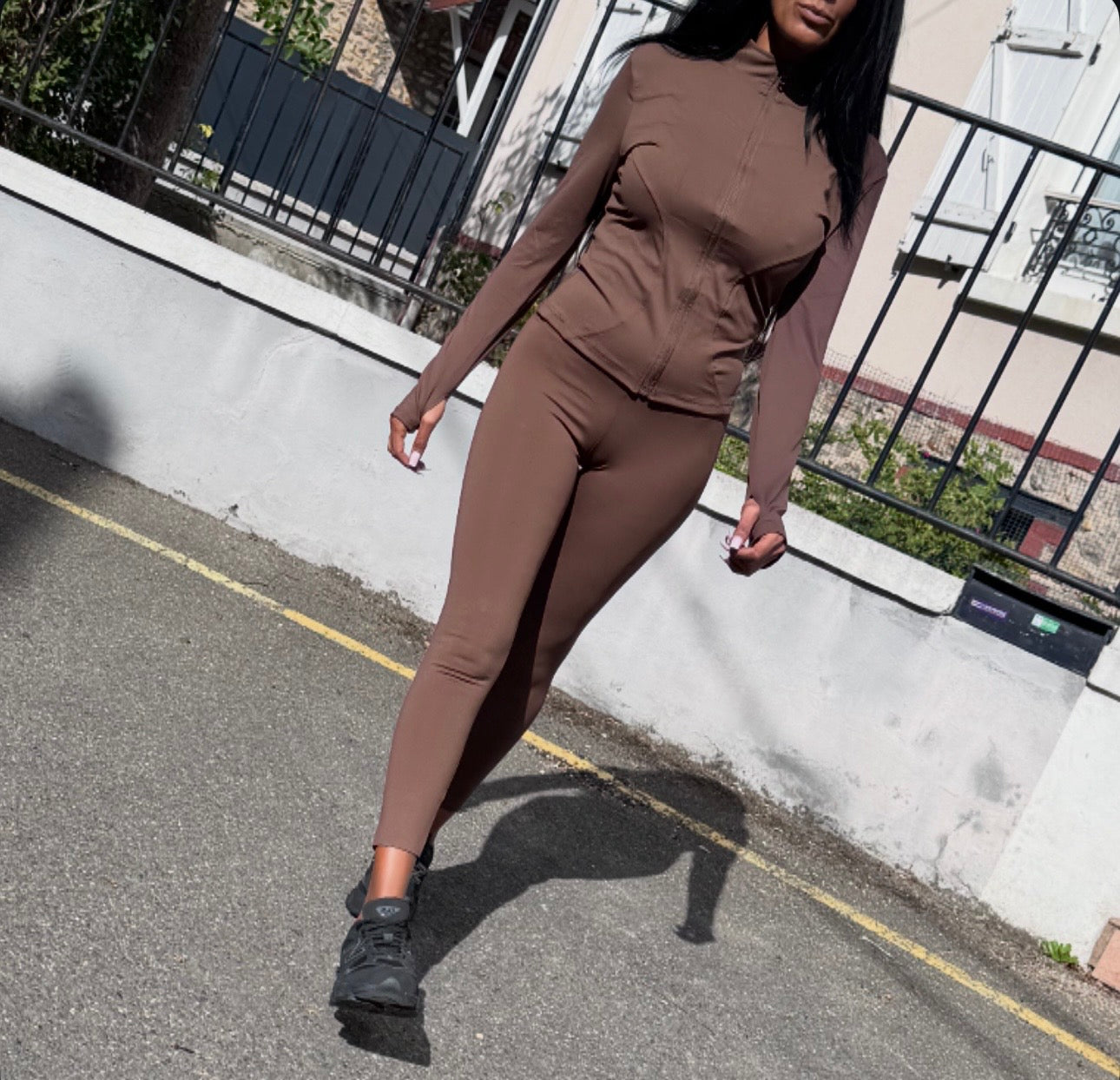 Ensemble SPORT Gilet + Legging SAYA NOIR, BEIGE, VERT ou MARRON