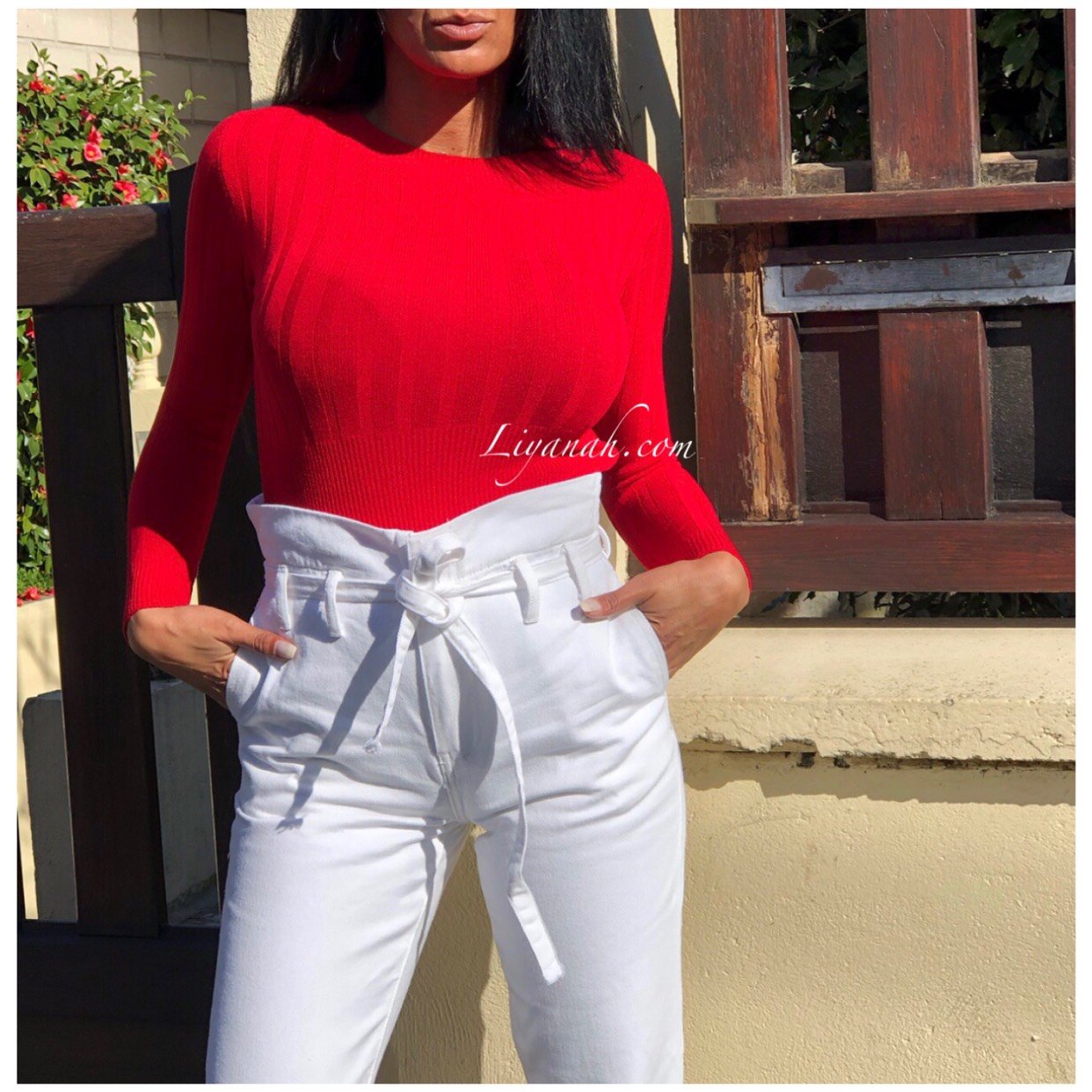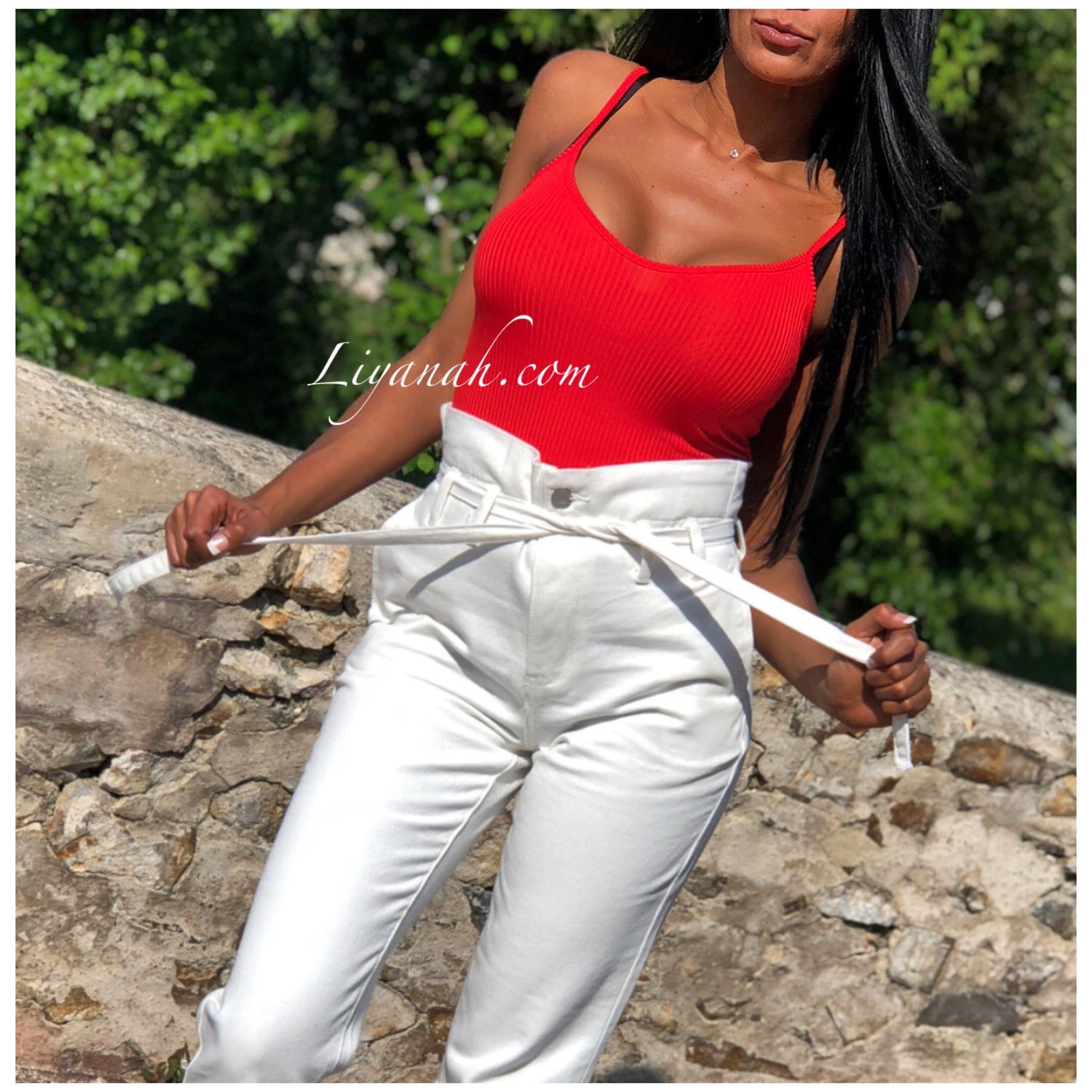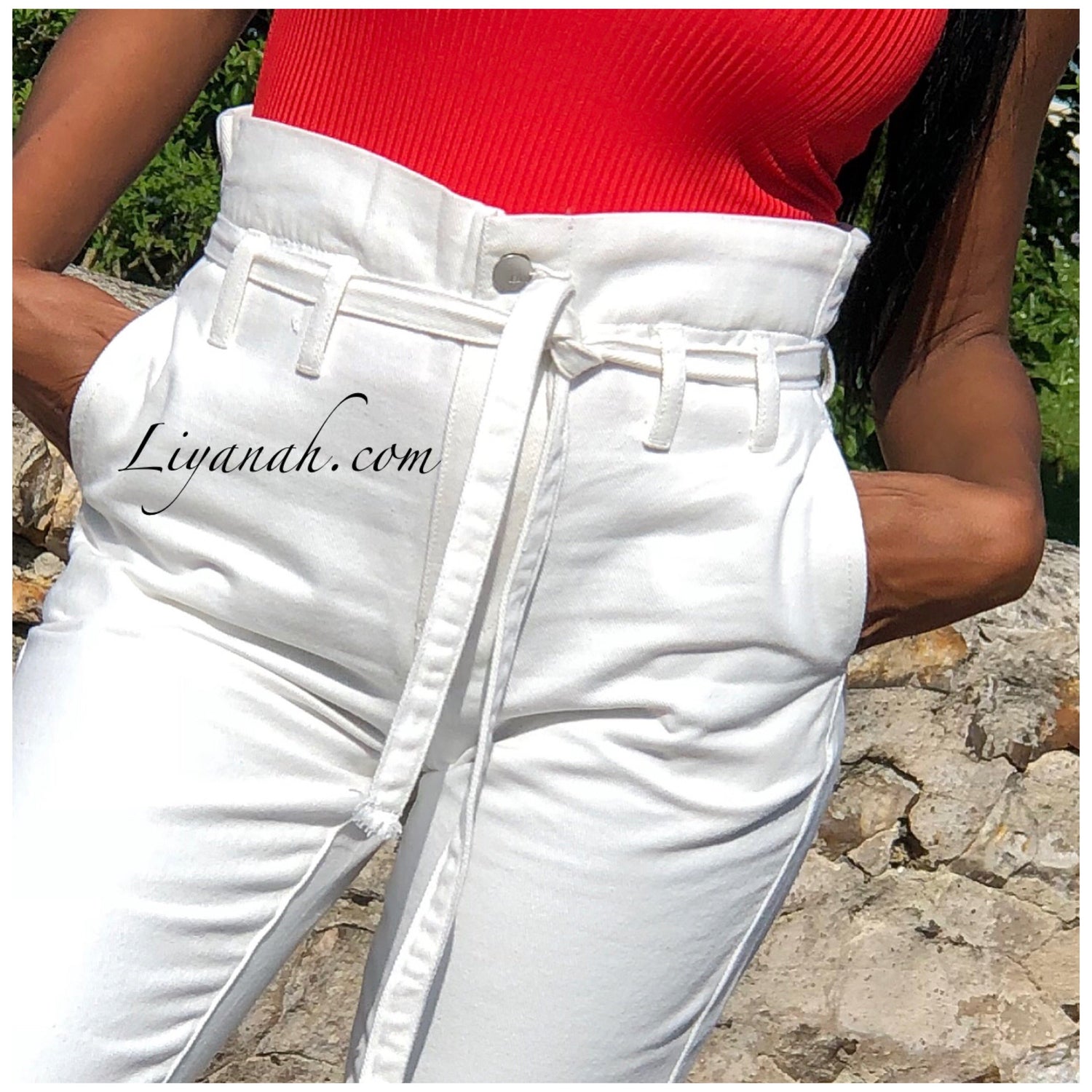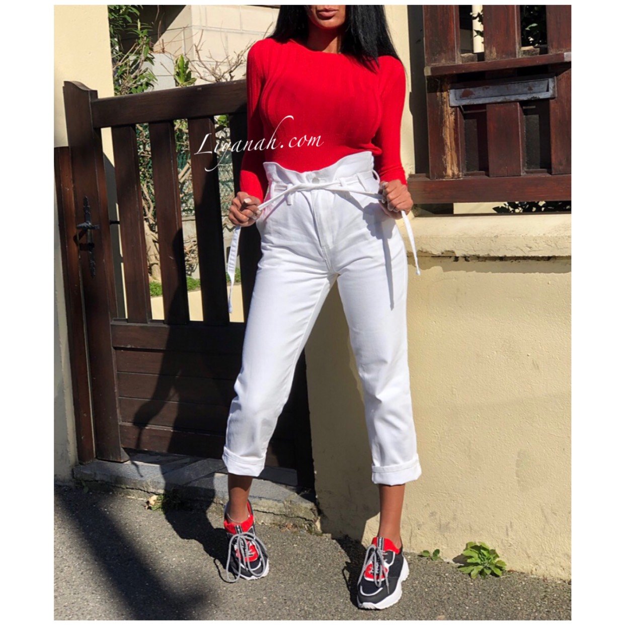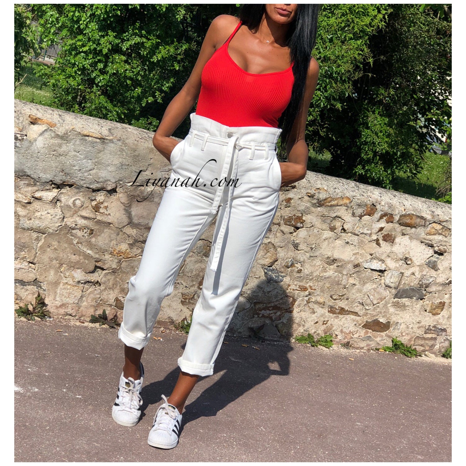 JEAN MOM WHITE Taille Haute À NOEUD Modèle DARYANA