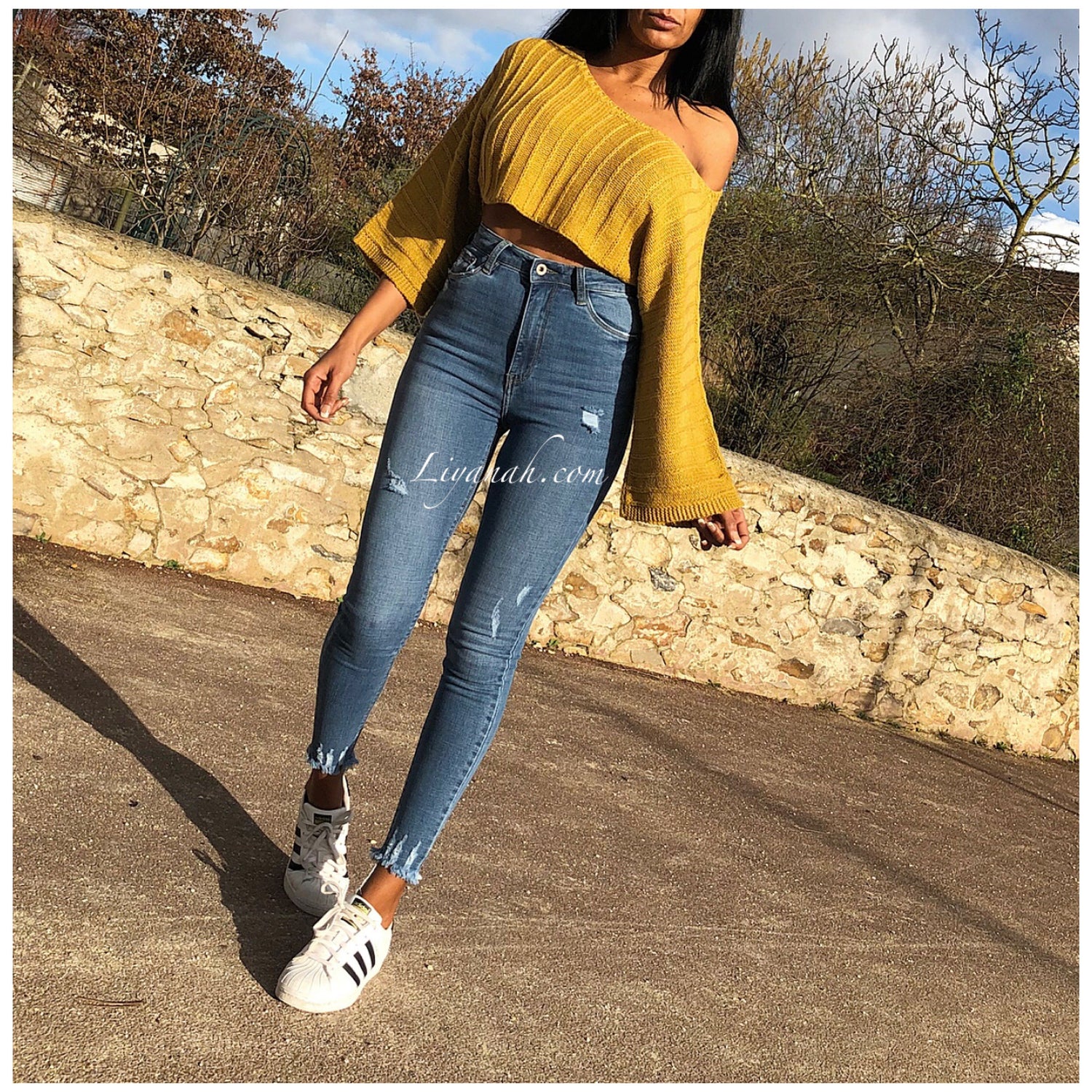 Comme son nom l'indique, le Jean Taille Haute se distingue par sa taille qui recouvre quasiment le nombril.