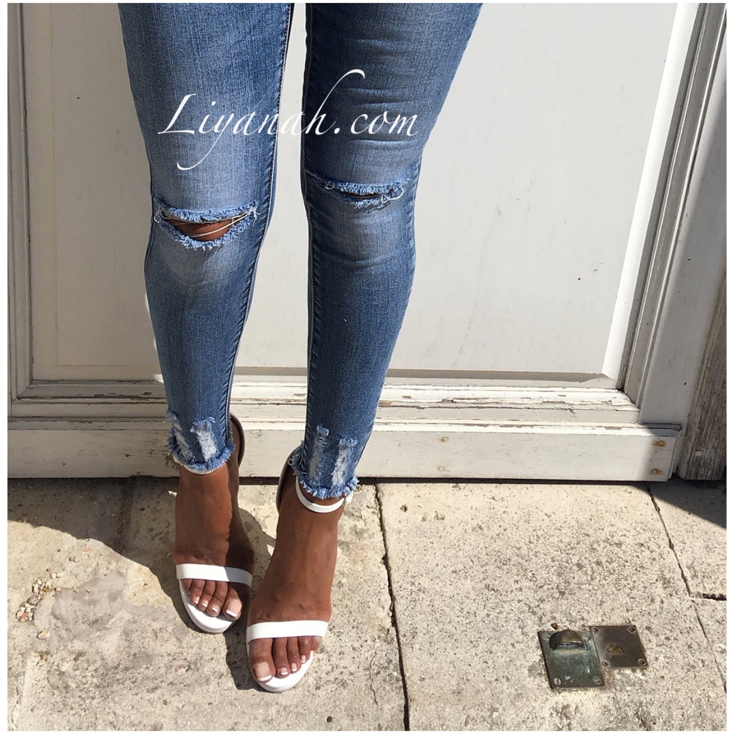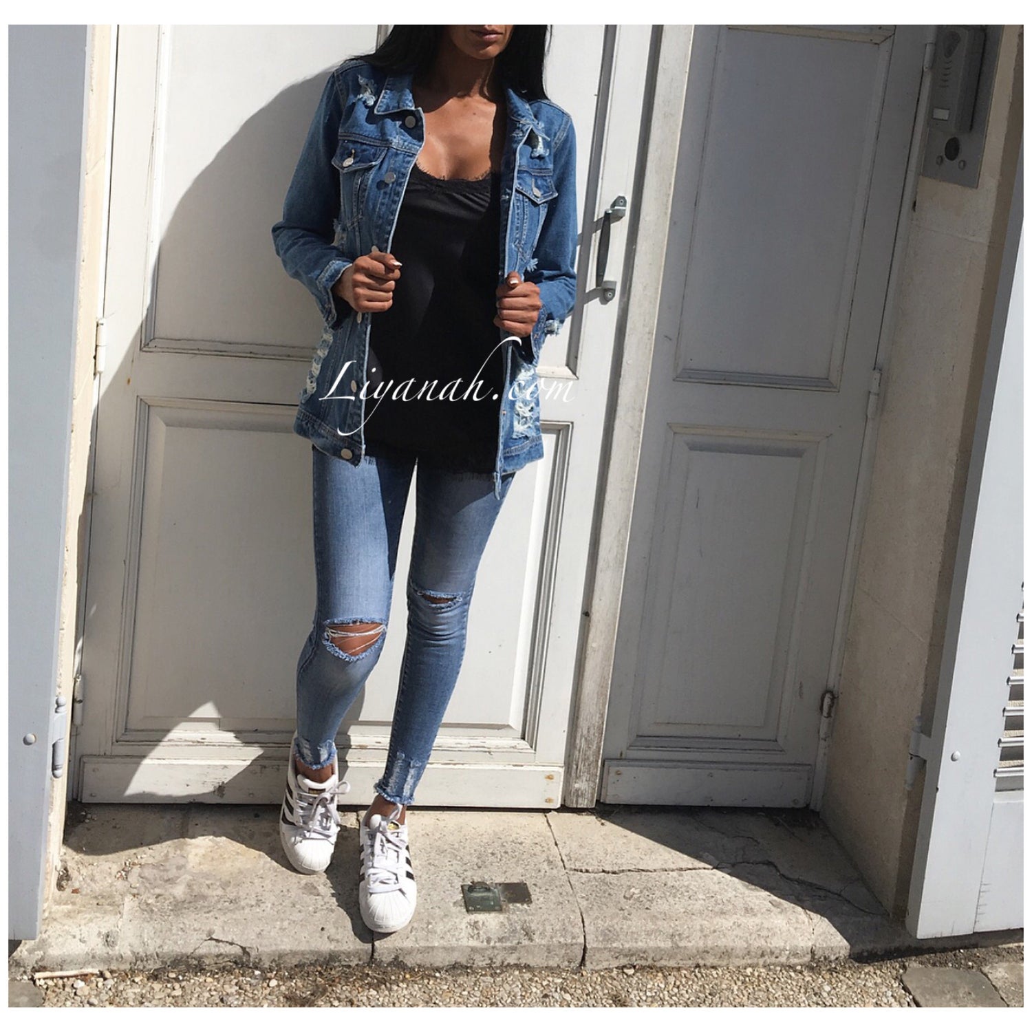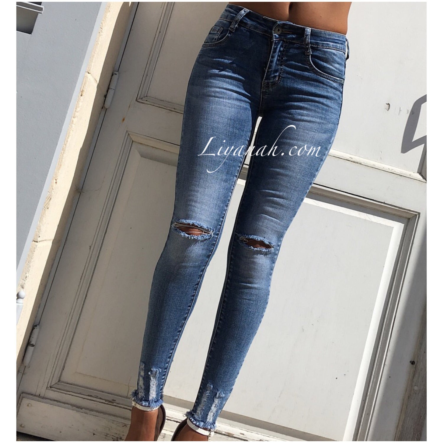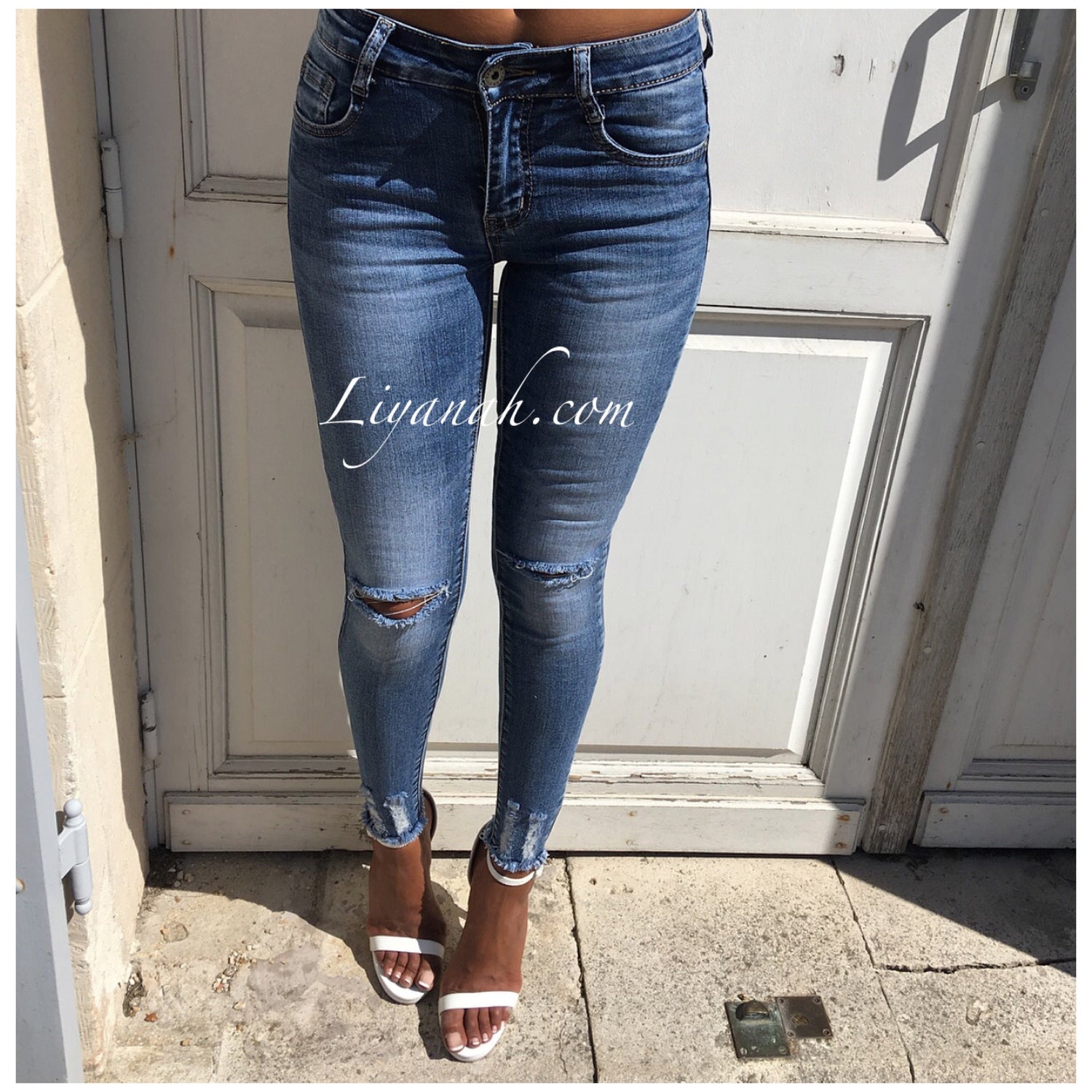 On est totalement dingue de ce jean légèrement destroy avec ses déchirures aux genoux !!!! Et aux chevilles ✖️