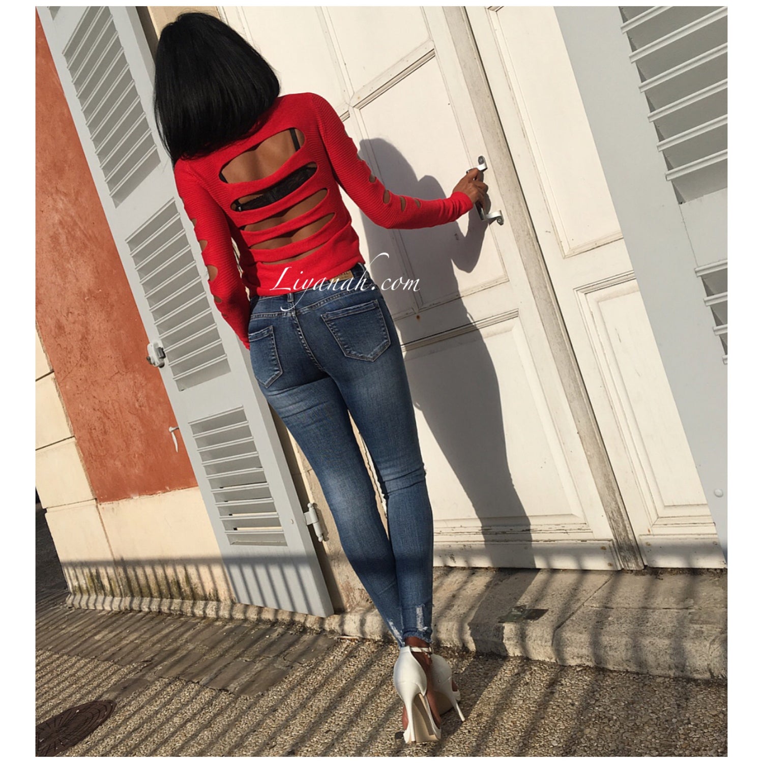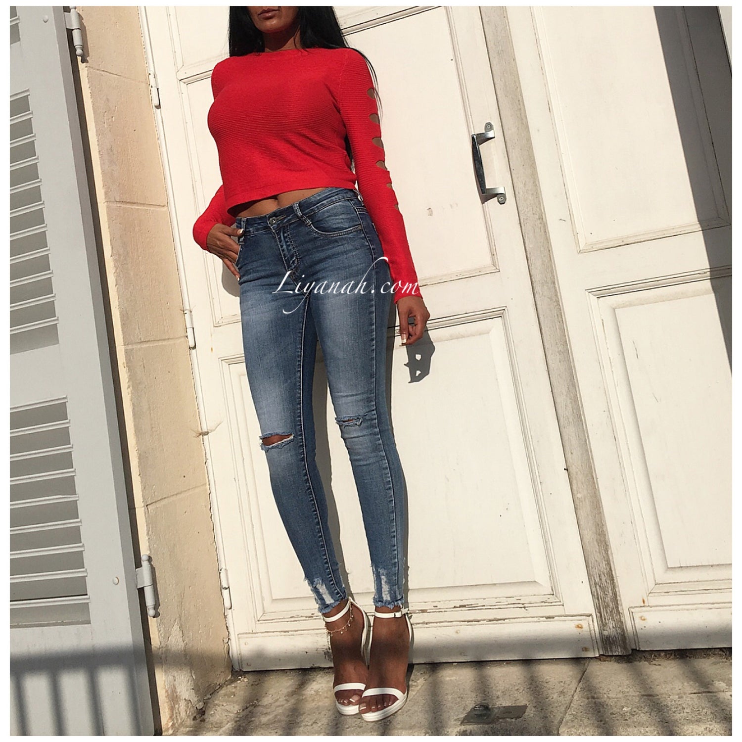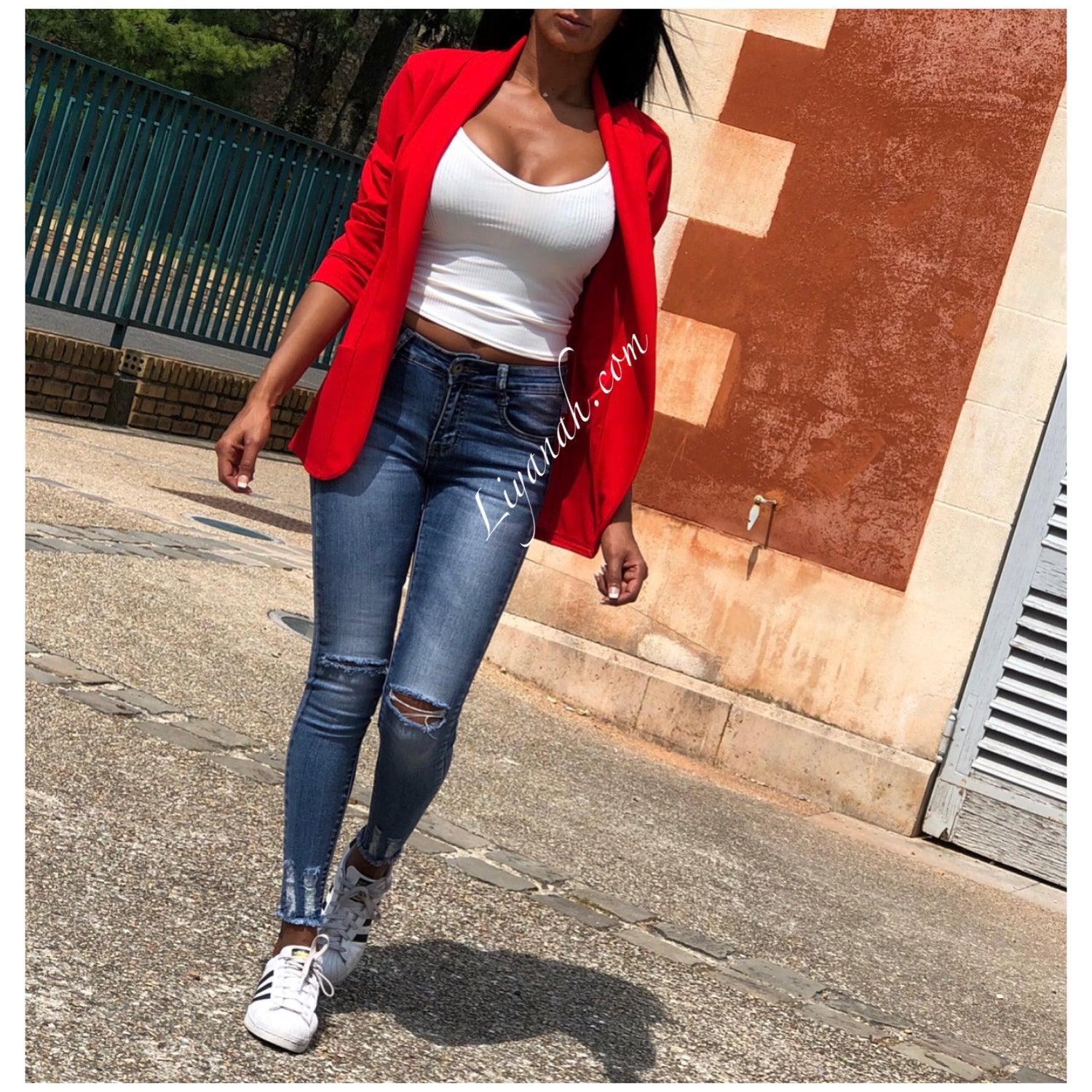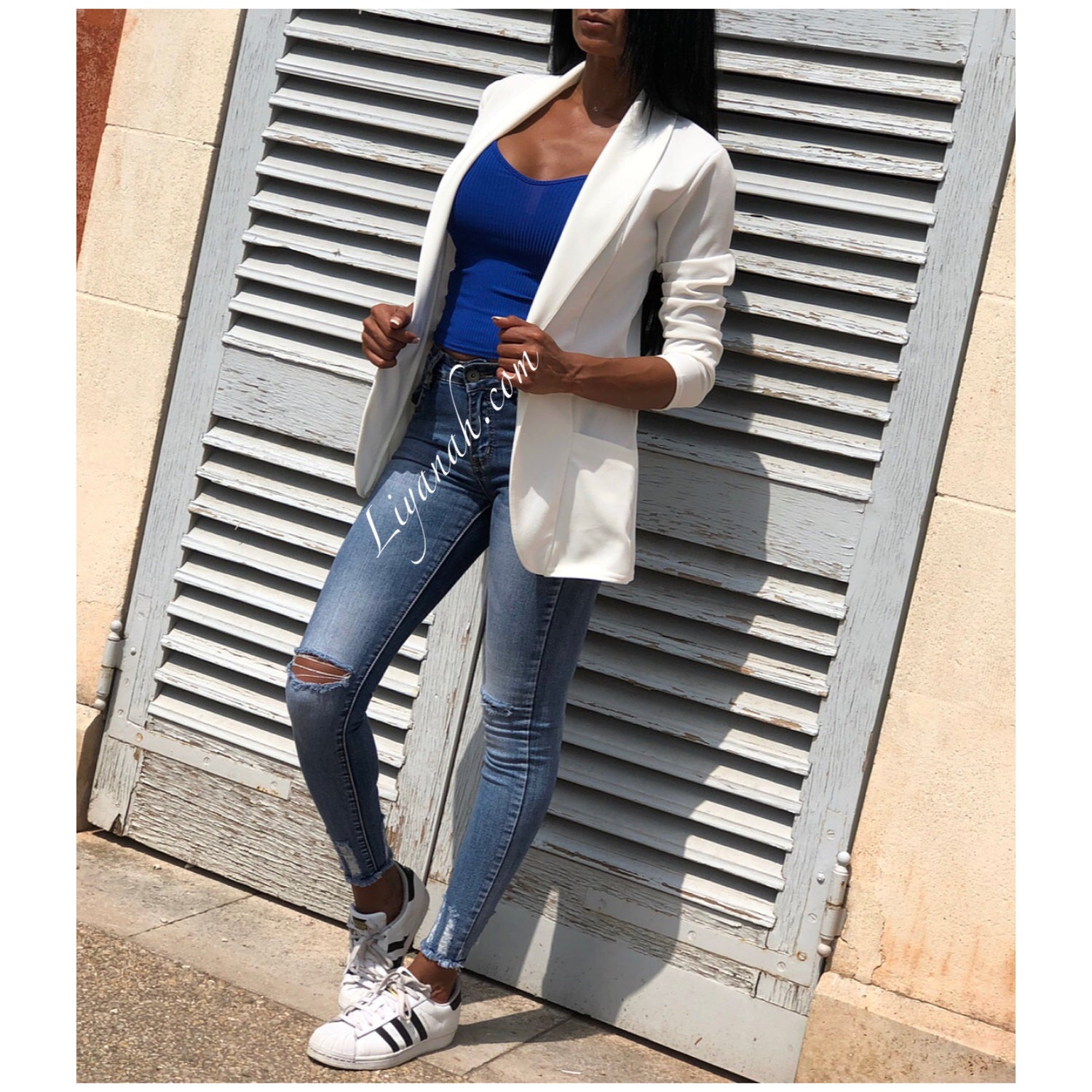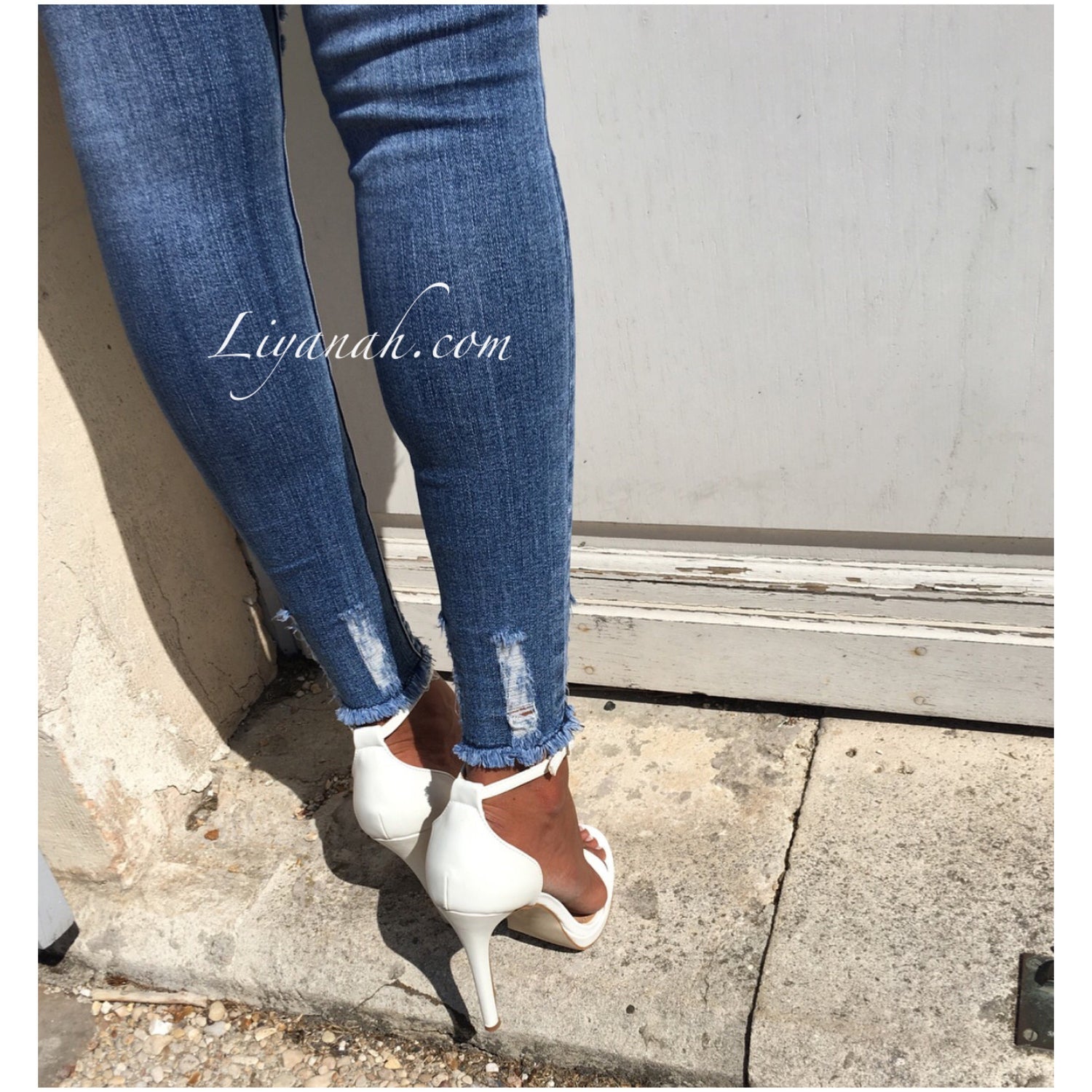 On est totalement dingue de ce jean légèrement destroy avec ses déchirures aux genoux !!!! Et aux chevilles ✖️