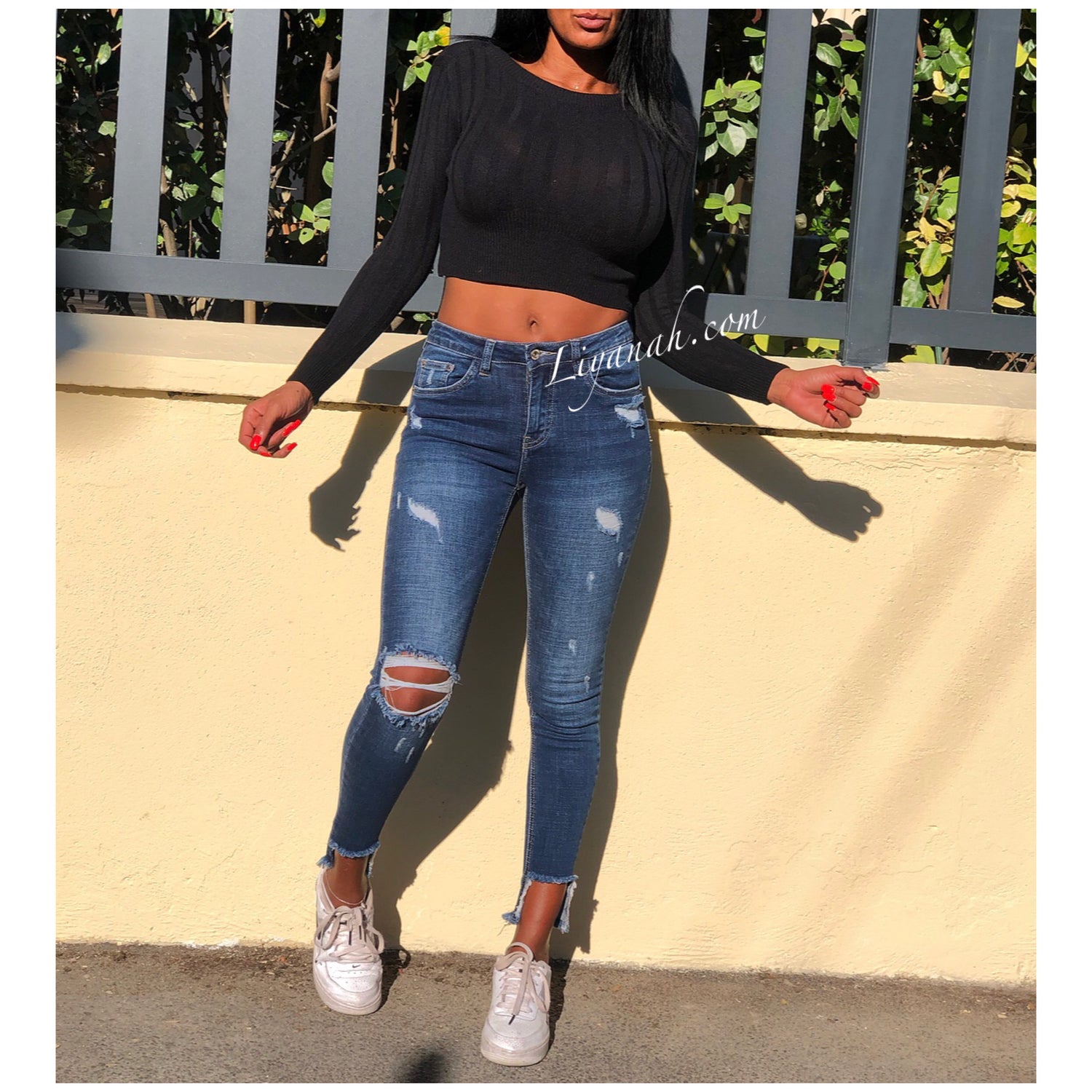 On valide sa coupe Skinny, sa coupe près du corps 💙 BLUE JEANS !!! Également Avec Des Déchirures et Détails aux chevilles (DU XS AU XL) 98% Cotton 2% Elasthanne