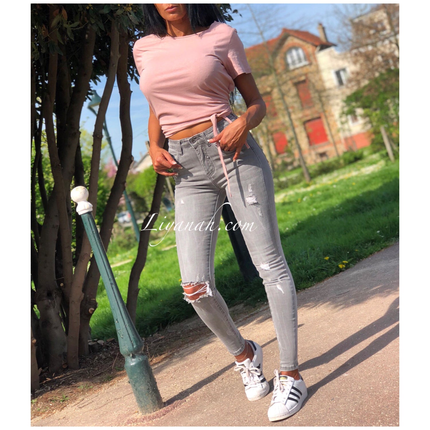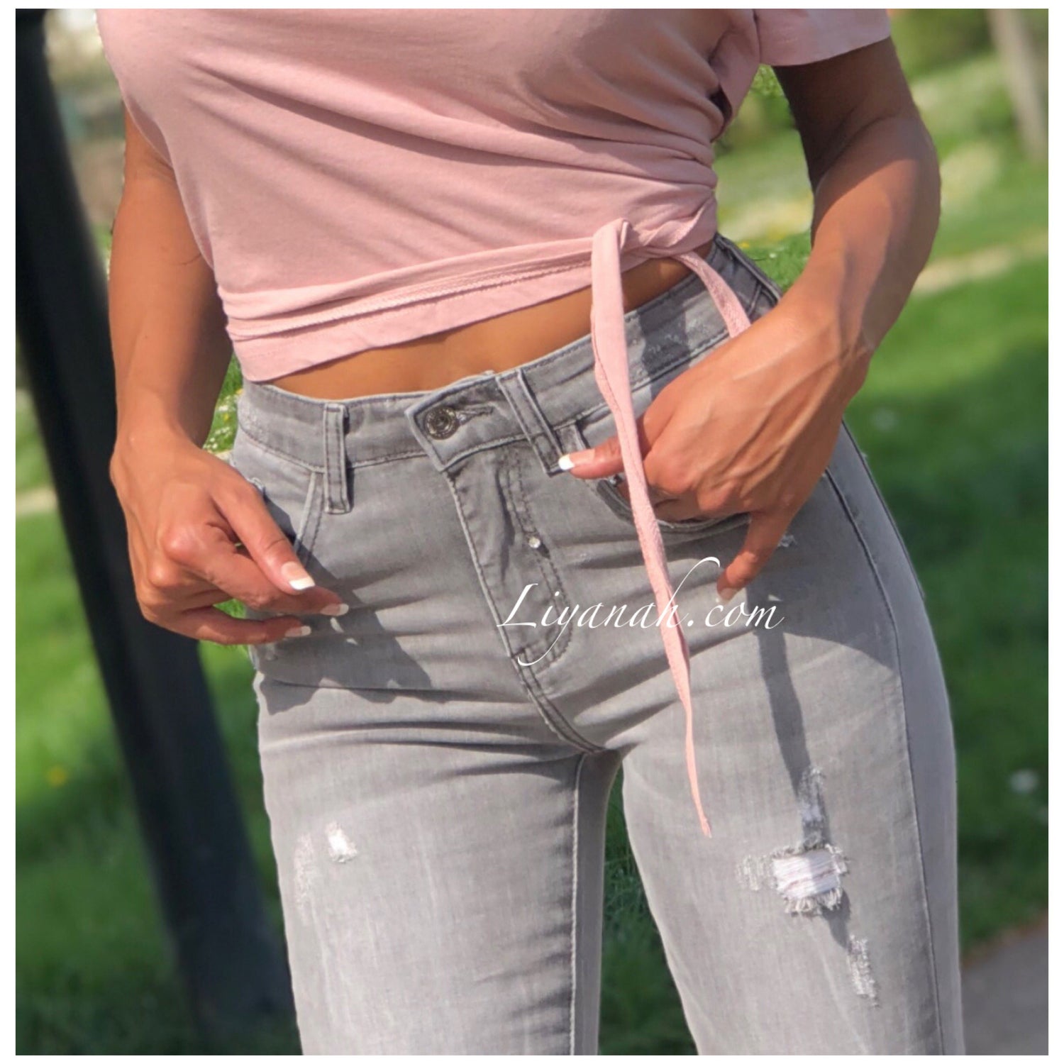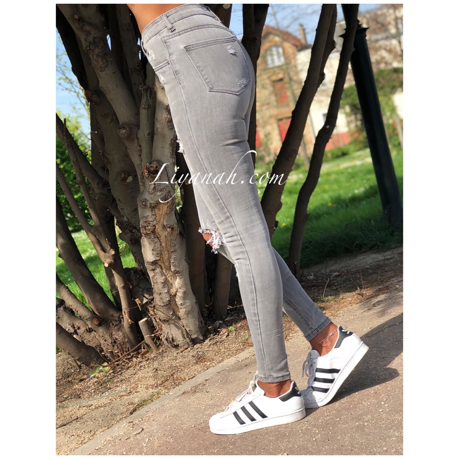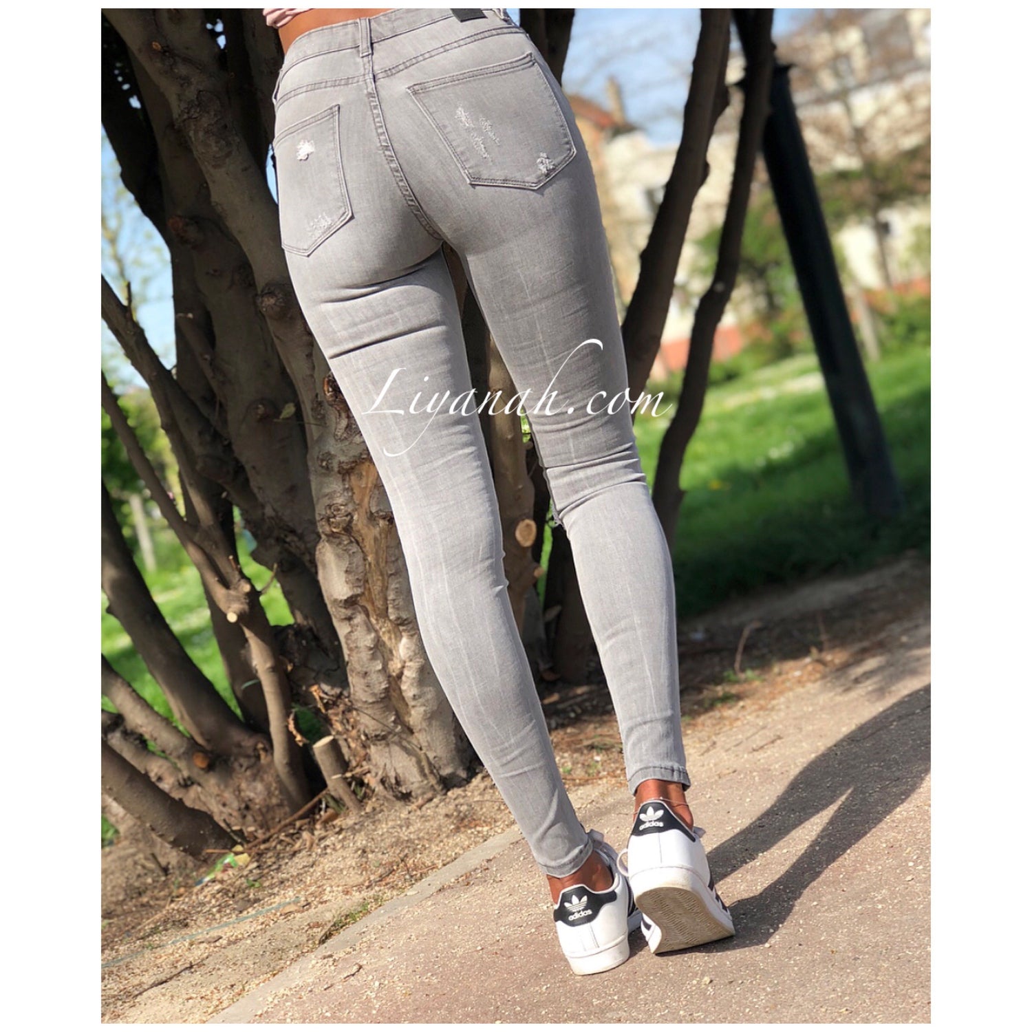Jean Skinny Modèle DIVYA GRIS CLAIR DESTROY TAILLE MI-HAUTE