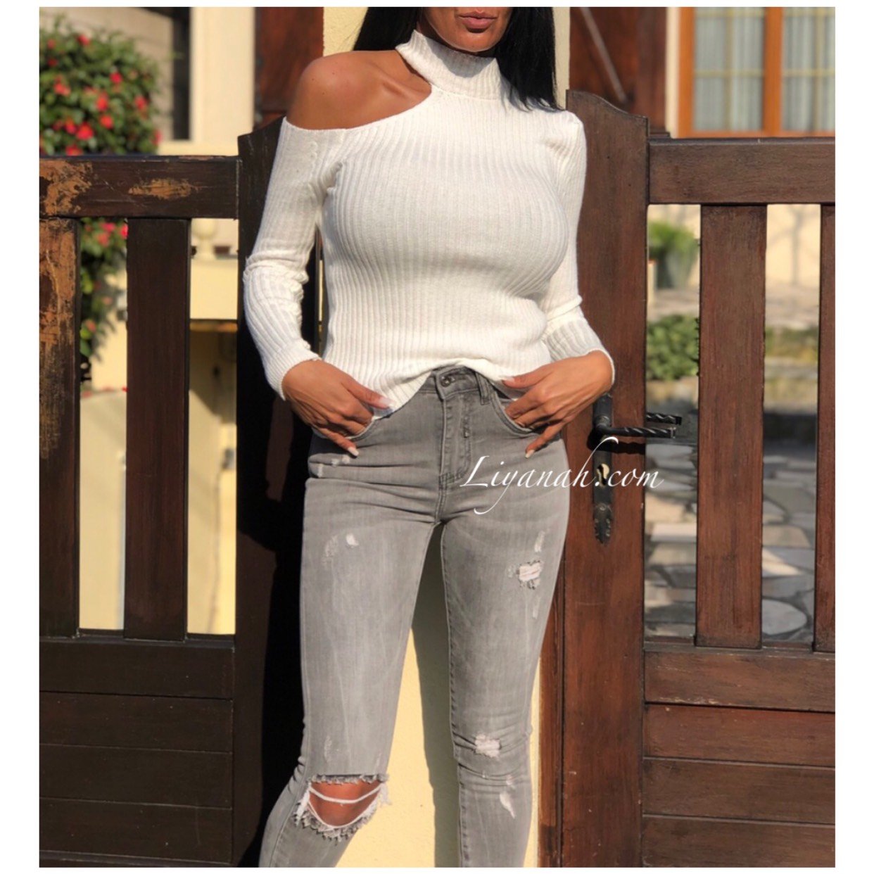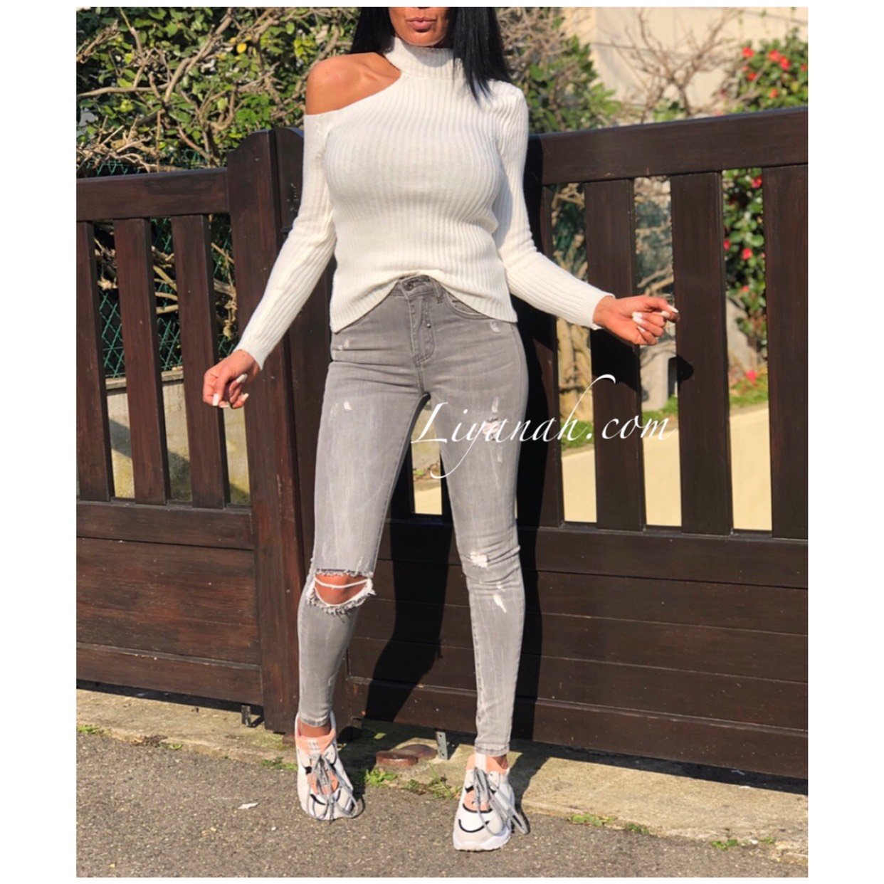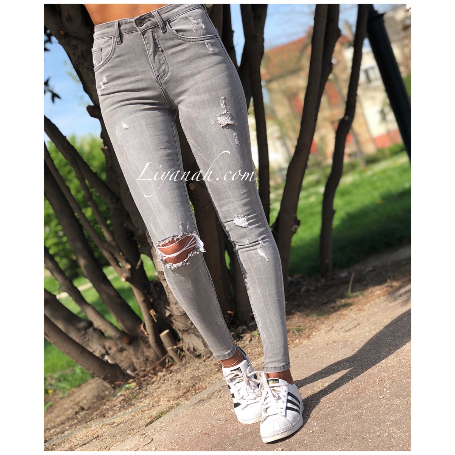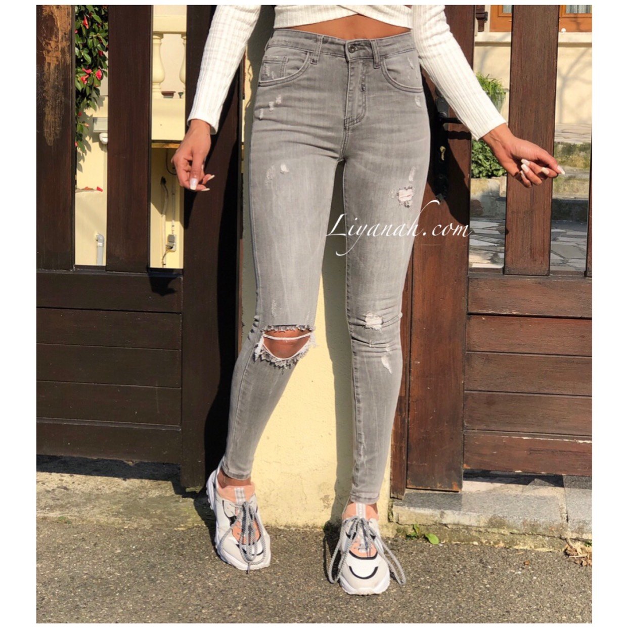 Jean Skinny Modèle DIVYA GRIS CLAIR DESTROY TAILLE MI-HAUTE