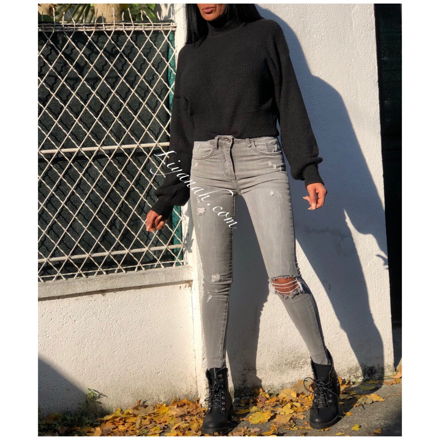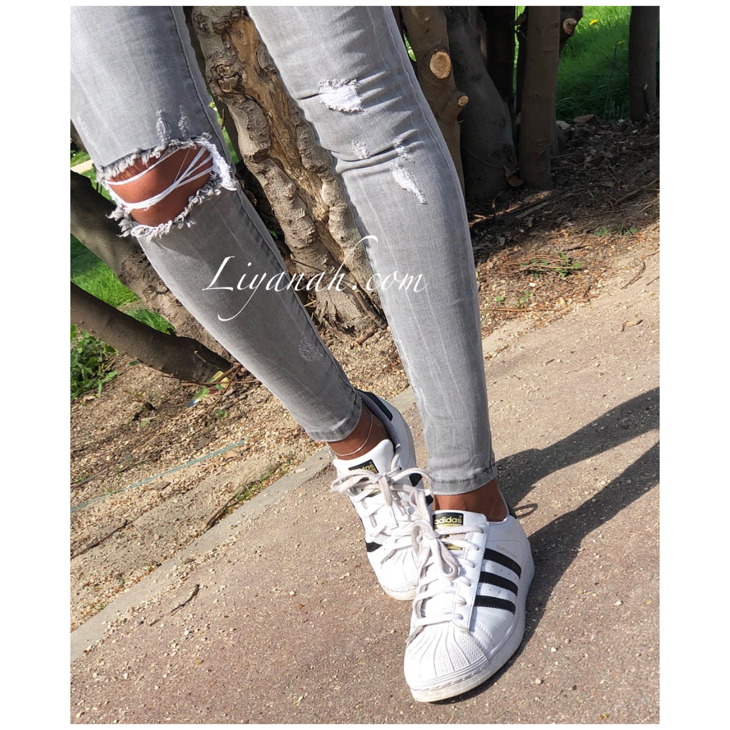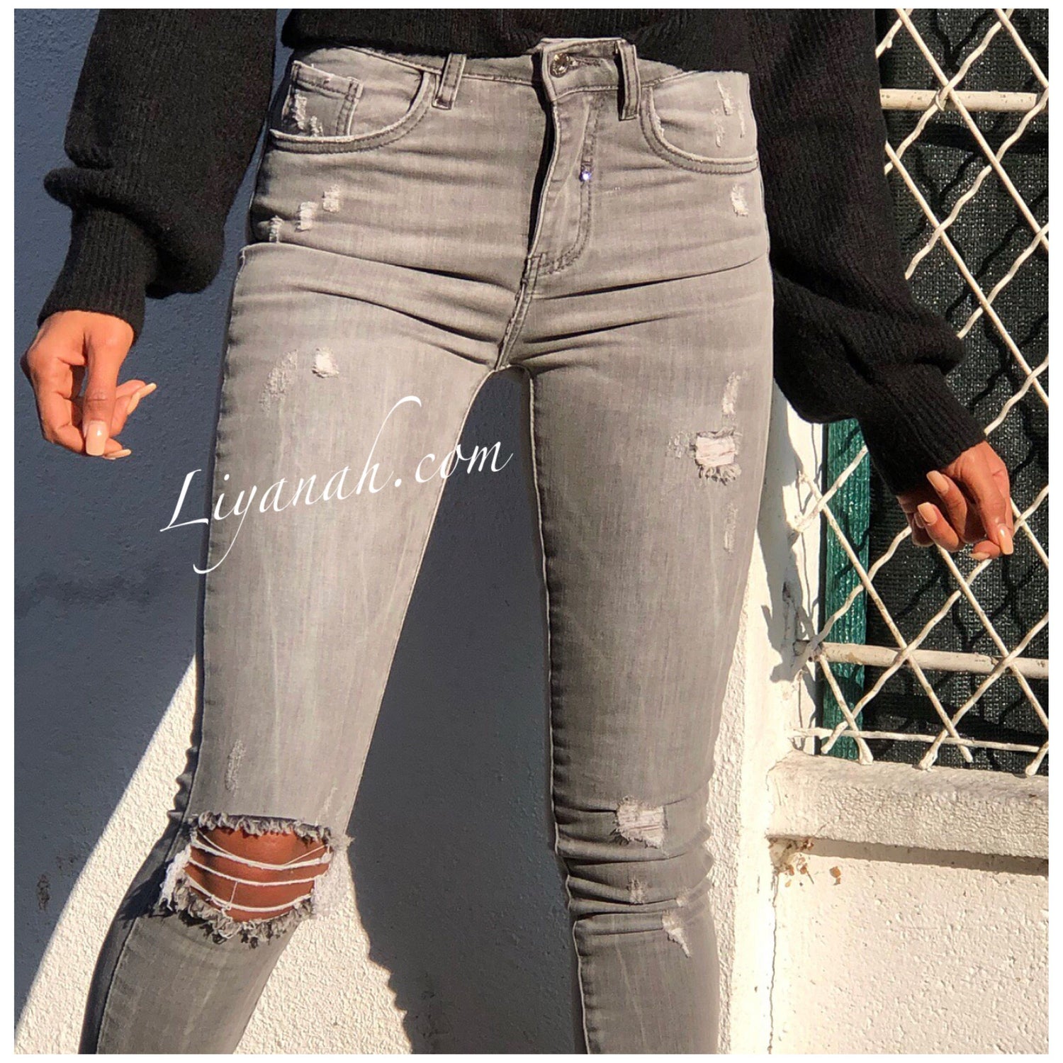 Jean Skinny Modèle DIVYA GRIS CLAIR DESTROY TAILLE MI-HAUTE - Il s'adapte très facilement à votre silhouette !! On valide sa coupe Skinny, sa coupe près du corps et sa TAILLE MI-HAUTE 🖤 Avec Des Déchirures (DU XS AU XL) 90% Cotton 8% Polyester 2% Elasthanne