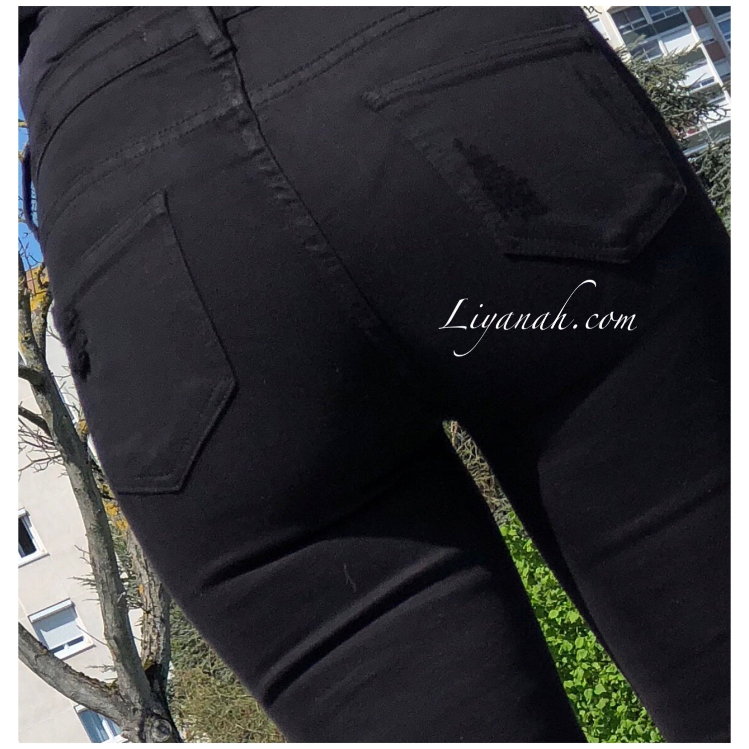 Jean Skinny Modèle HAYALA Noir On est totalement dingue de ce jean !!! Un jean à avoir dans son dressing !!!! Coupe Très près du corps !!! Couleur Noir 🖤 Women's Black Jeans !! Taille légèrement basse !! Détails : Déchirures aux chevilles - 97% COTTON 3% Elasthanne (Taille Du XS au XL) Ce modèle est disponible en Noir et Kaki