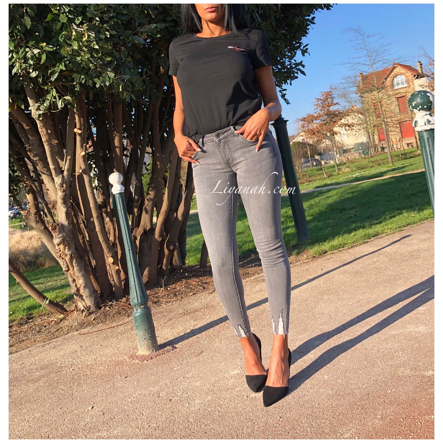 Jean Skinny Modèle KARIA GRIS Taille Basse