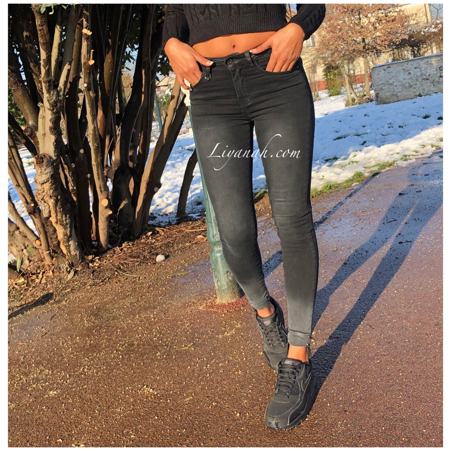 Jean Skinny Modèle LELLA BLACK / GREY Taille Basse