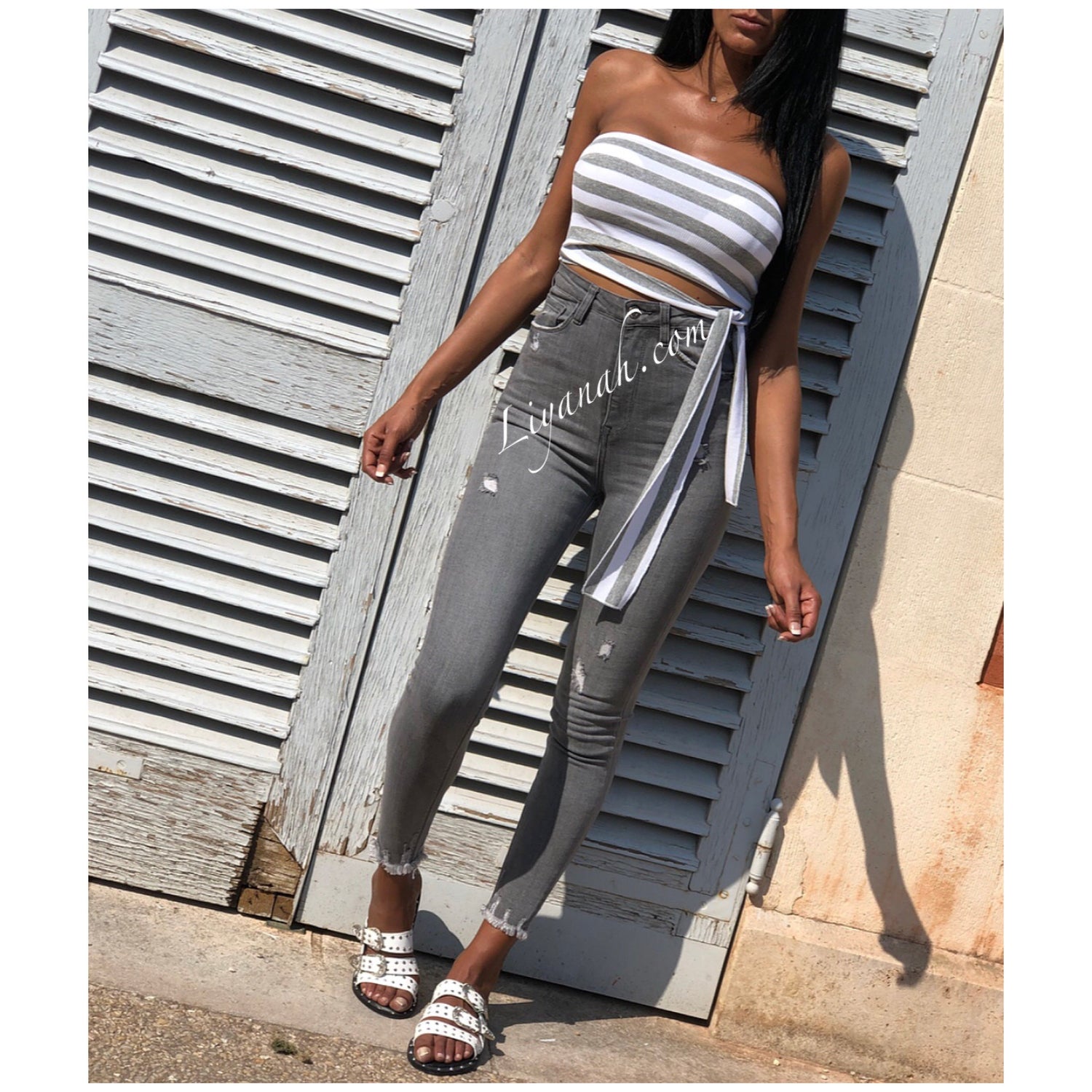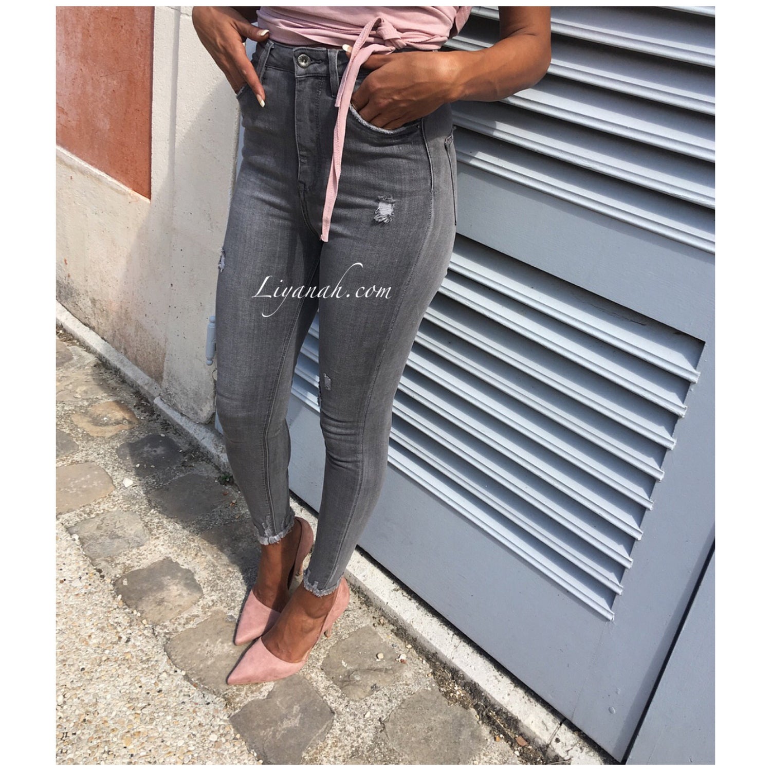 Jean Skinny Modèle RAYANY GRIS CLAIR TAILLE HAUTE