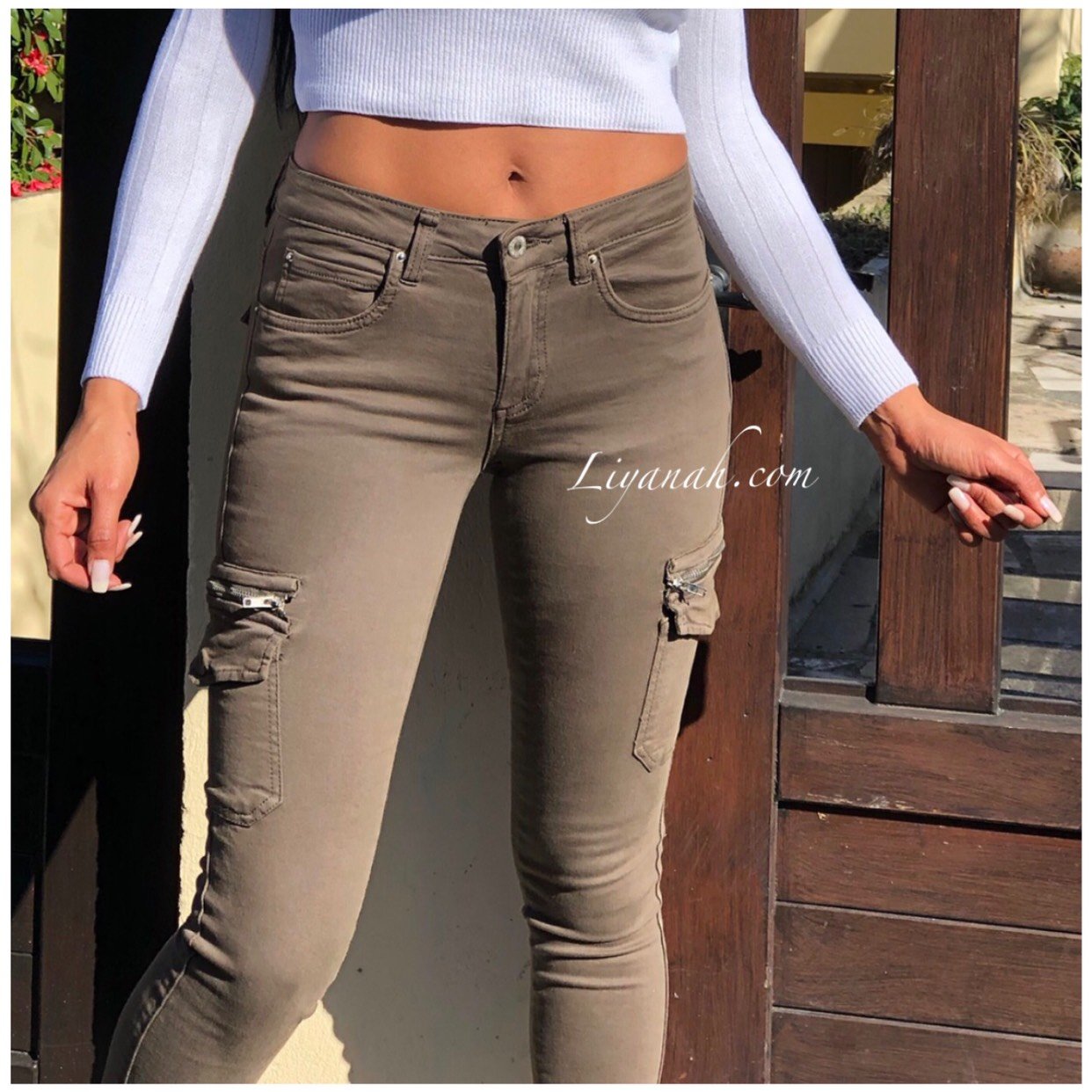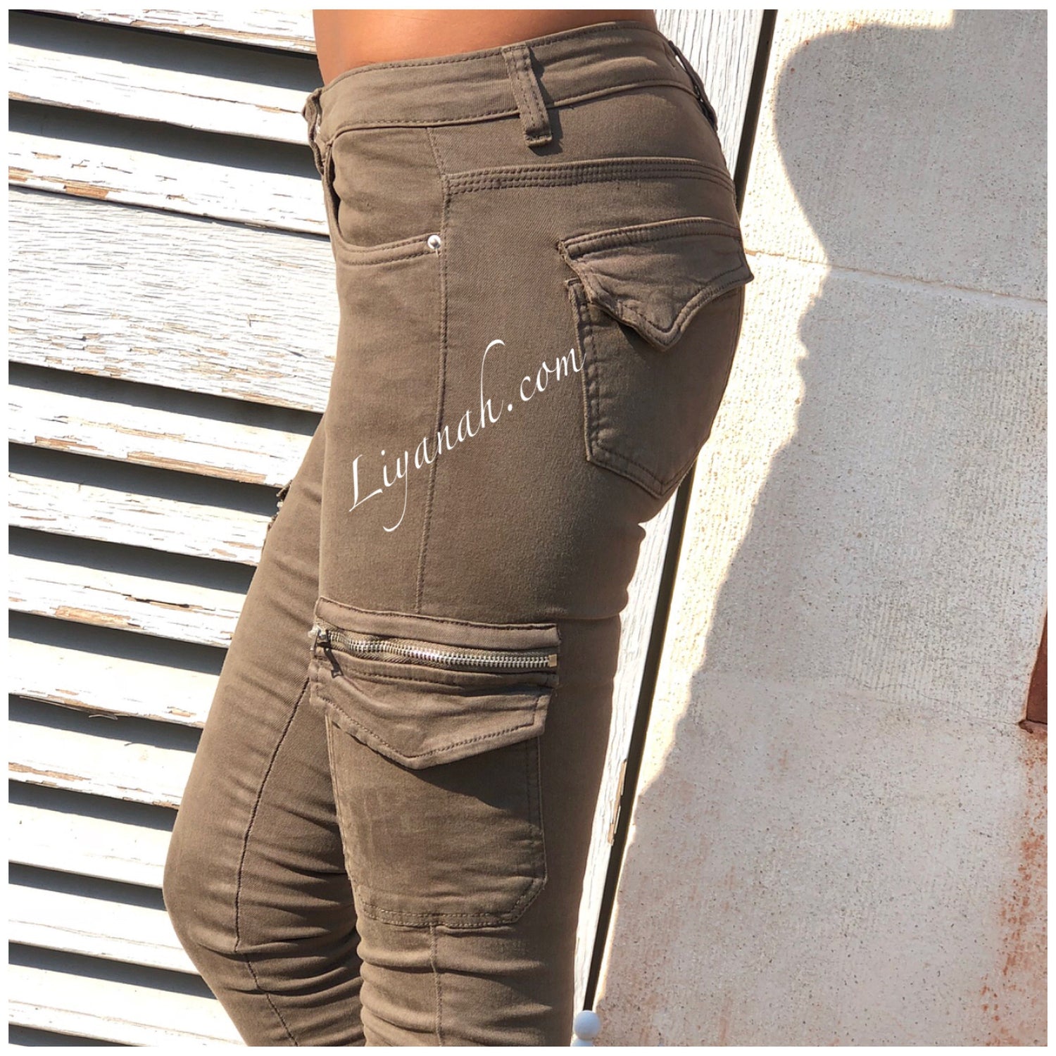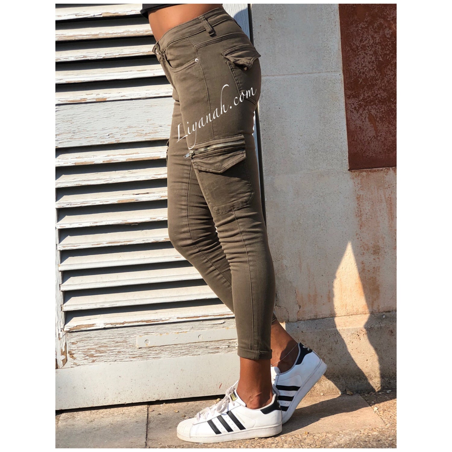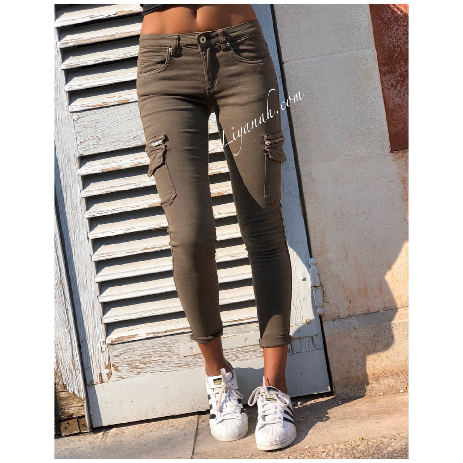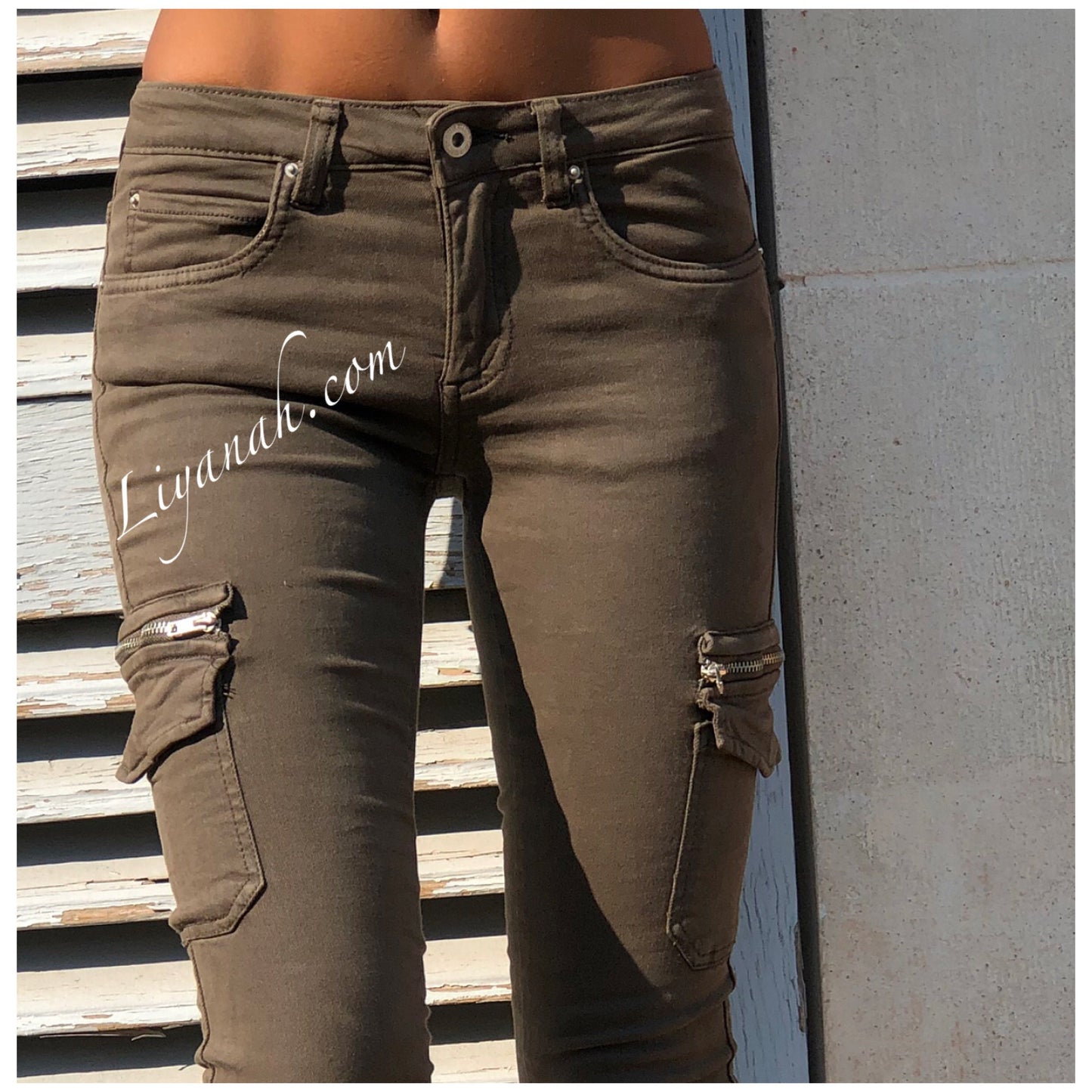Jean Skinny Modèle WANDULA KAKI avec POCHES