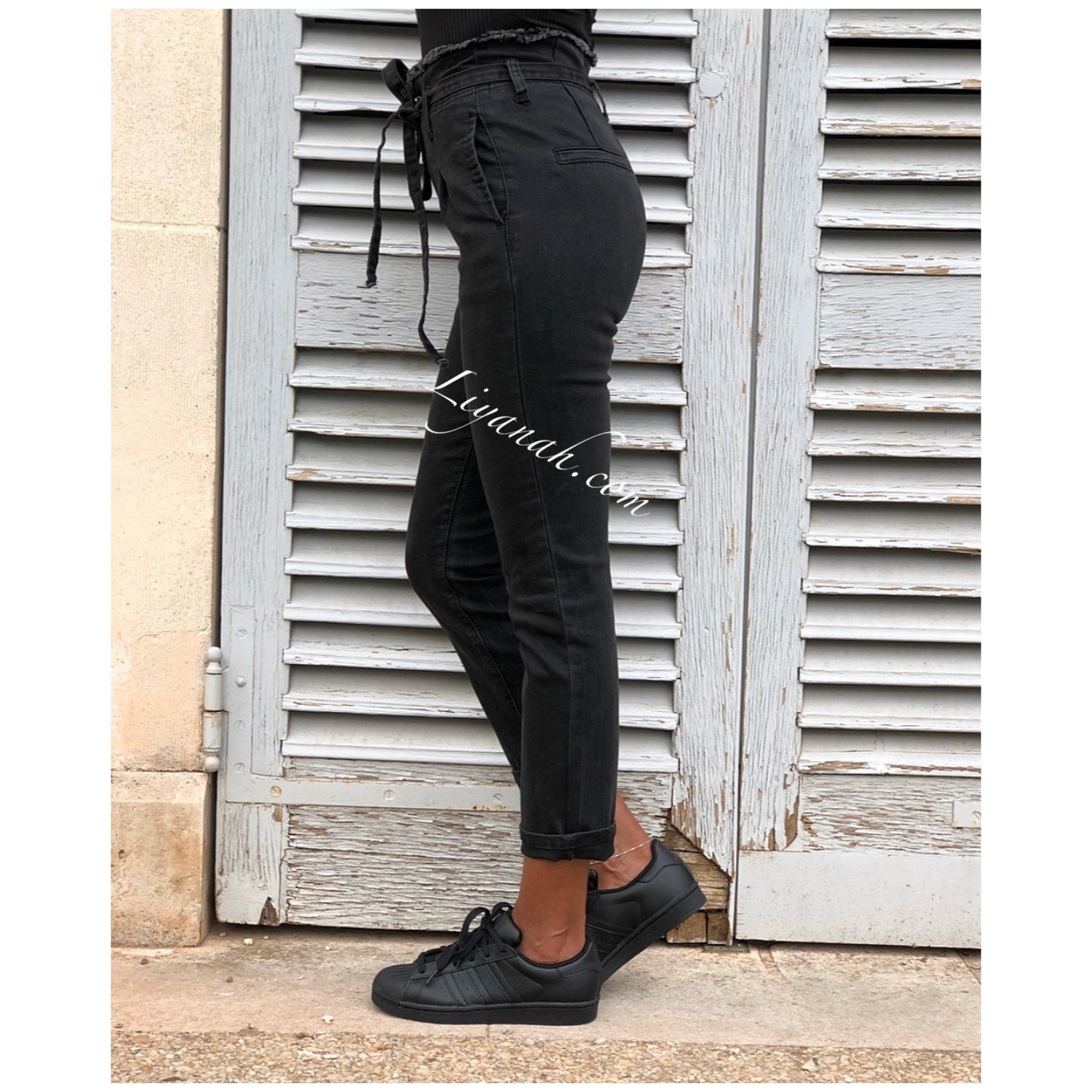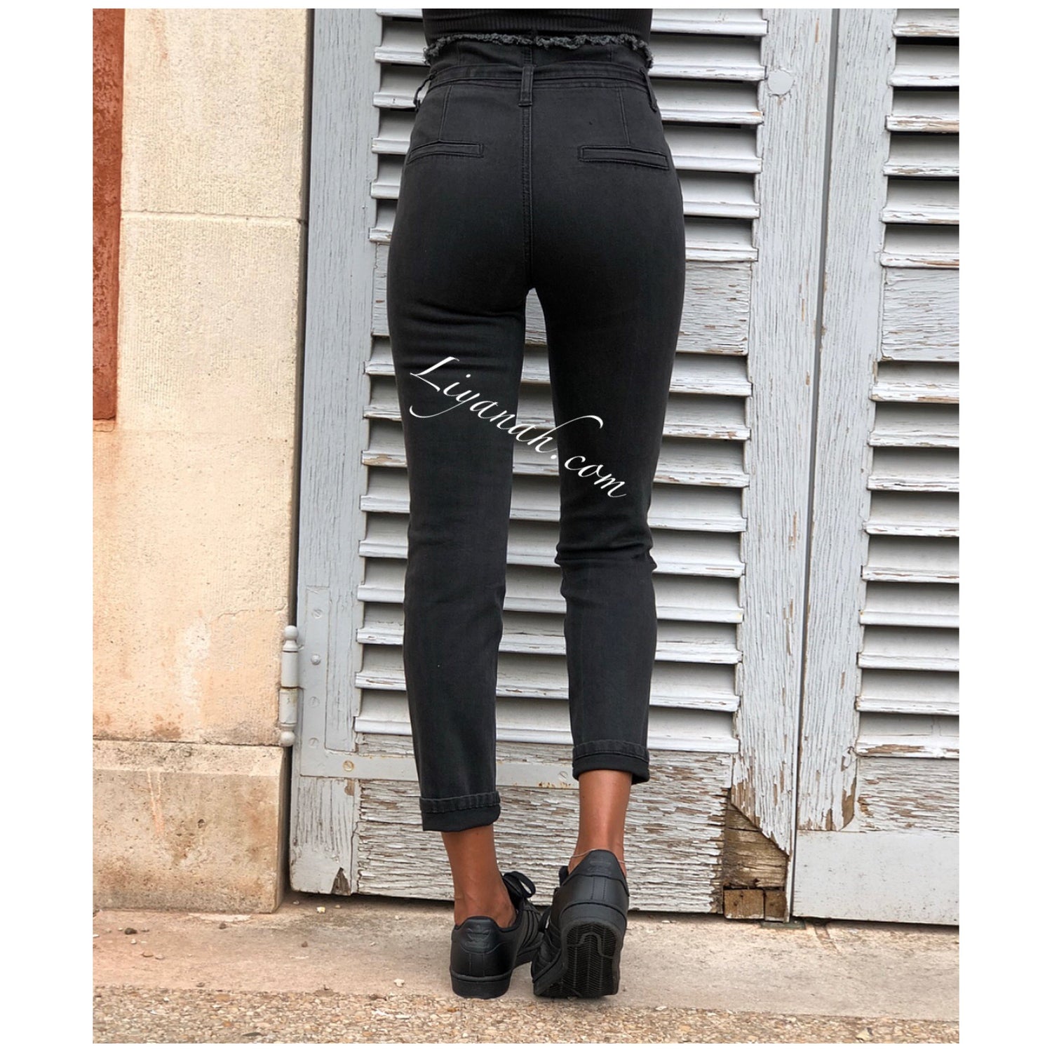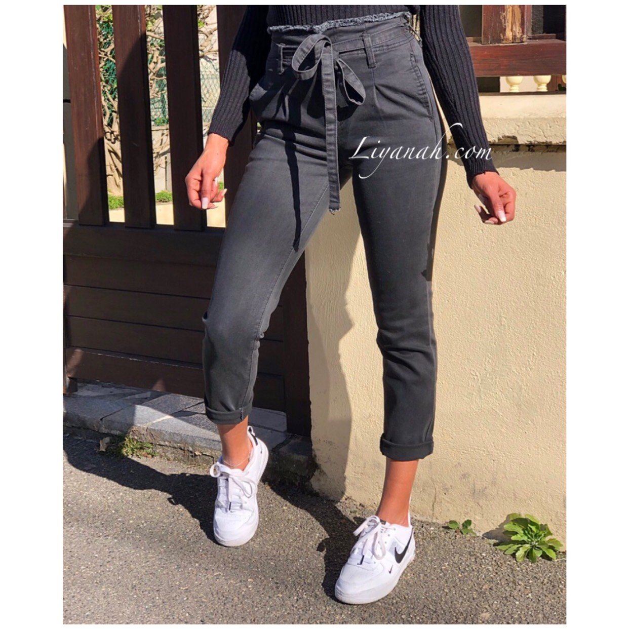 JEAN SLIM BLACK/GREY TAILLE Haute À NOEUD Modèle KYANA