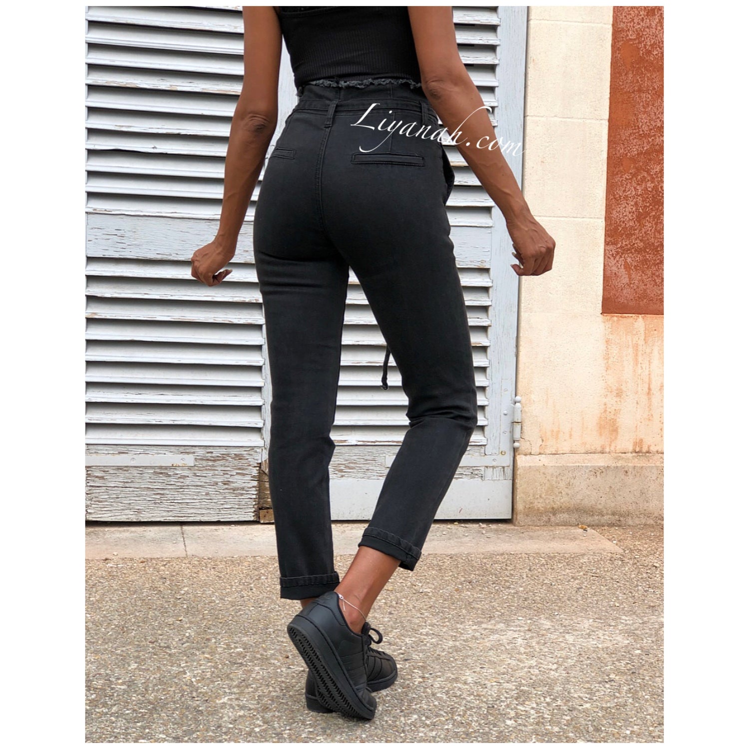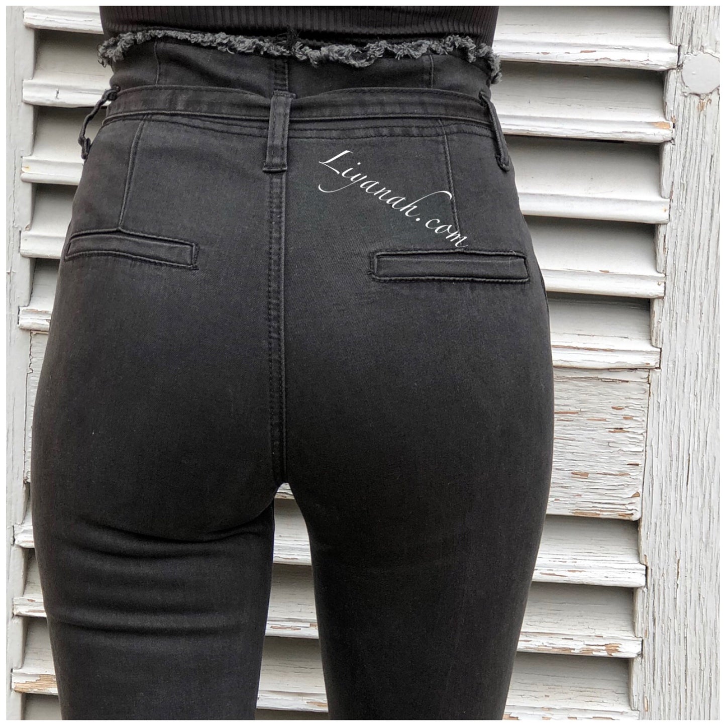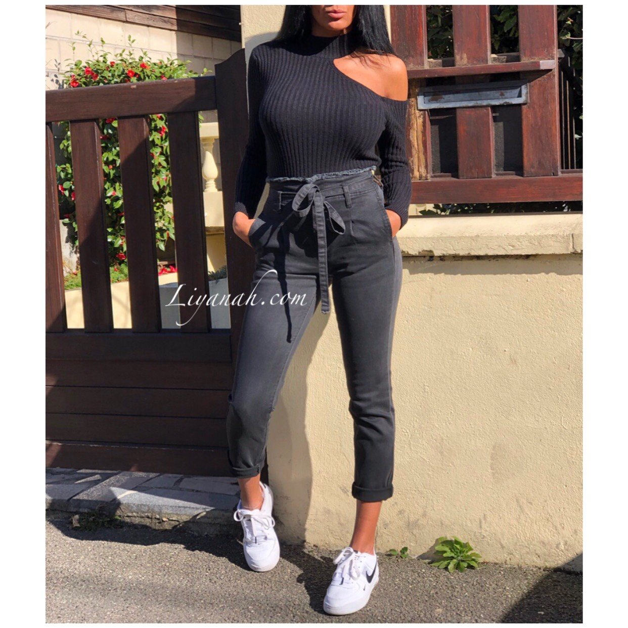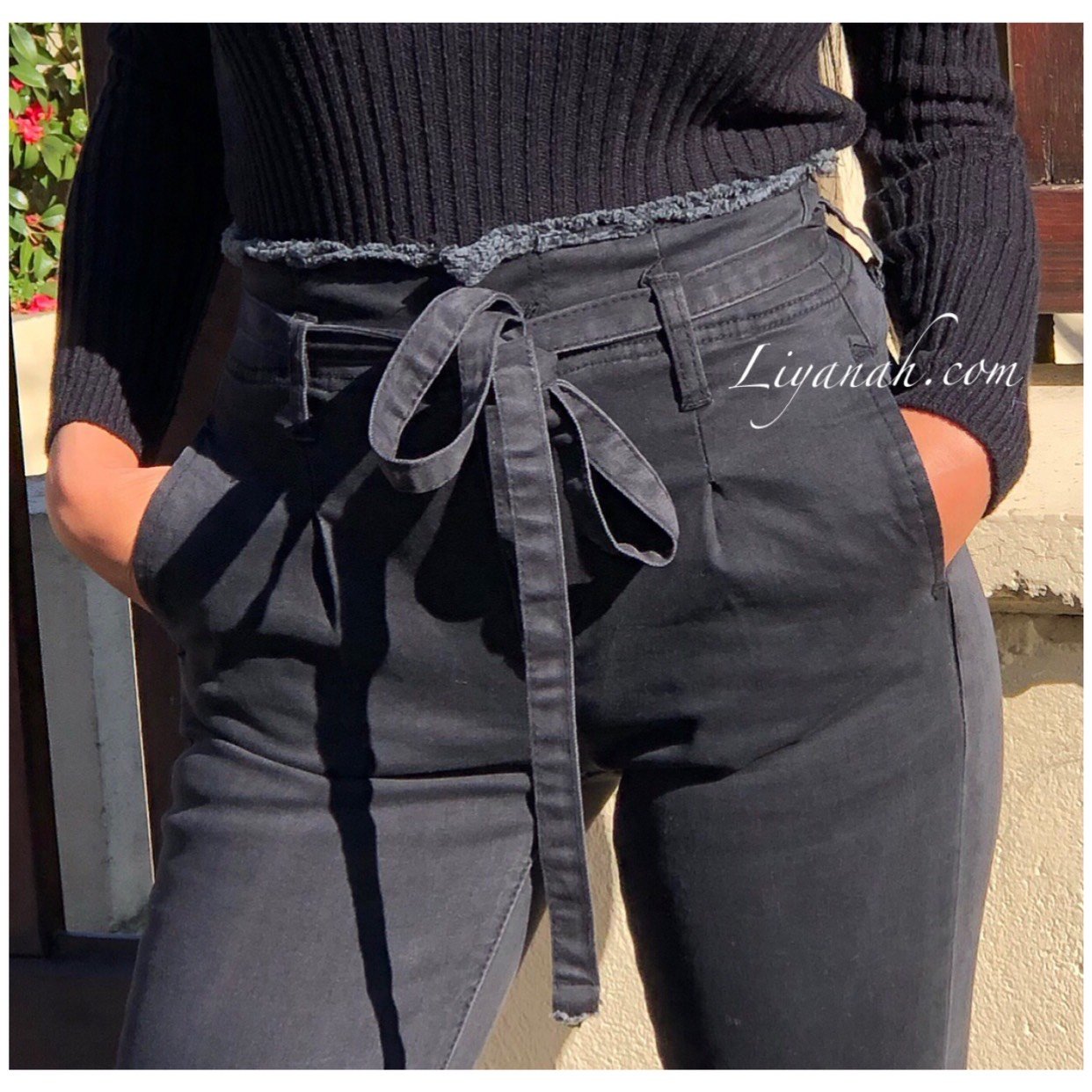 JEAN SLIM BLACK/GREY TAILLE Haute À NOEUD Modèle KYANA