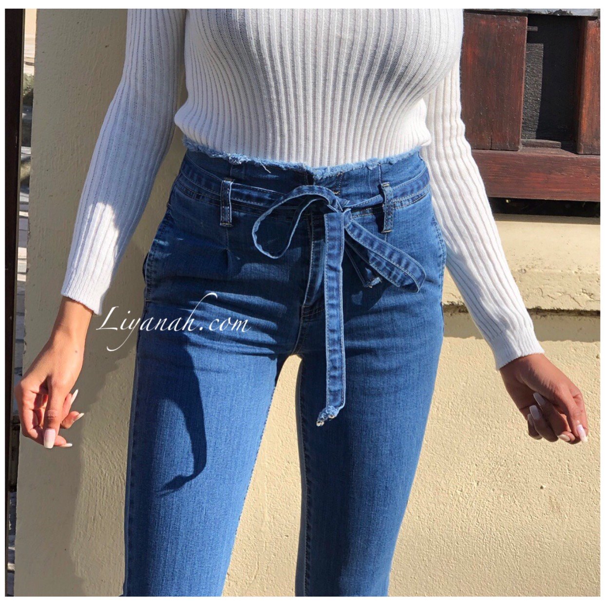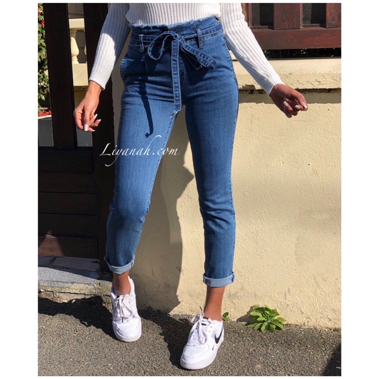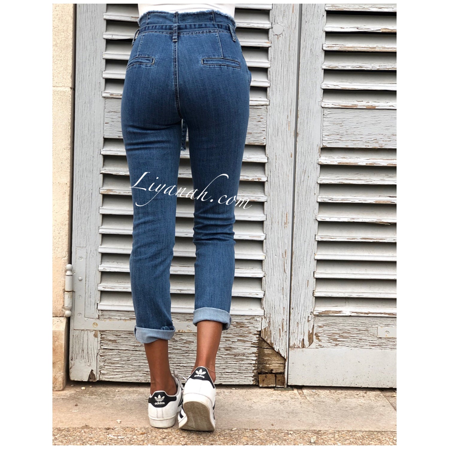 JEAN SLIM BLUE TAILLE Haute À NOEUD Modèle KYANA