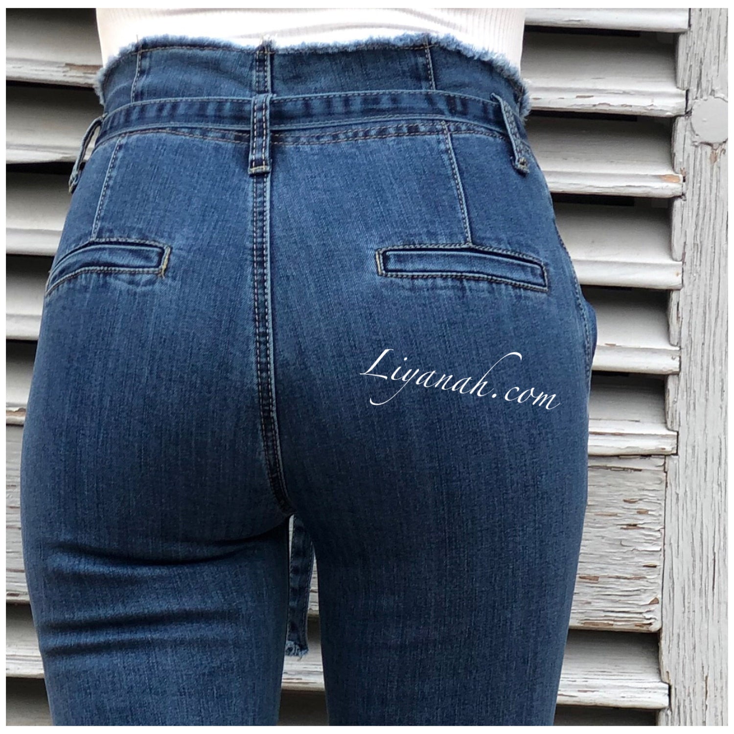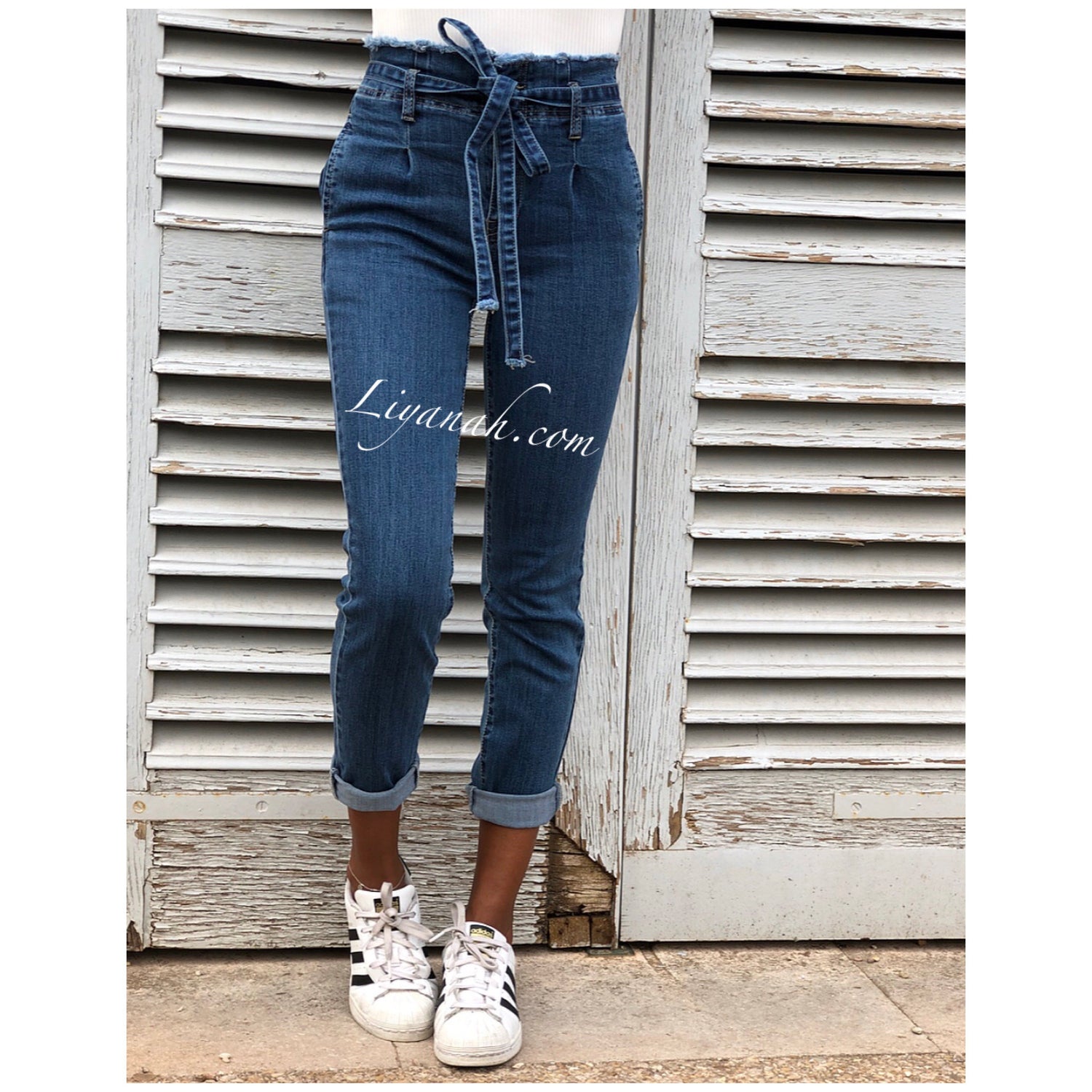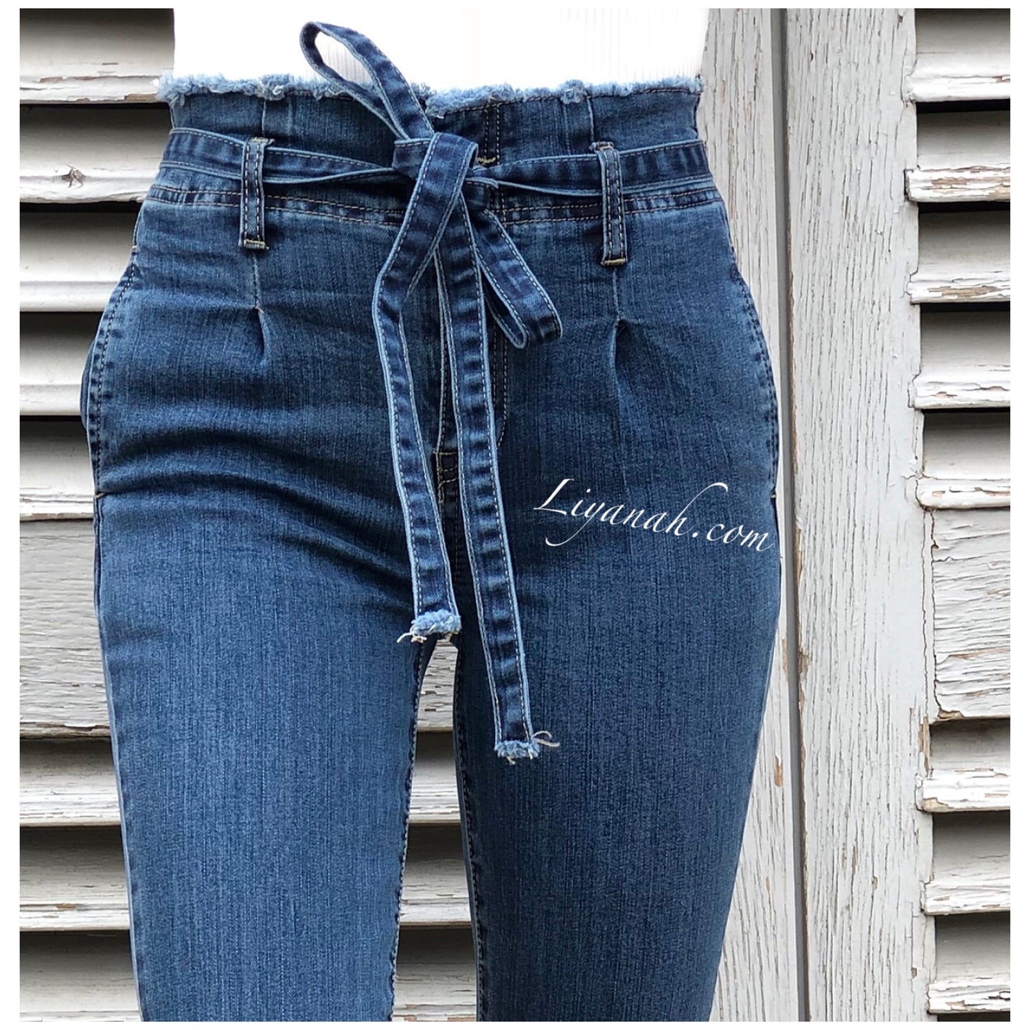 JEAN SLIM BLUE TAILLE Haute À NOEUD Modèle KYANA