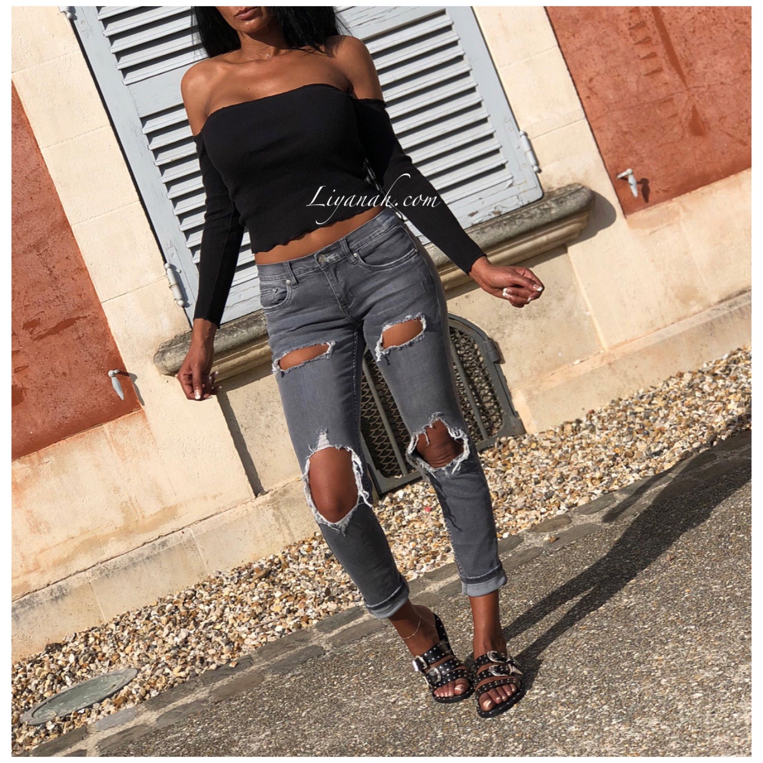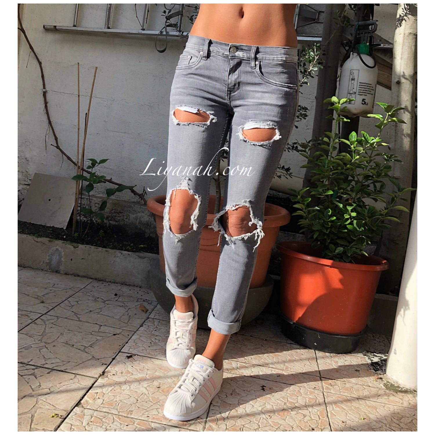 Jean Slim Boyfriend DESTROY TALYSSA GRIS