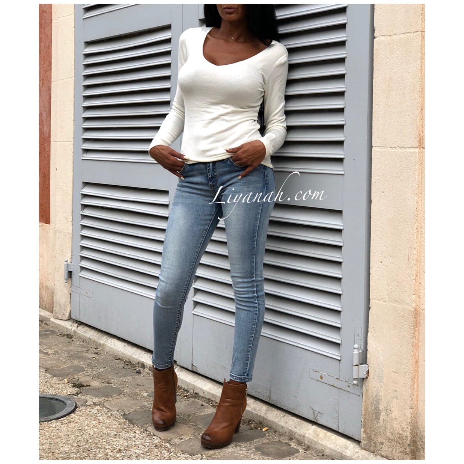 JEAN SLIM LIGHT BLUE Modèle VARCHYA Un Basic Bleu clair, une Coupe Slim ... légèrement Près du corps - 98% Coton 2% Elasthanne - Conseil : Prenez votre taille habituelle - Taille XS à XL 💙 Notre modèle porte une Taille XS et fait un 34