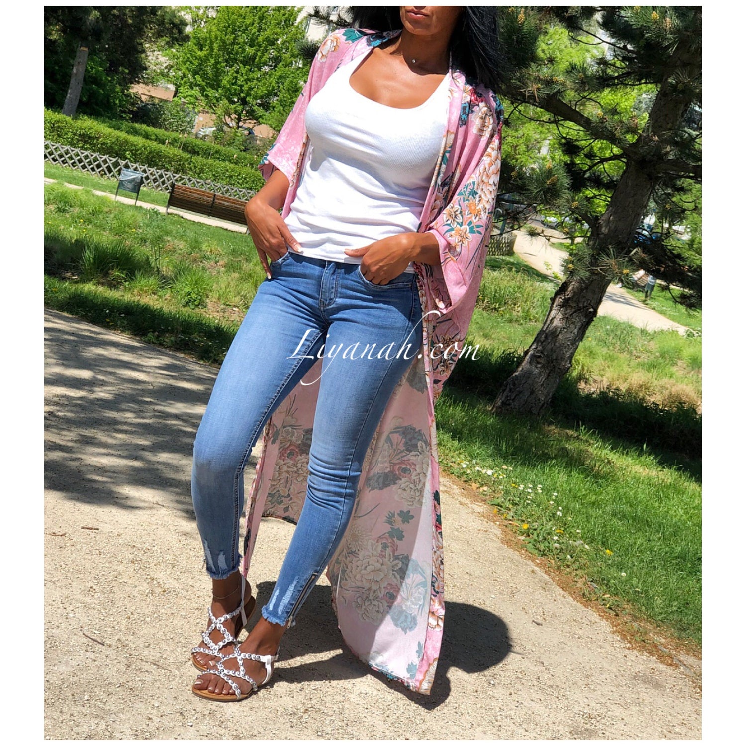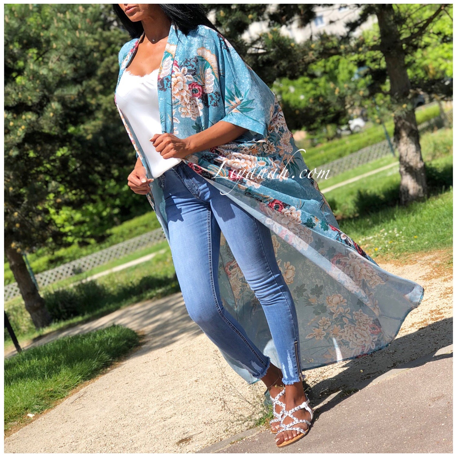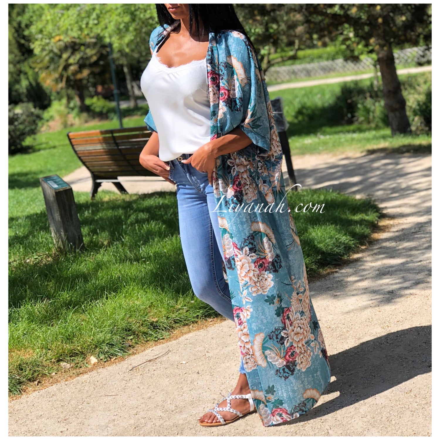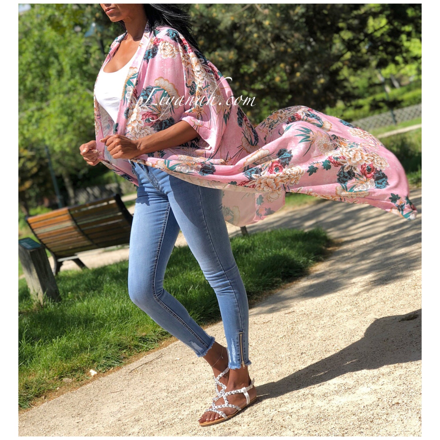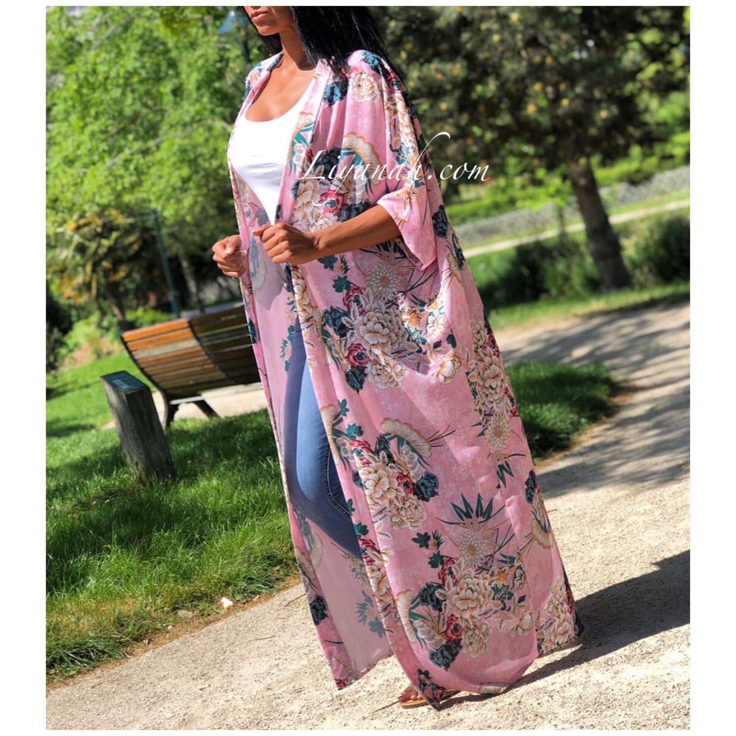 Kimono Long AYALA Fleuri Rose ou Vert Imprimé floral sur l’ensemble du Kimono Taille Unique 95% polyester 5% Elasthanne Longueur : 143 cm MANCHES COURTES Apportez une touche fleurie à votre look avec ce Kimono totalement fleuri - Portez-le avec un jean, Short ou robe pour rehausser vos basiques. Ou bien Cet été au dessus d'un maillot de bain sur la plage
