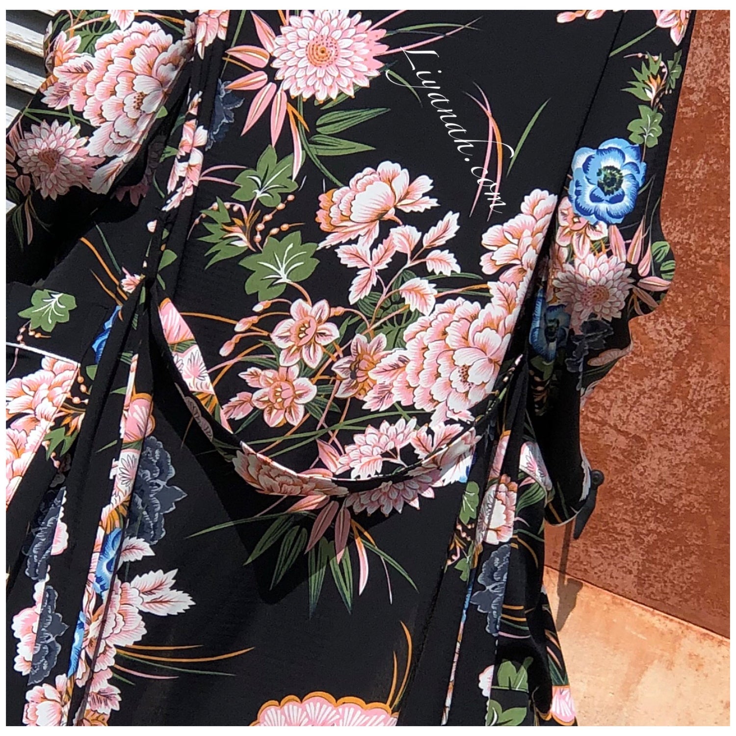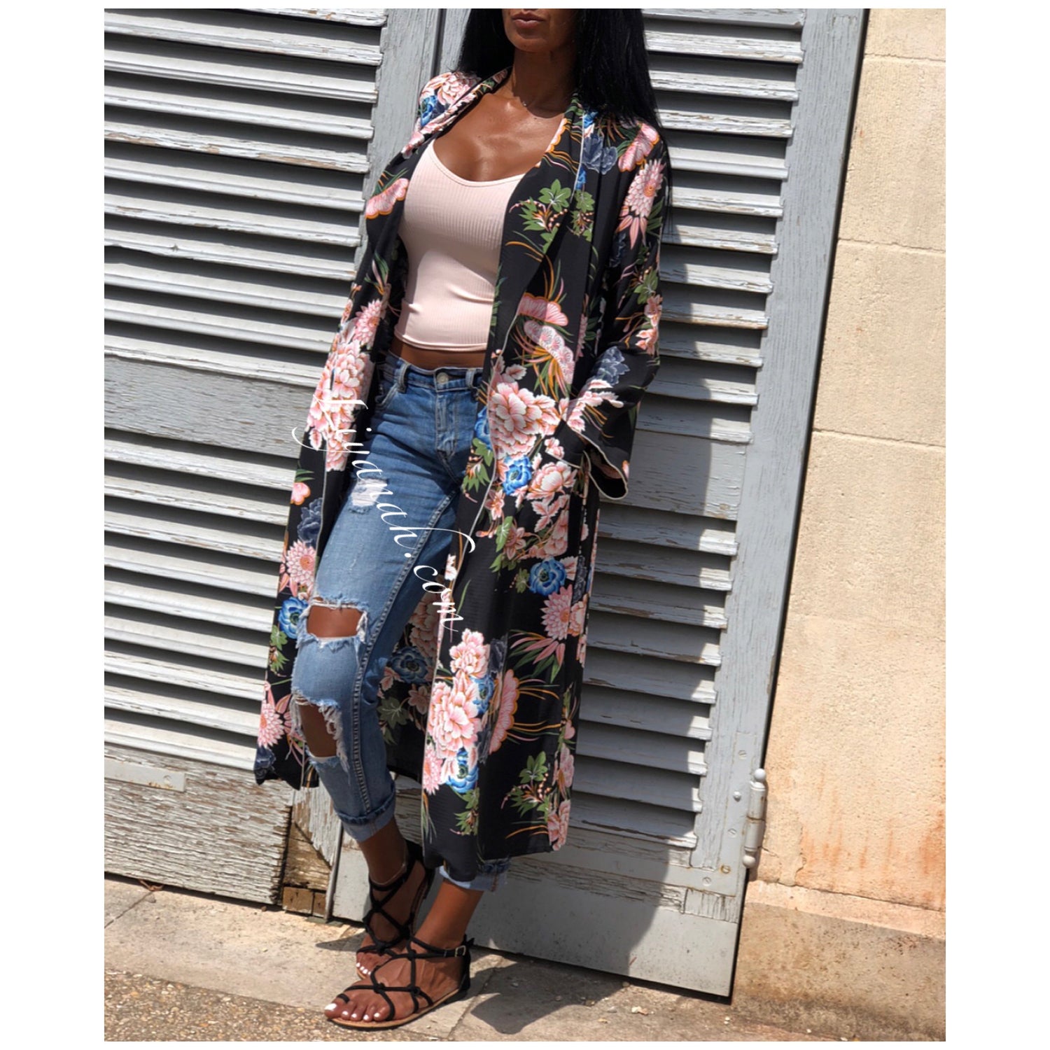 Kimono Mi-Long DYCHANA Fleuri Noir