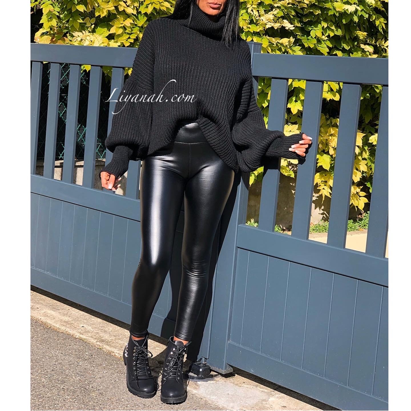 Legging TAILLE HAUTE AELYSA NOIR Aspect Cuir
