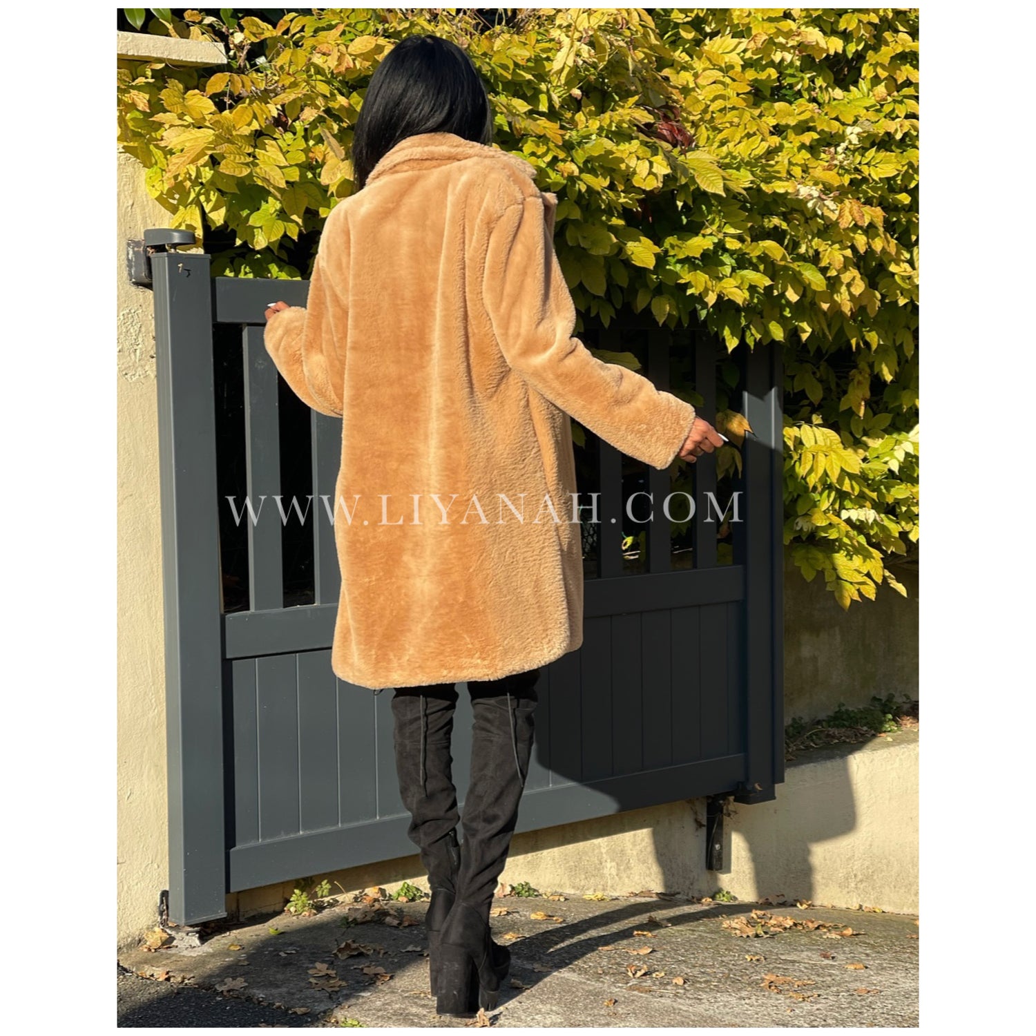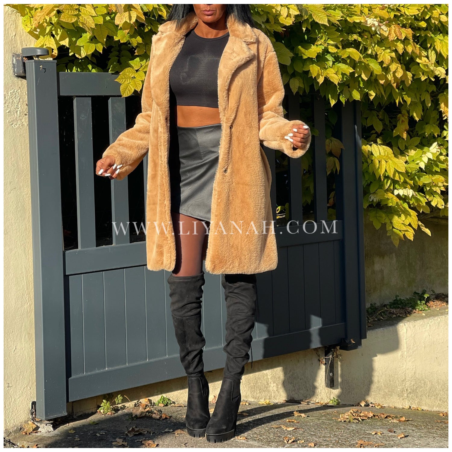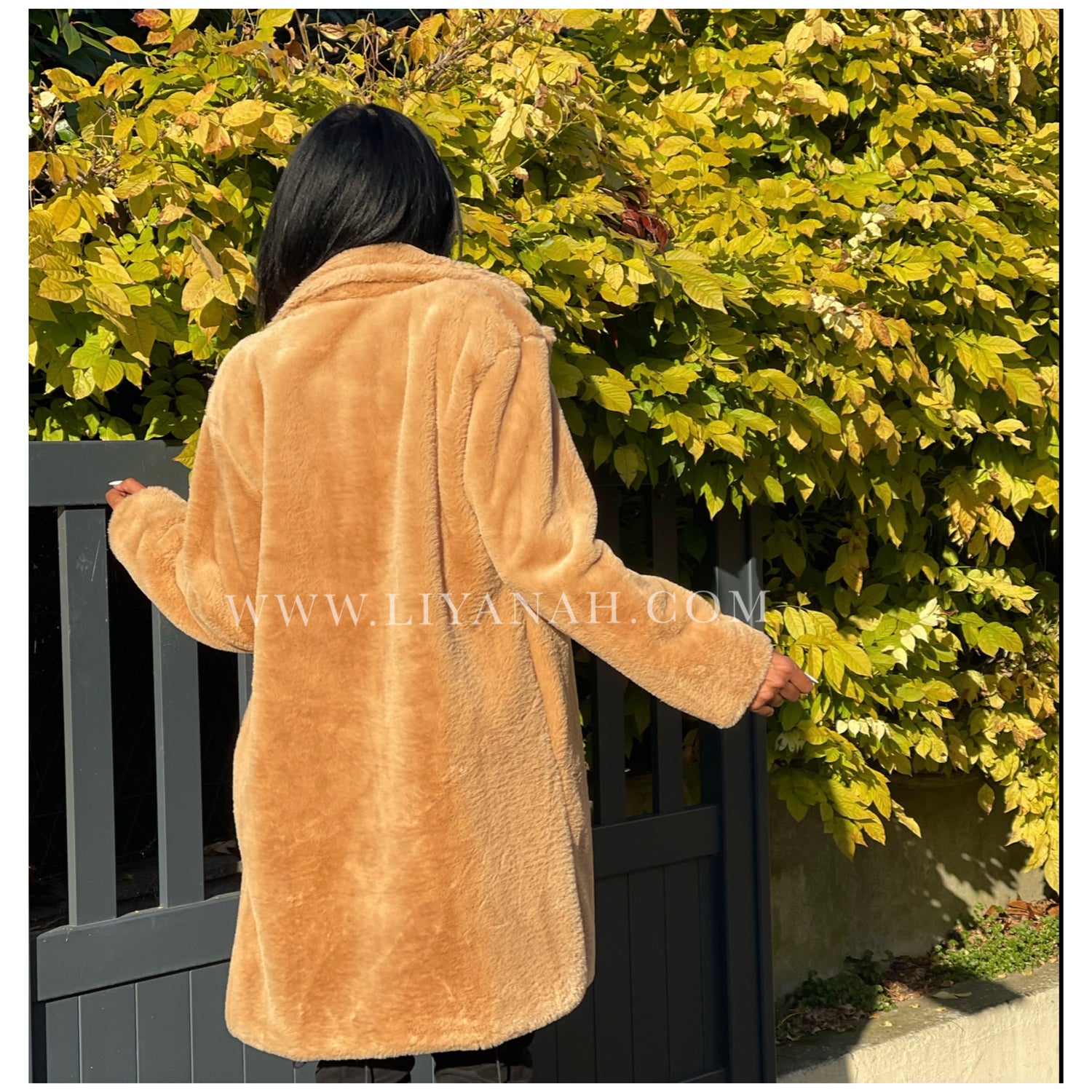 MANTEAU FAUSSE FOURRURE BEIGE Modèle VENYSA