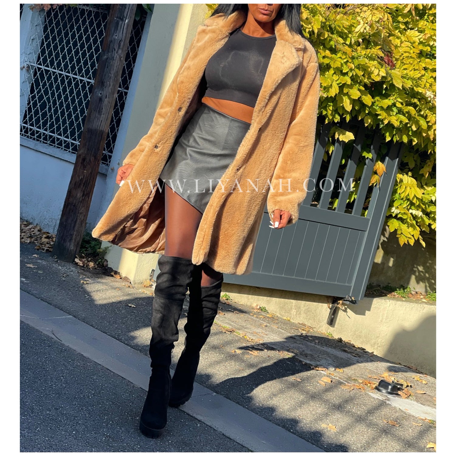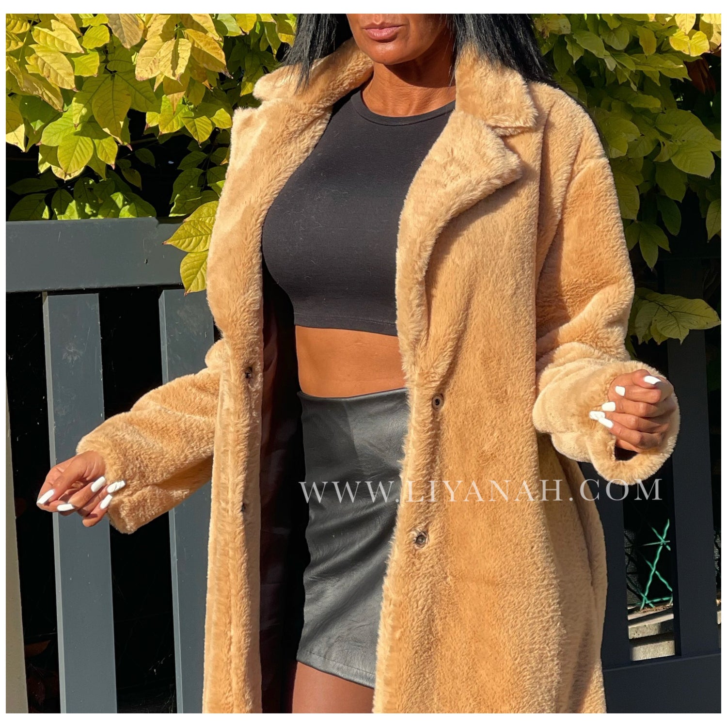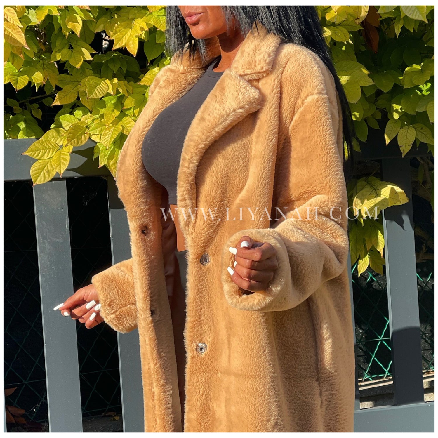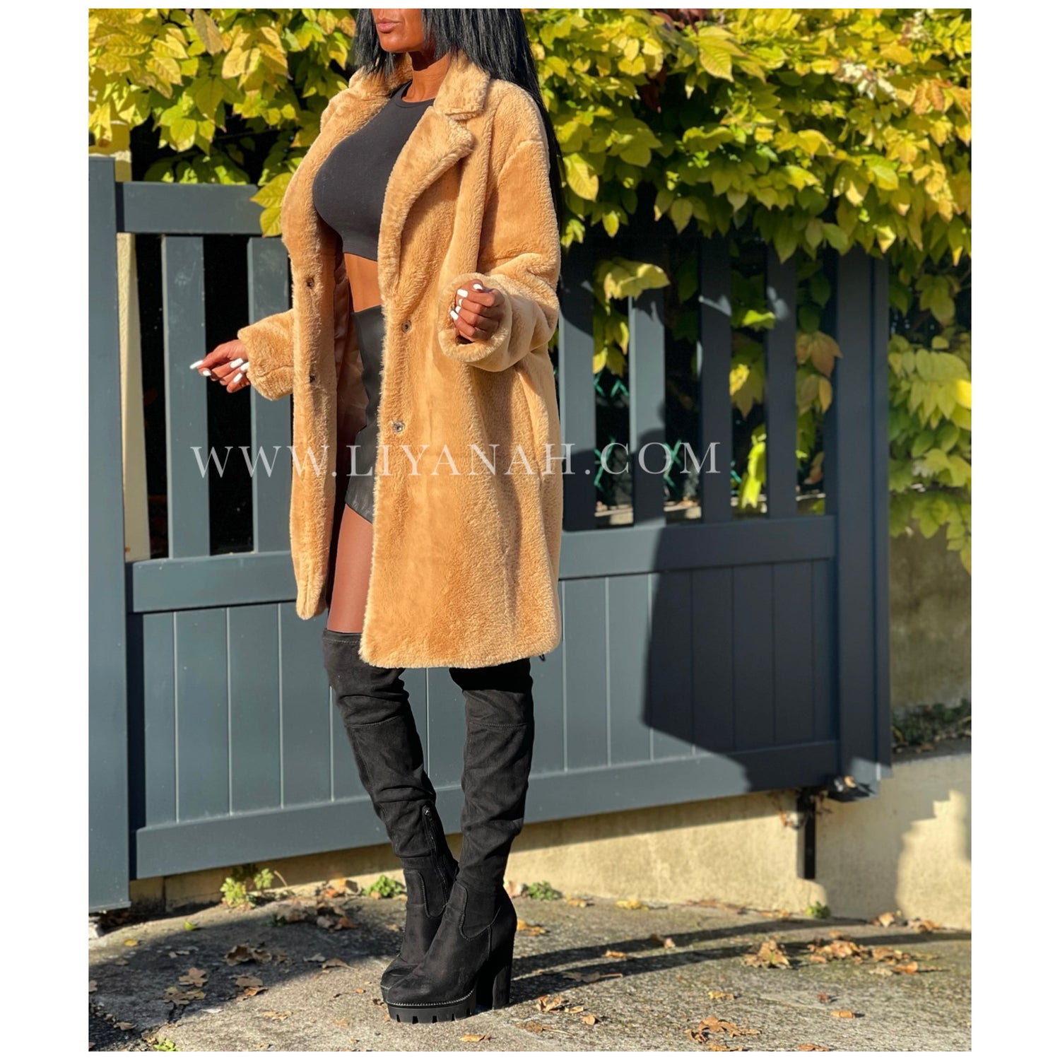 MANTEAU FAUSSE FOURRURE BEIGE Modèle VENYSA