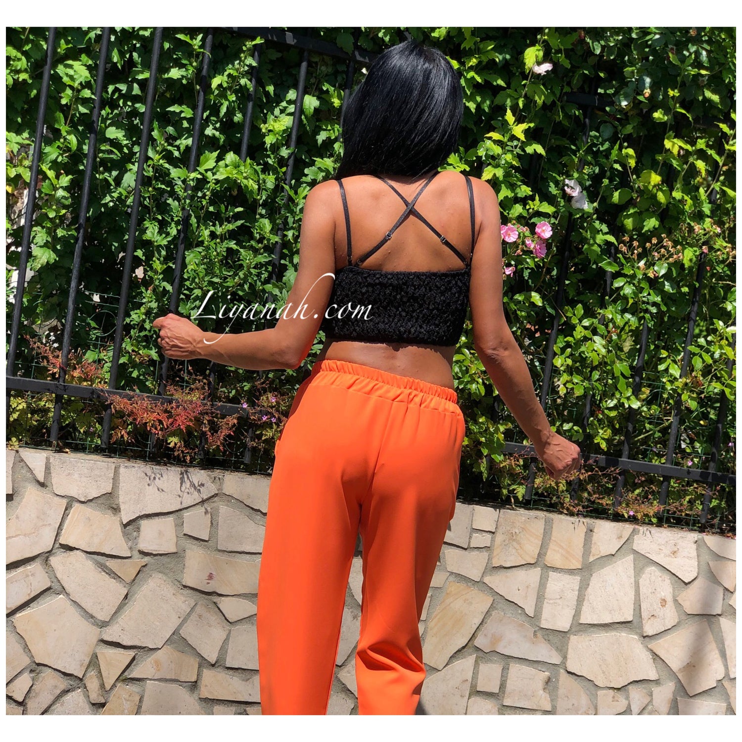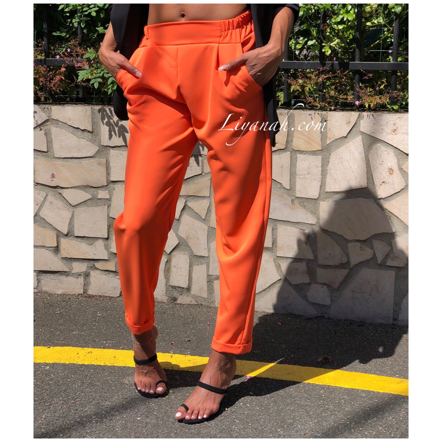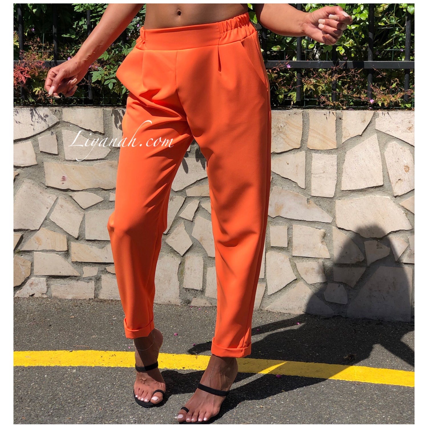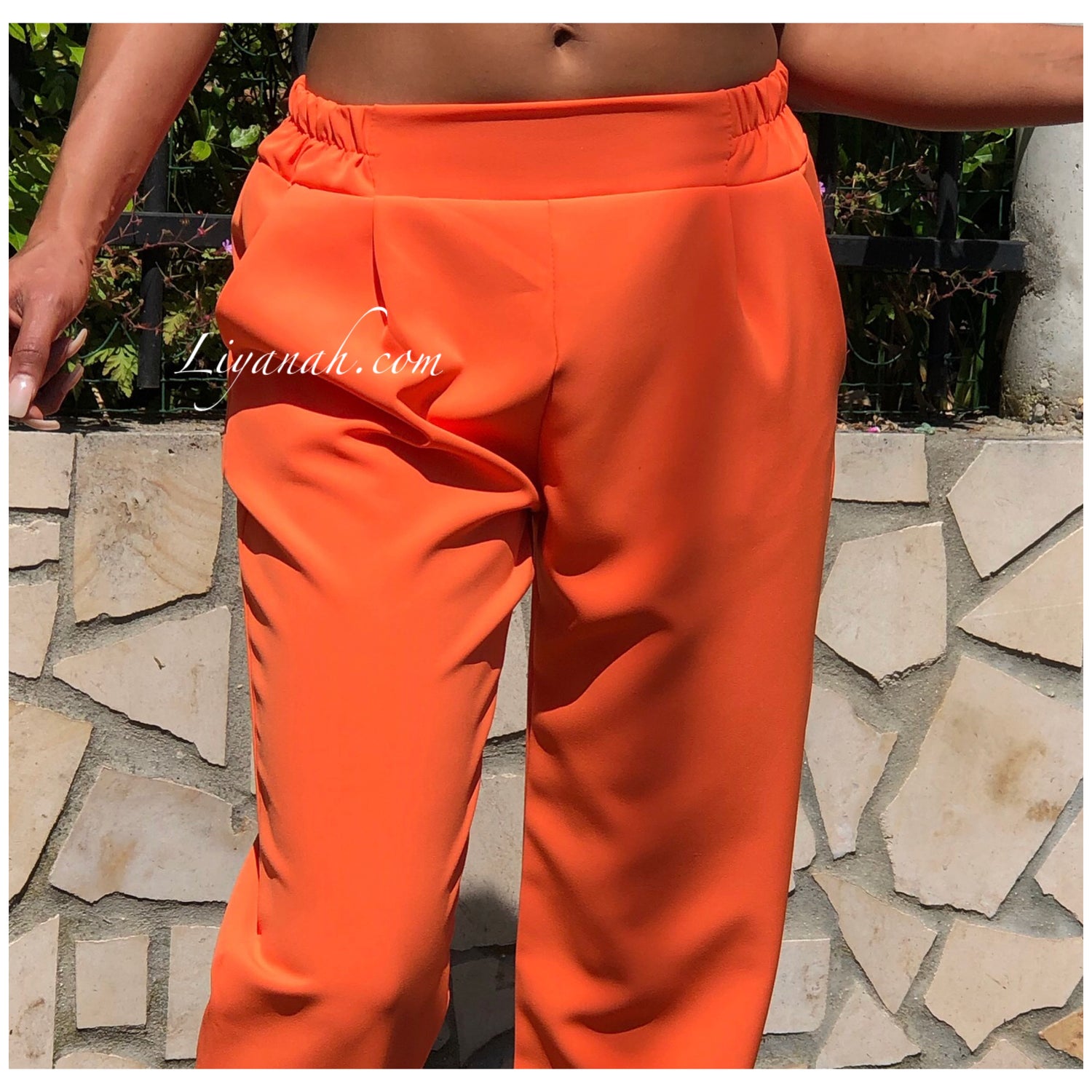 Pantalon coupe droite et large avec élastique à la taille et deux poches fonctionnelles, modèle léger et fluide - 97% Polyester 3% Elasthanne - Taille Unique du 36 au 40