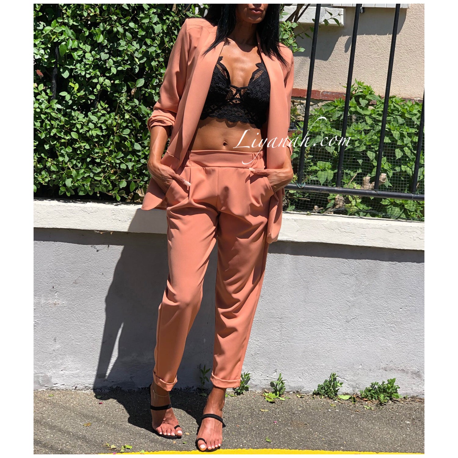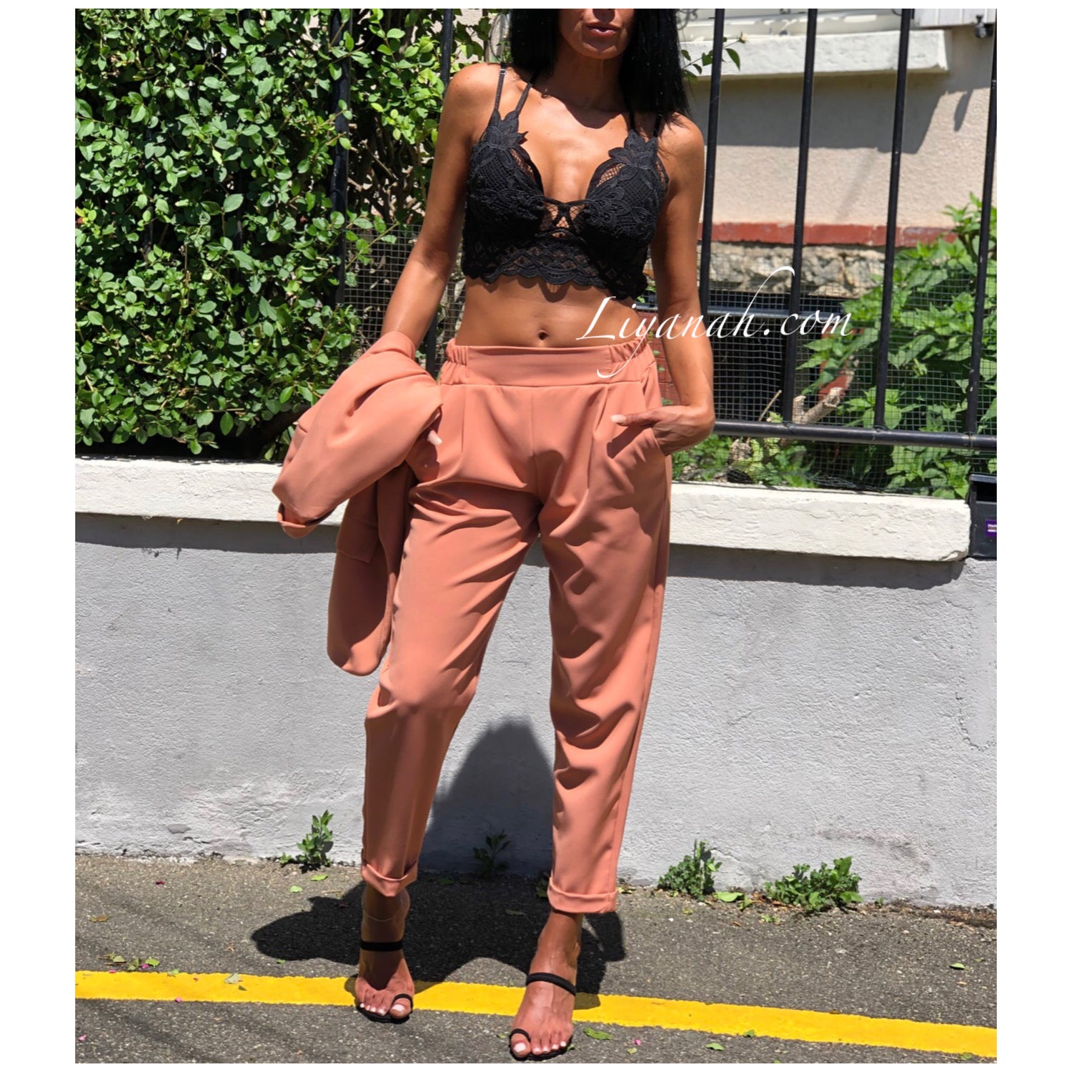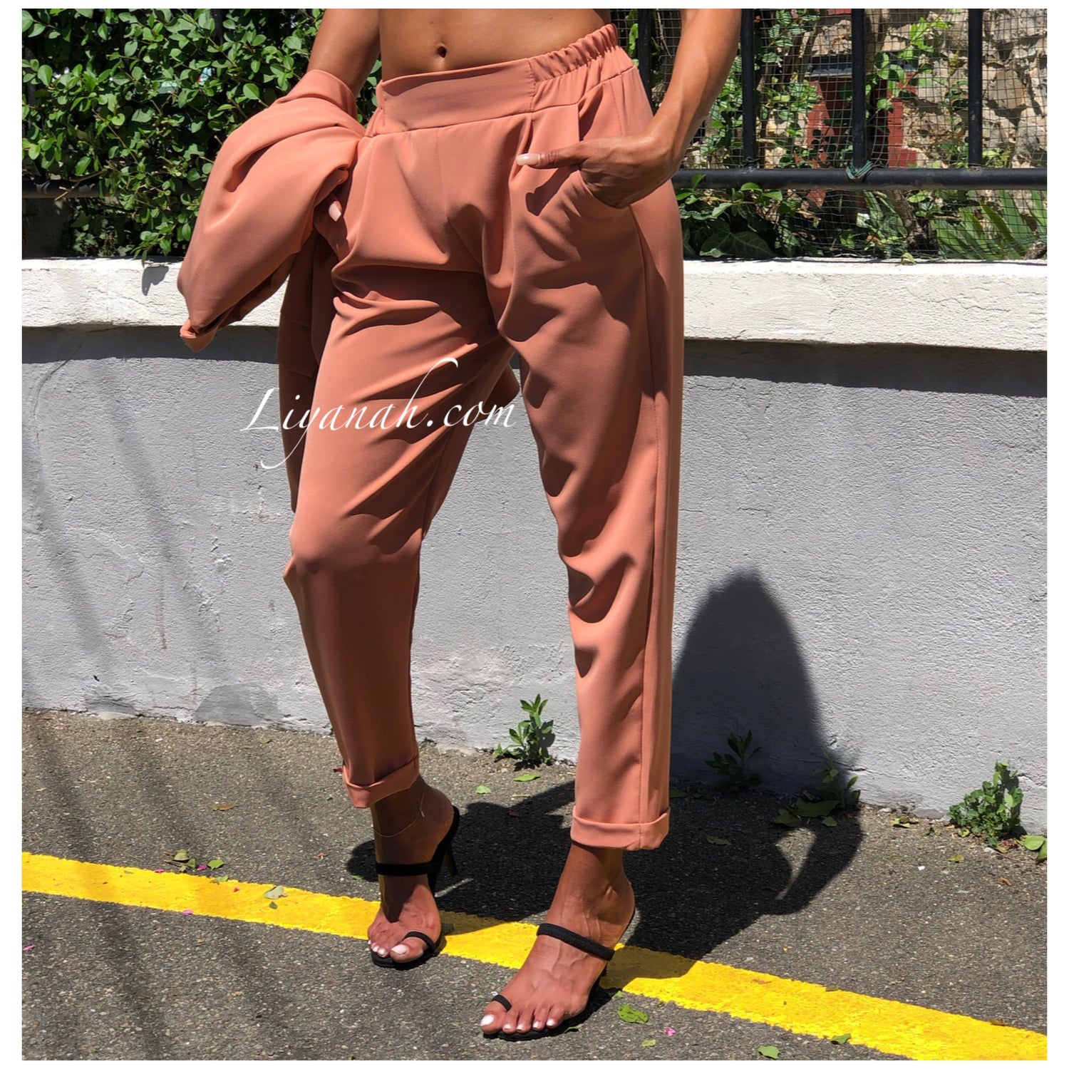 Pantalon coupe droite et large avec élastique à la taille et deux poches fonctionnelles, modèle léger et fluide - 97% Polyester 3% Elasthanne - Taille Unique du 36 au 40
