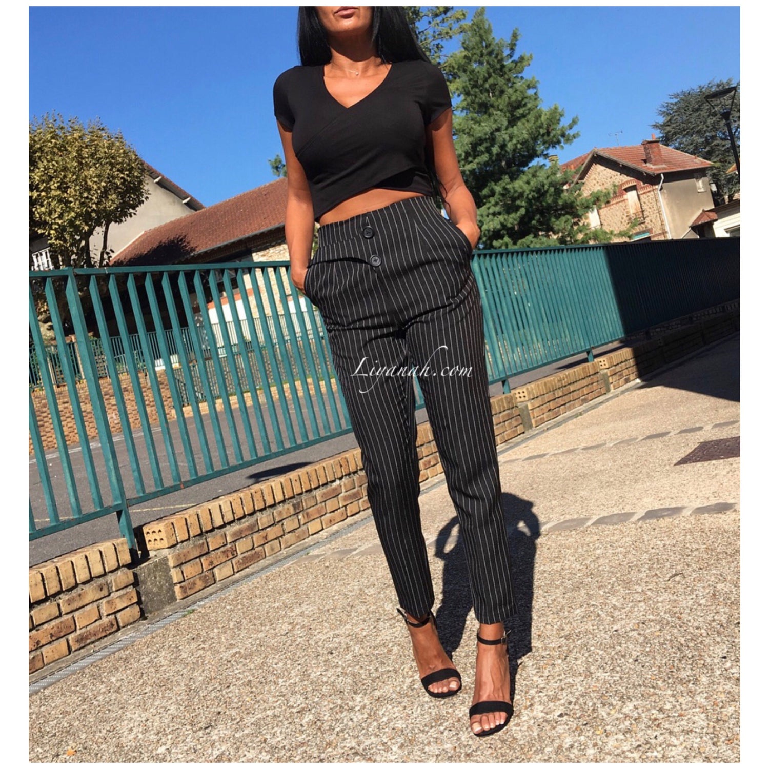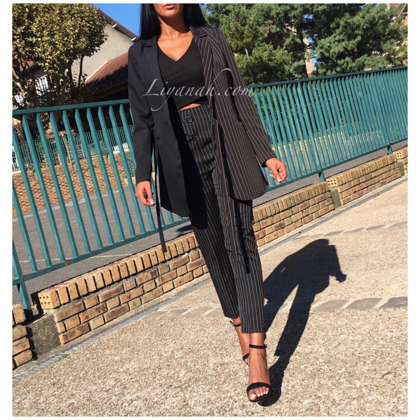 Confort idéal, des rayures légères et raffinées pour un tailleur qui surfe joliment sur la tendance urbain chic.