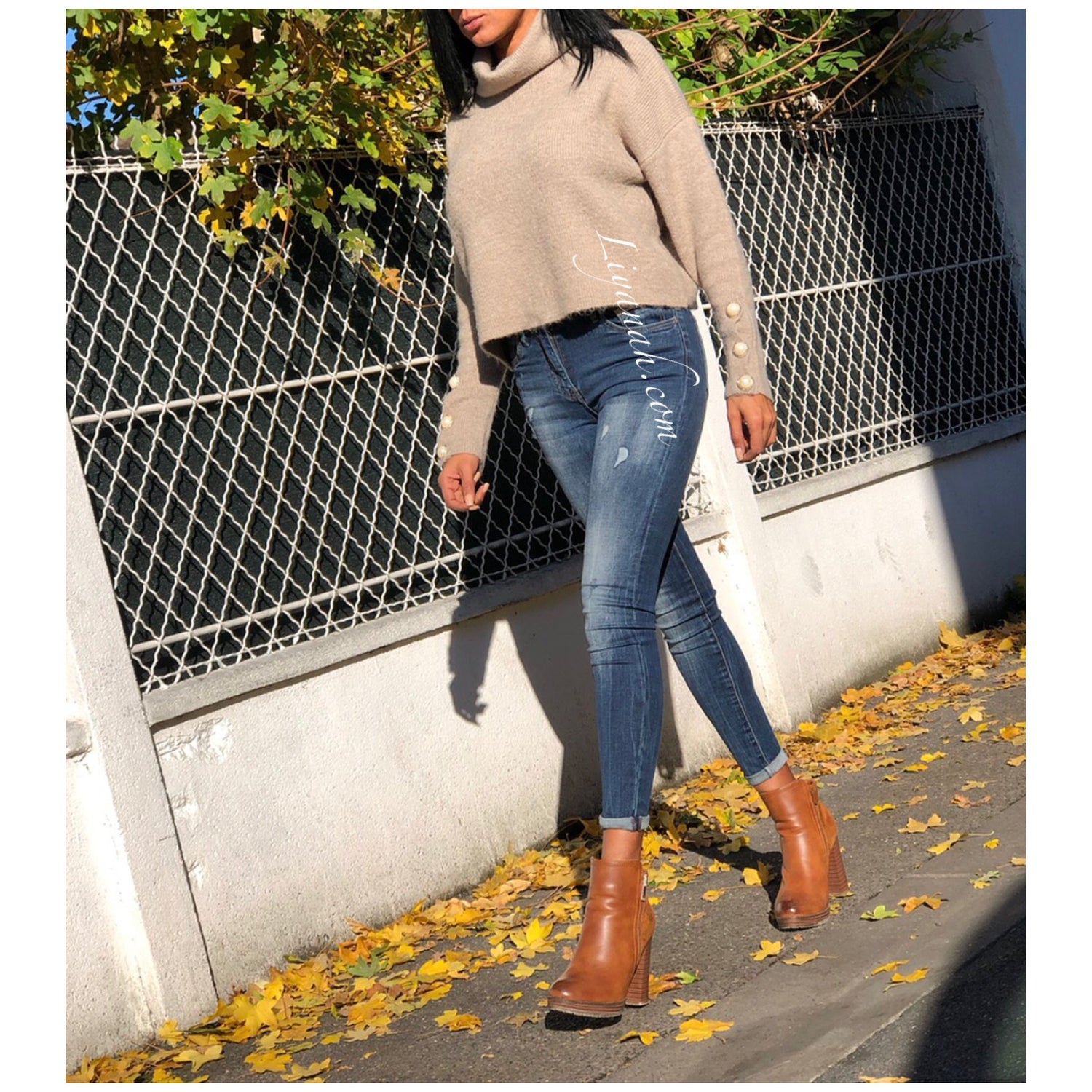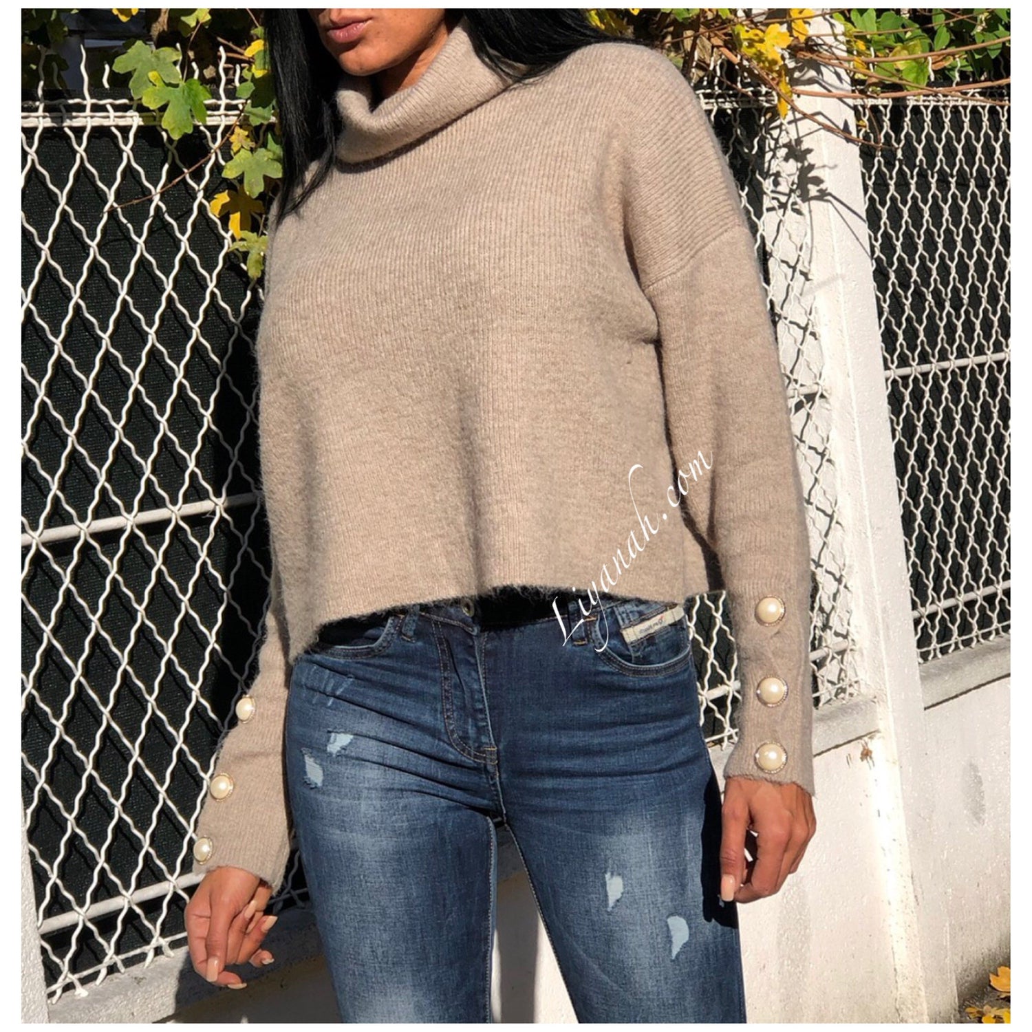 PULL Col Roulé Modèle AJYA ÉCRU PERLES