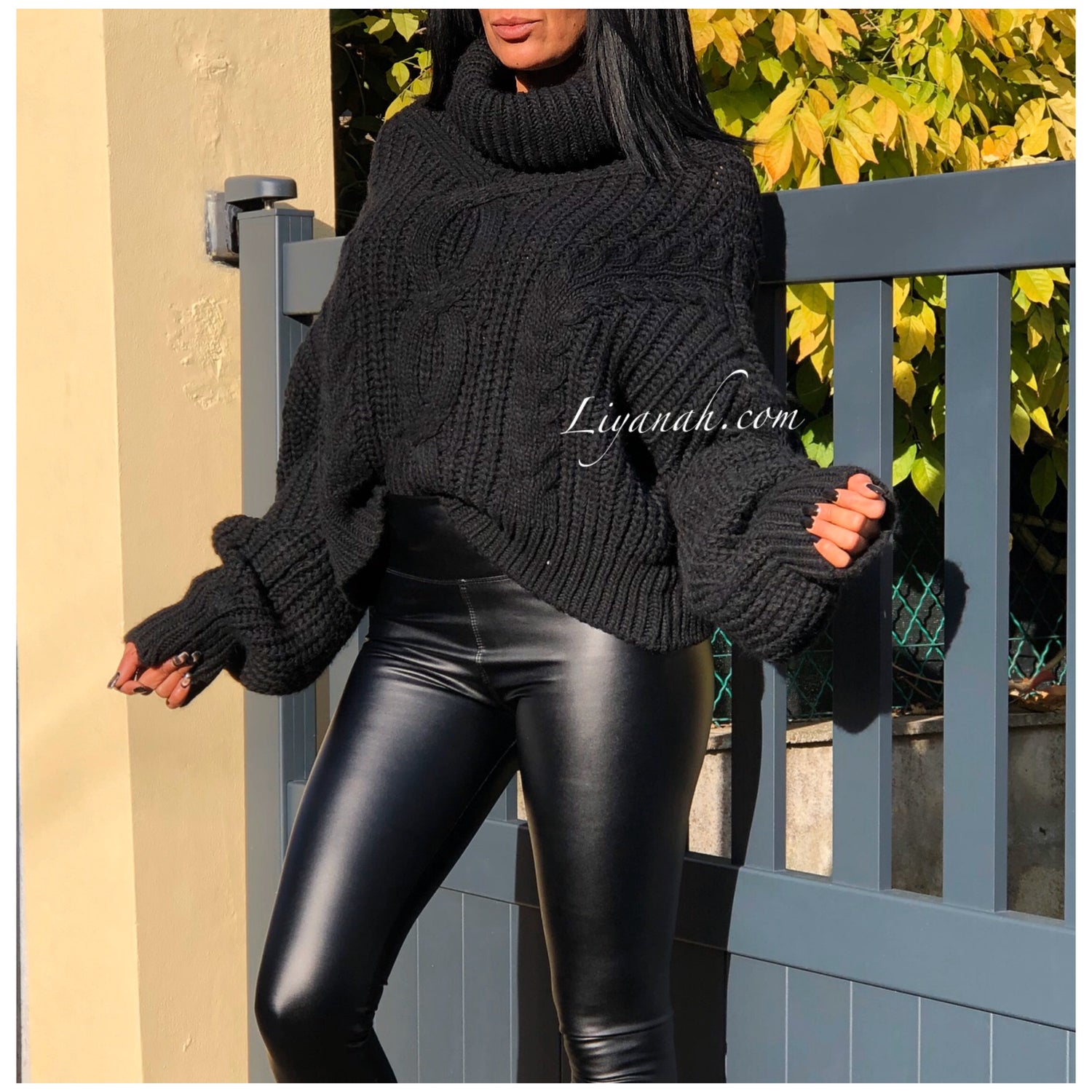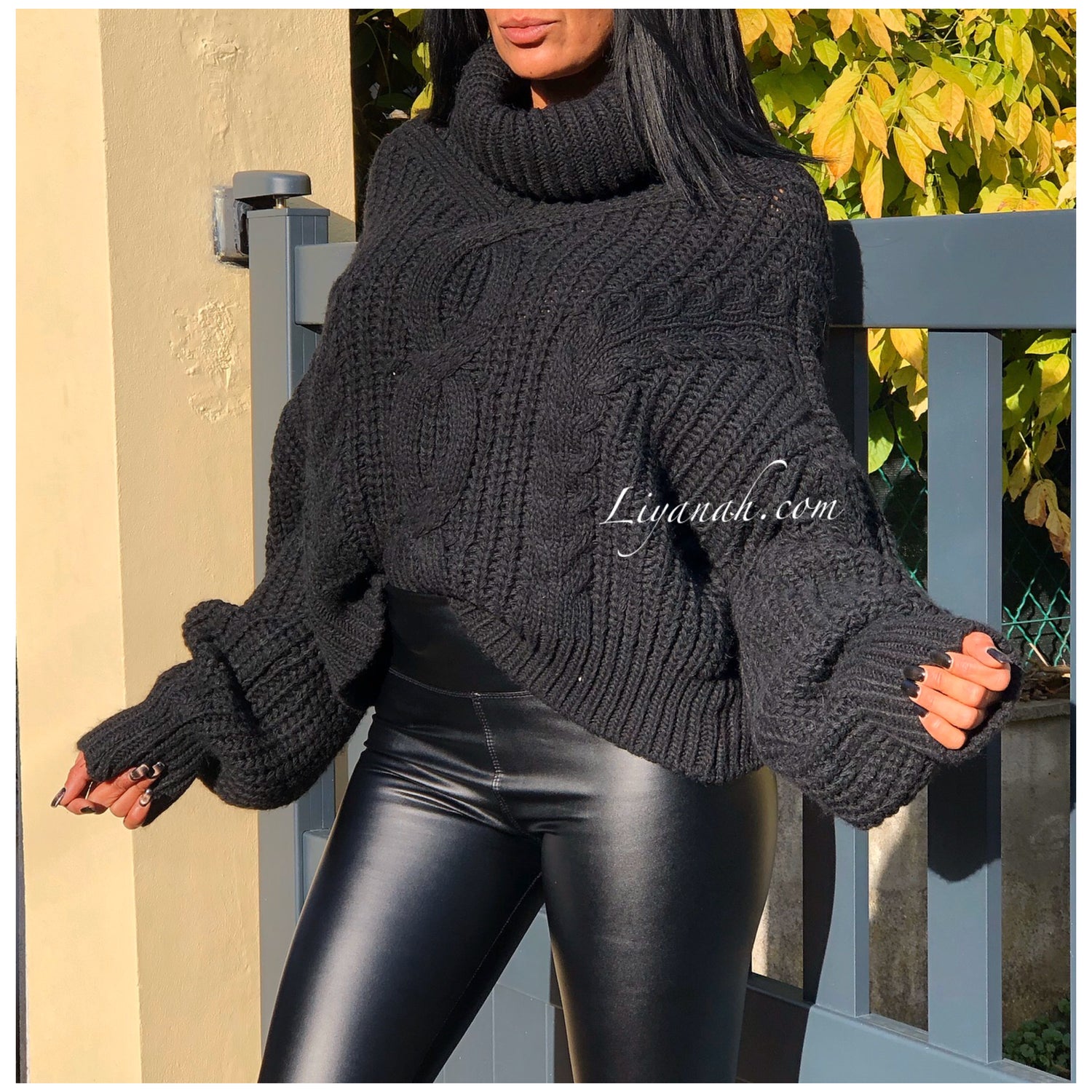 PULL Court Oversize Modèle ALLIEL Noir - Pull Style Oversize !!! Pull TOUT DOUX avec Col roulé et Manches amples 🌸 Pull en douce maille légèrement fine et épaisse, Finition en maille côtelée !!! Taille Unique (34 au 40) 84% Acrylique 8% Viscose 8% Laine - Disponible en Noir, Écru, Rouge, Camel et Blanc