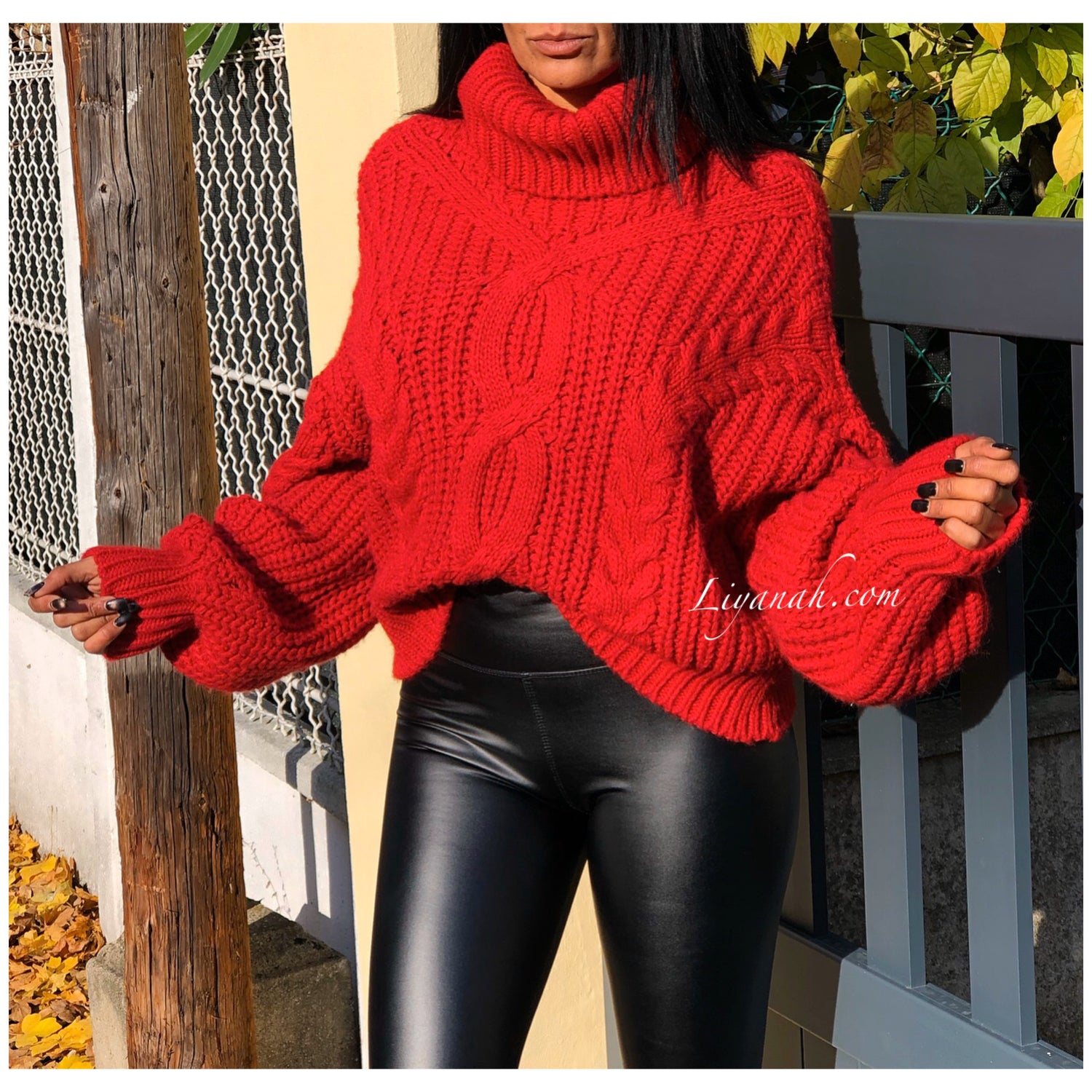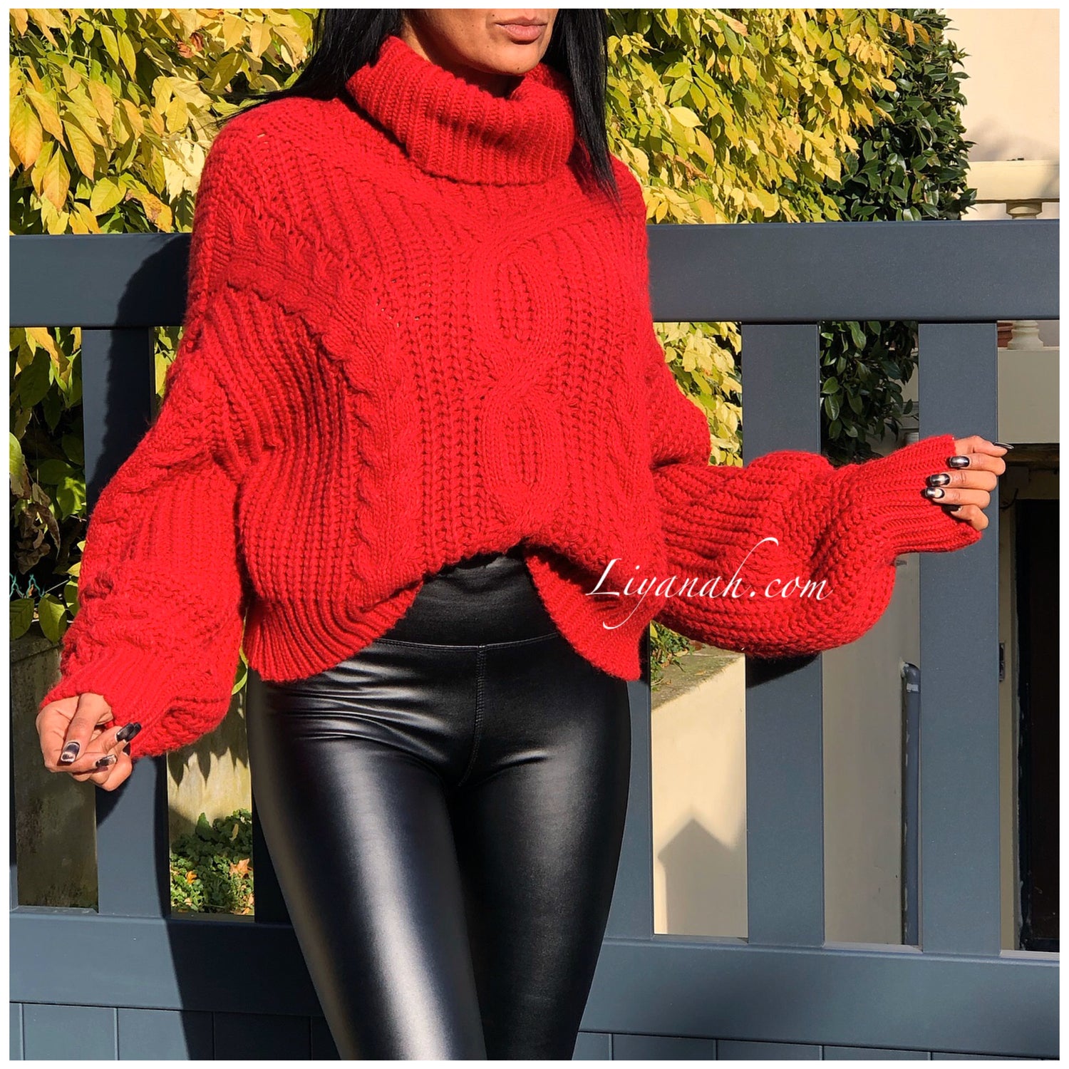 PULL Court Oversize Modèle ALLIEL Rouge - Pull Style Oversize !!! Pull TOUT DOUX avec Col roulé et Manches amples 🌸 Pull en douce maille légèrement fine et épaisse, Finition en maille côtelée !!! Taille Unique (34 au 40) 84% Acrylique 8% Viscose 8% Laine - Disponible en Noir, Écru, Rouge, Camel et Blanc