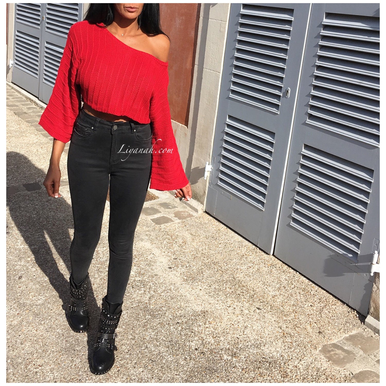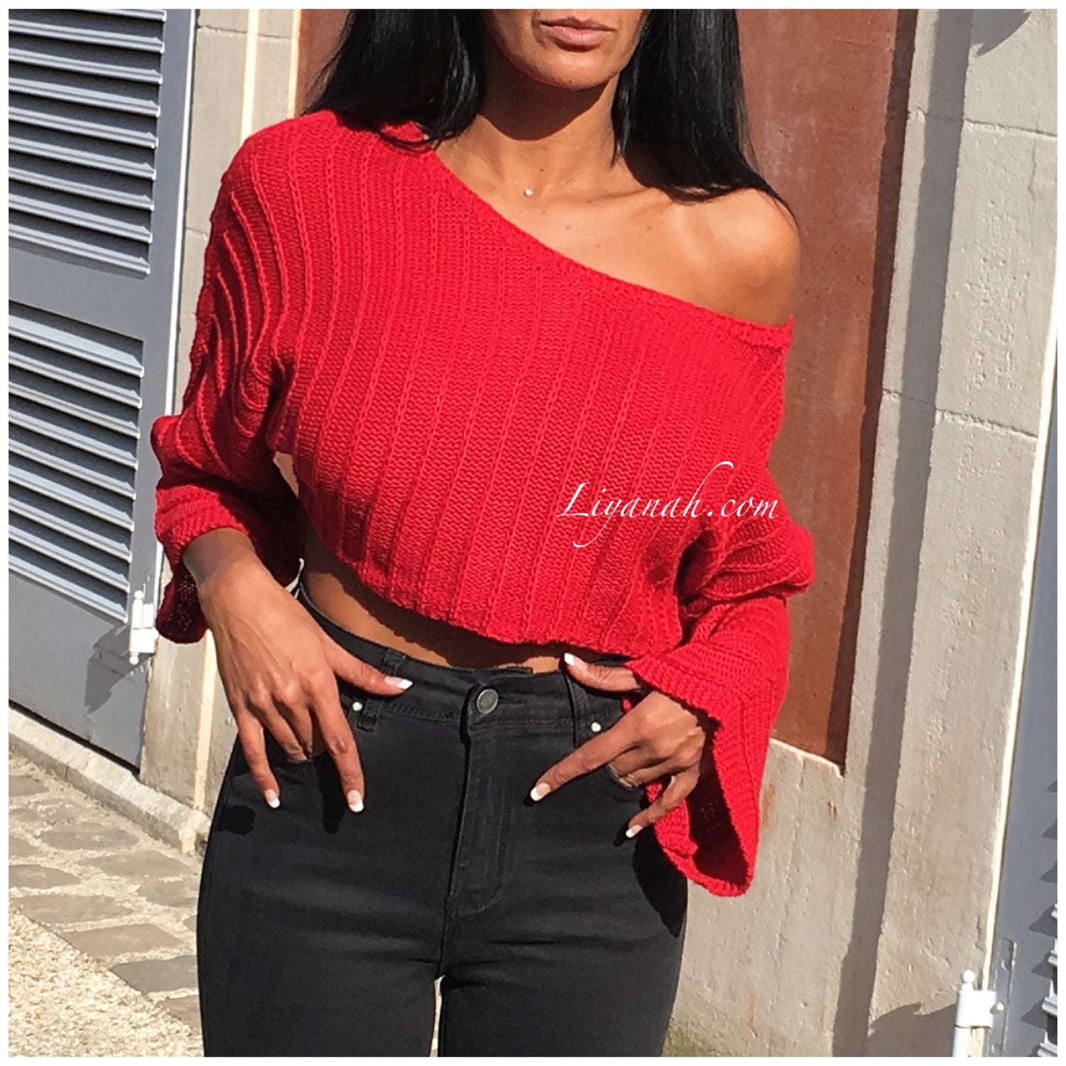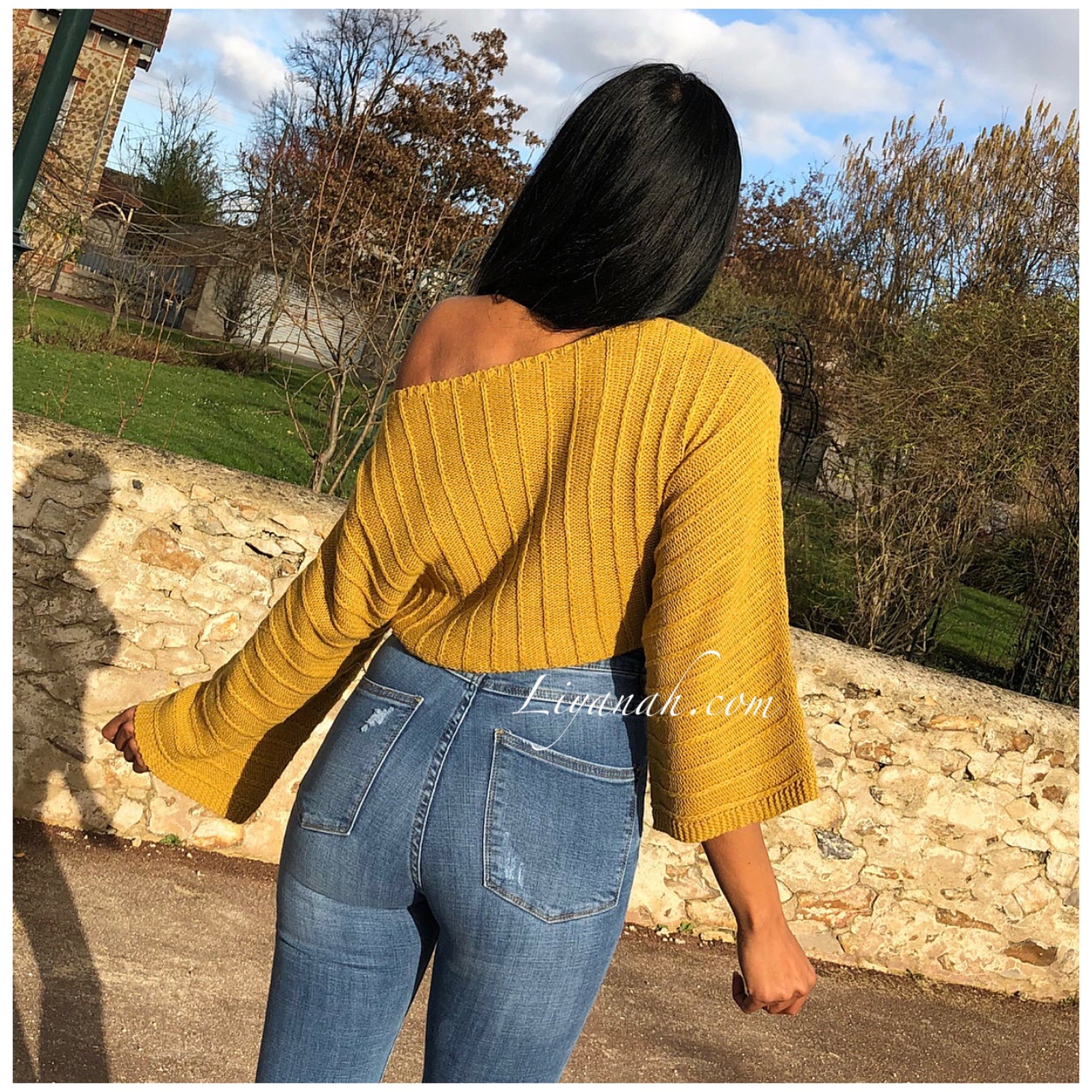 PULL Crop Top Modèle SYANE Noir, Écru, Rouge ou Moutarde