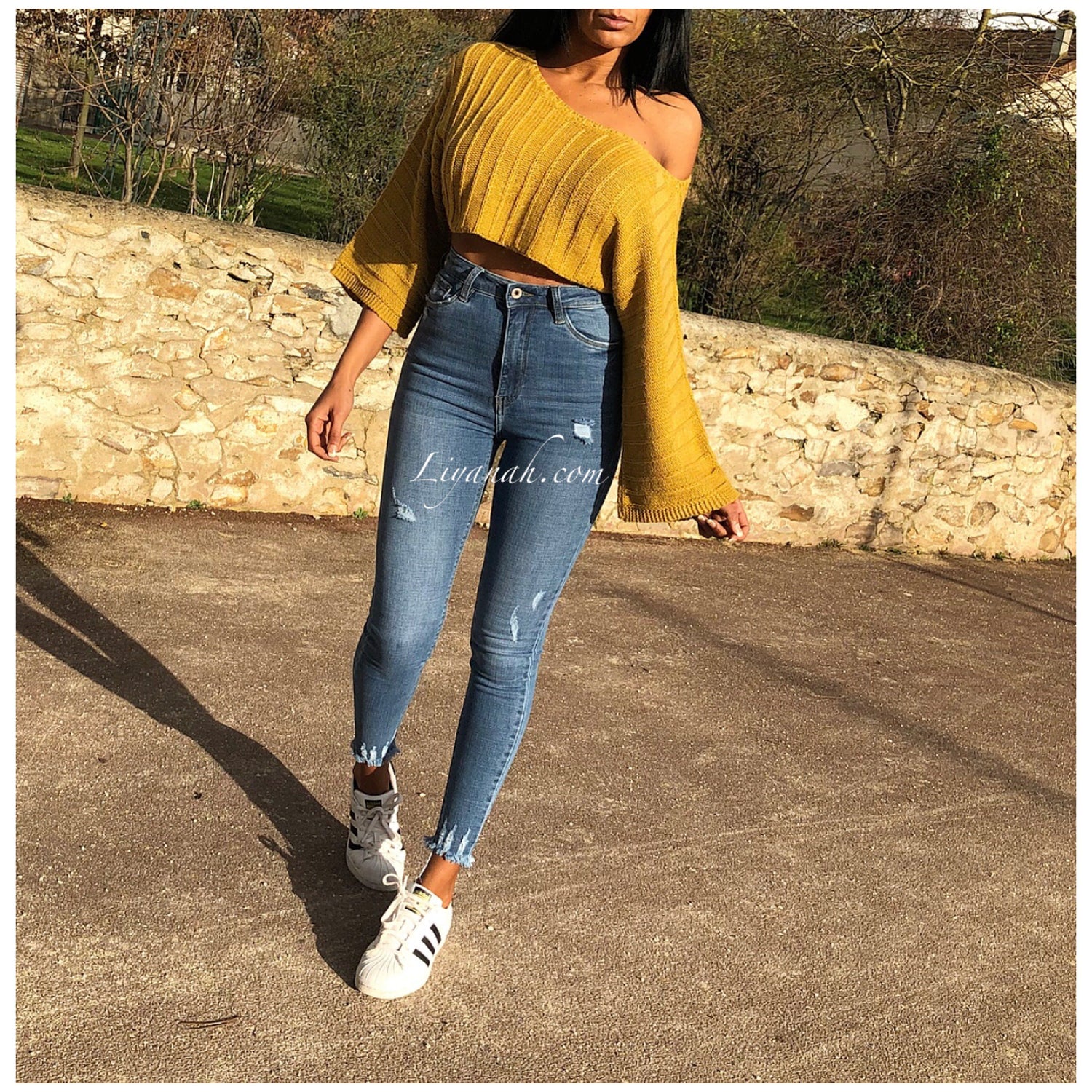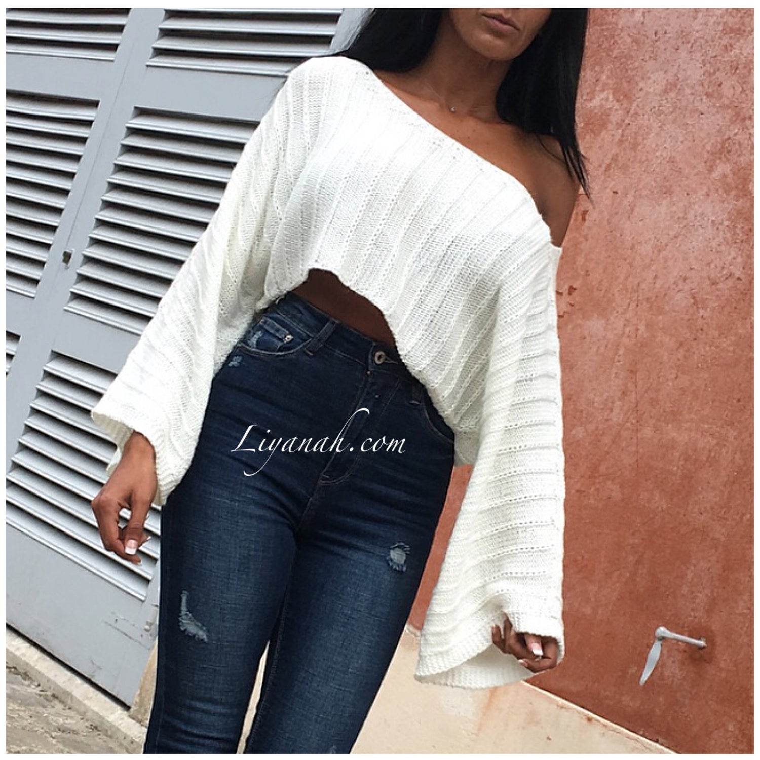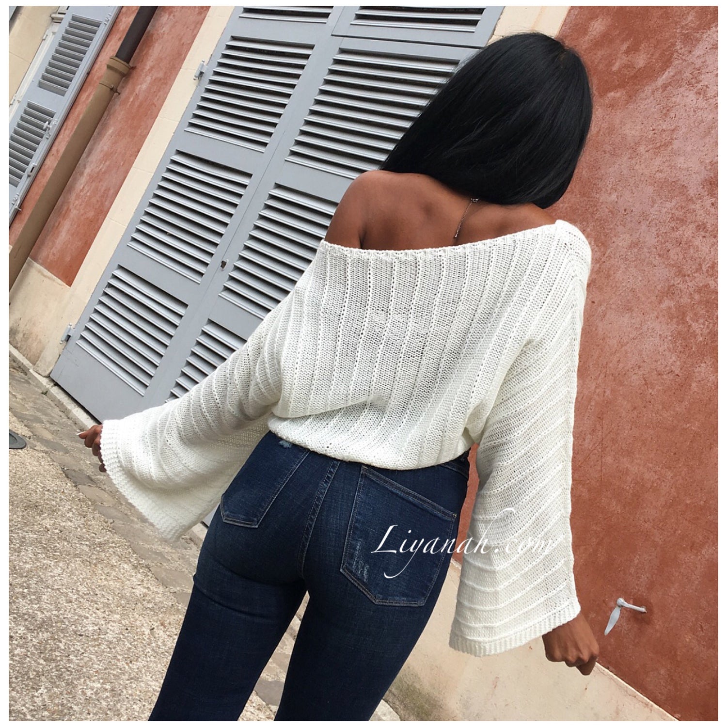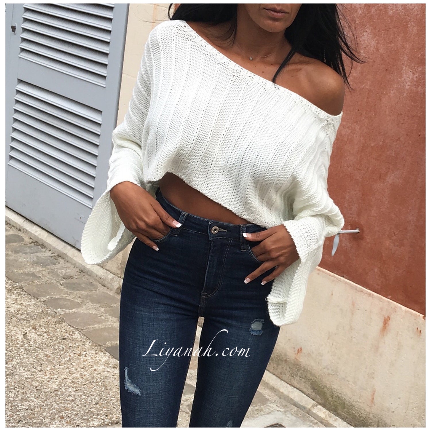 PULL Crop Top Modèle SYANE Noir, Écru, Rouge ou Moutarde