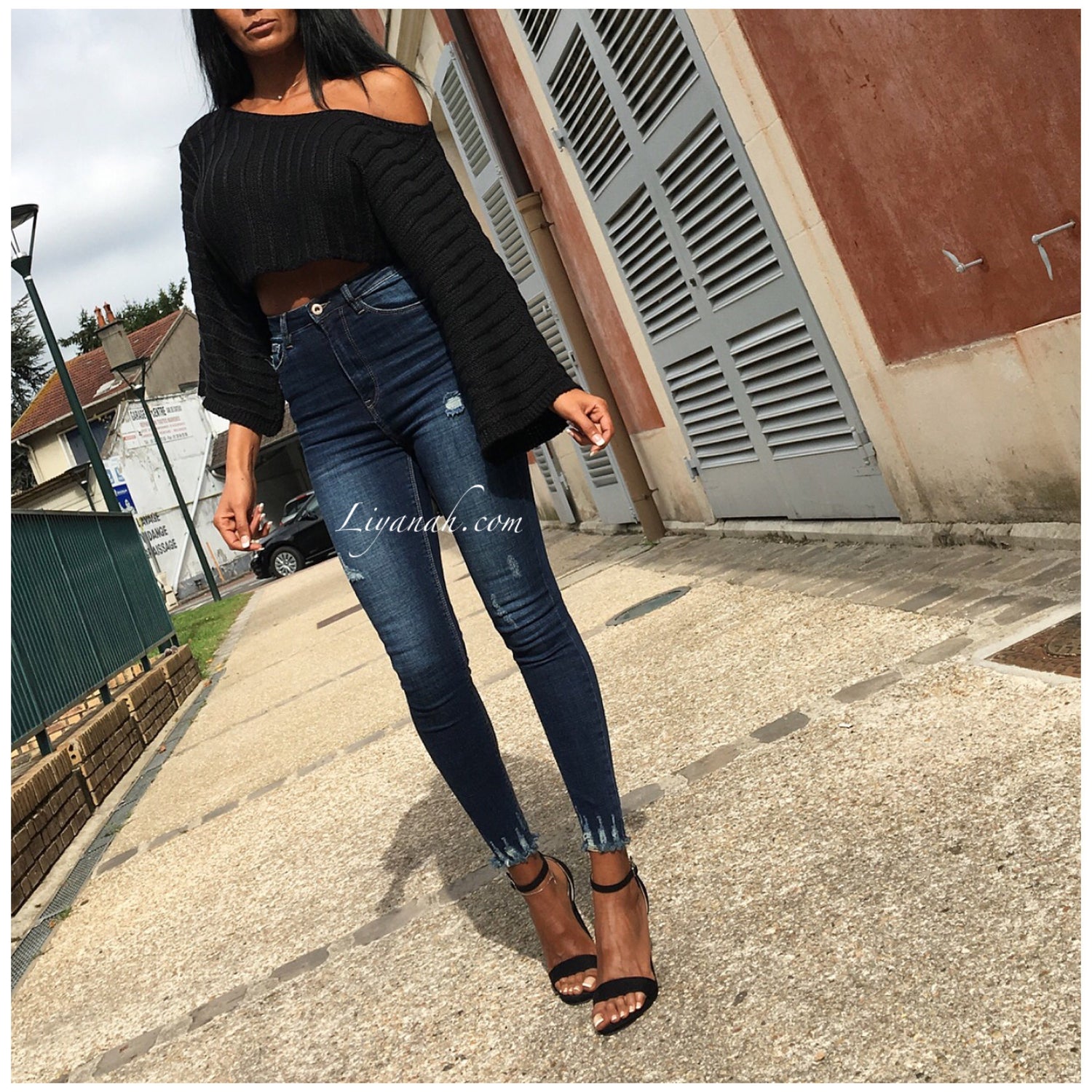 PULL Crop Top Modèle SYANE Noir, Écru, Rouge ou Moutarde Pull court !!!! Manches larges ! Maille légèrement épaisse Col Rond Taille Unique (34 au 38) 85% Acrylique 25% Mohair