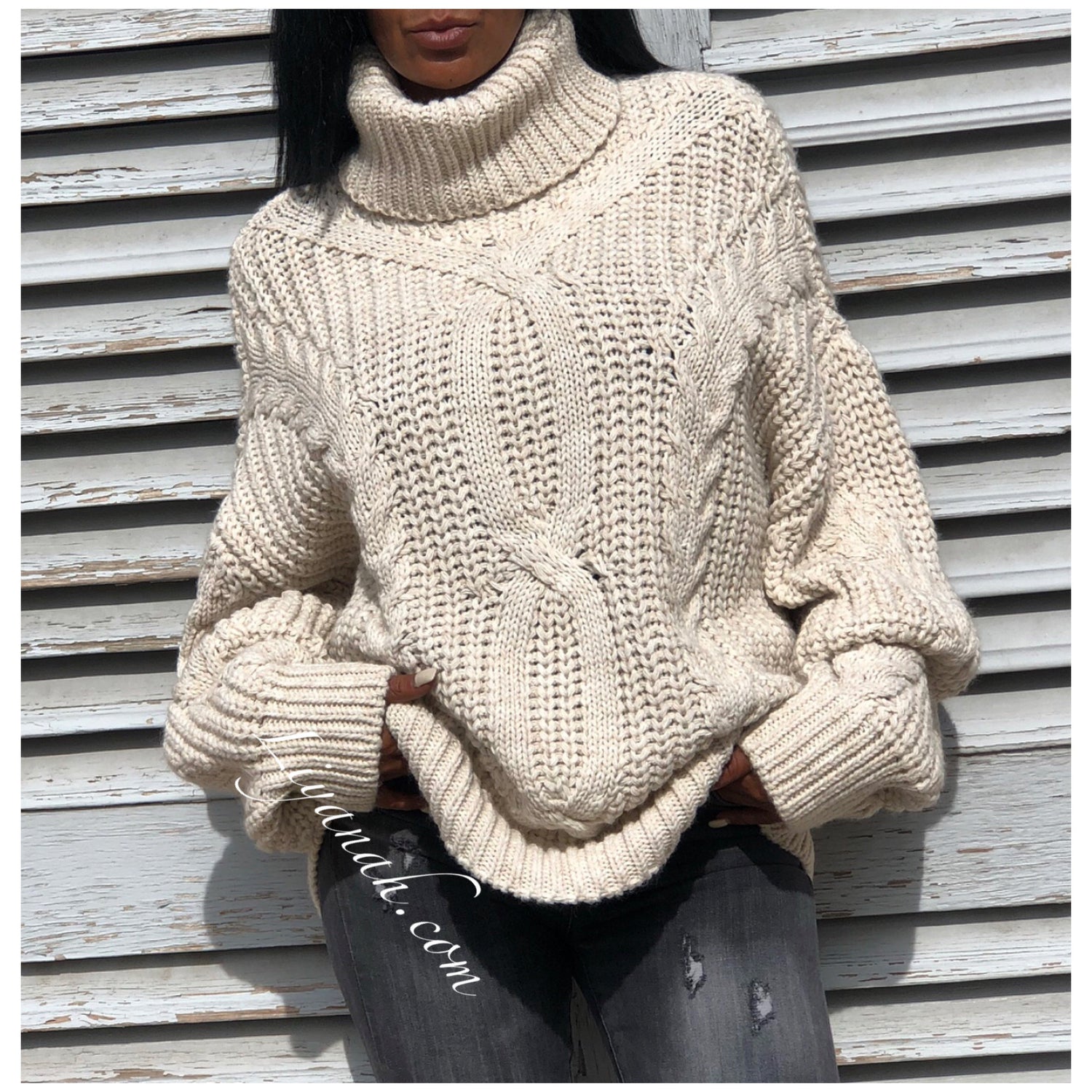 Pull Mi-long, Style Oversize !!! Pull TOUT DOUX avec Col roulé et Manches amples 🌸 Pull en douce maille légèrement fine et épaisse, Finition en maille côtelée !!! Taille Unique (34 au 40) 86% Acrylique 7% Viscose 7% Laine - Disponible en Noir, Écru, Moutarde, Rouge et Gris Foncé