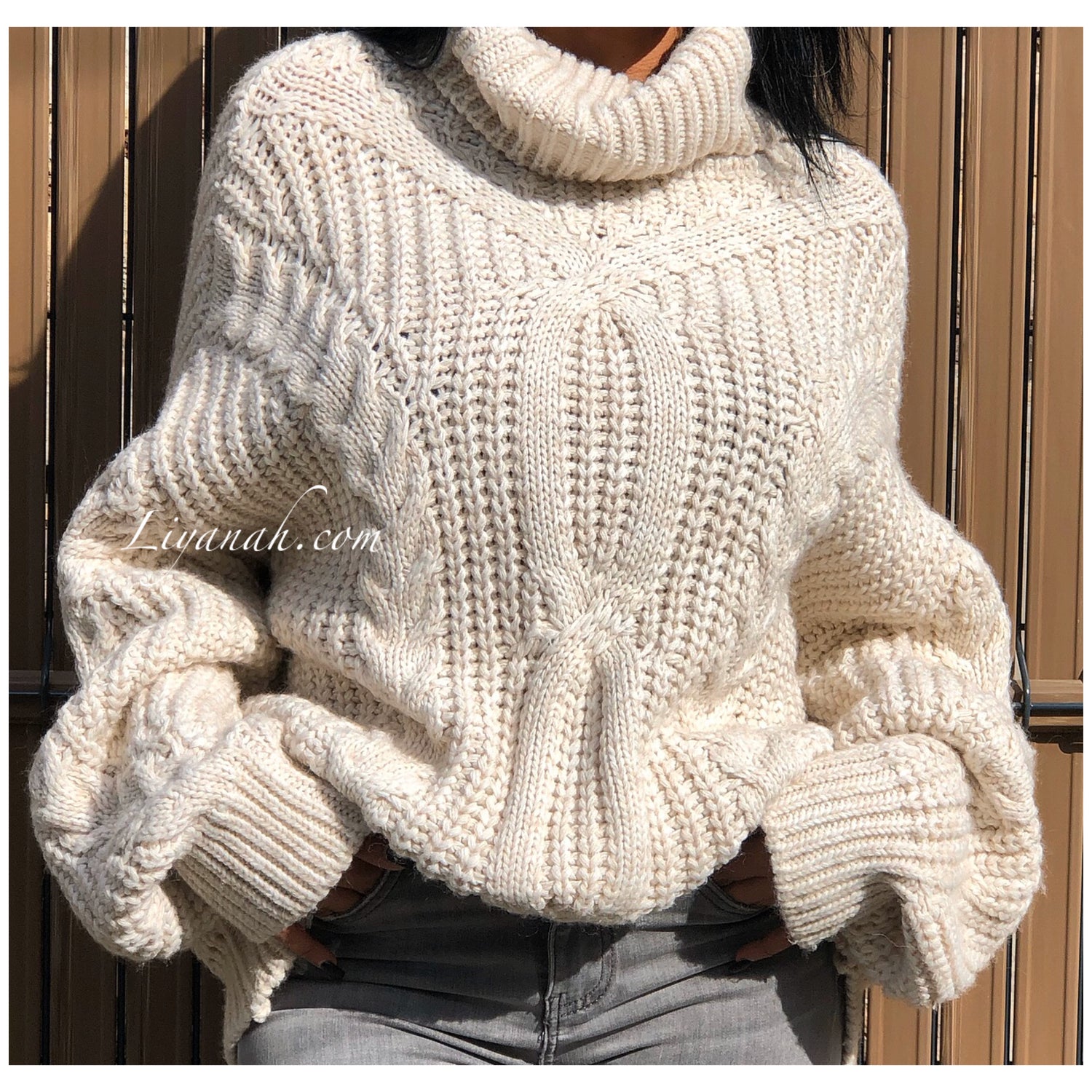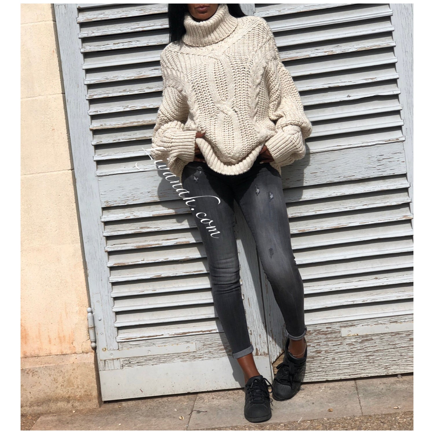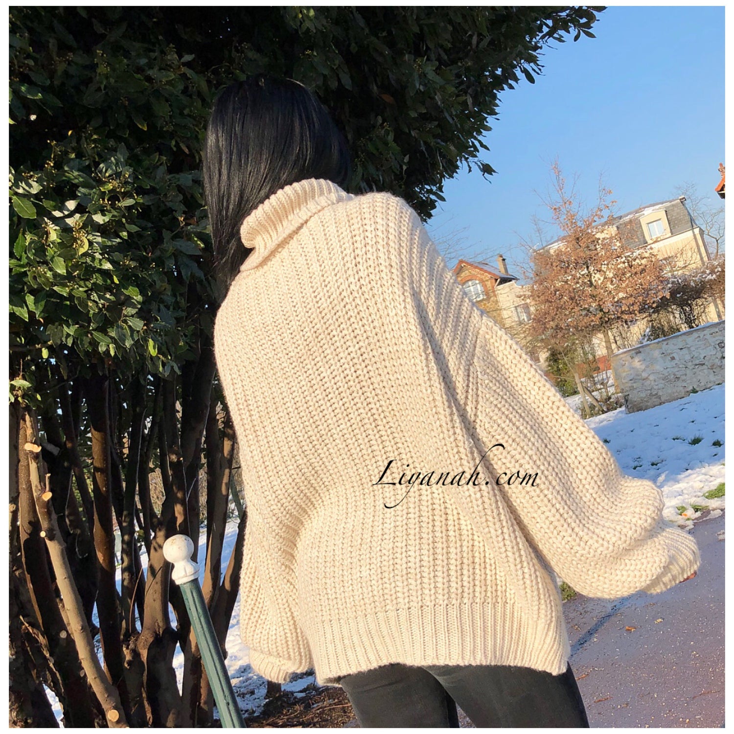 PULL MI-LONG Oversize Modèle ALLIEL Écru