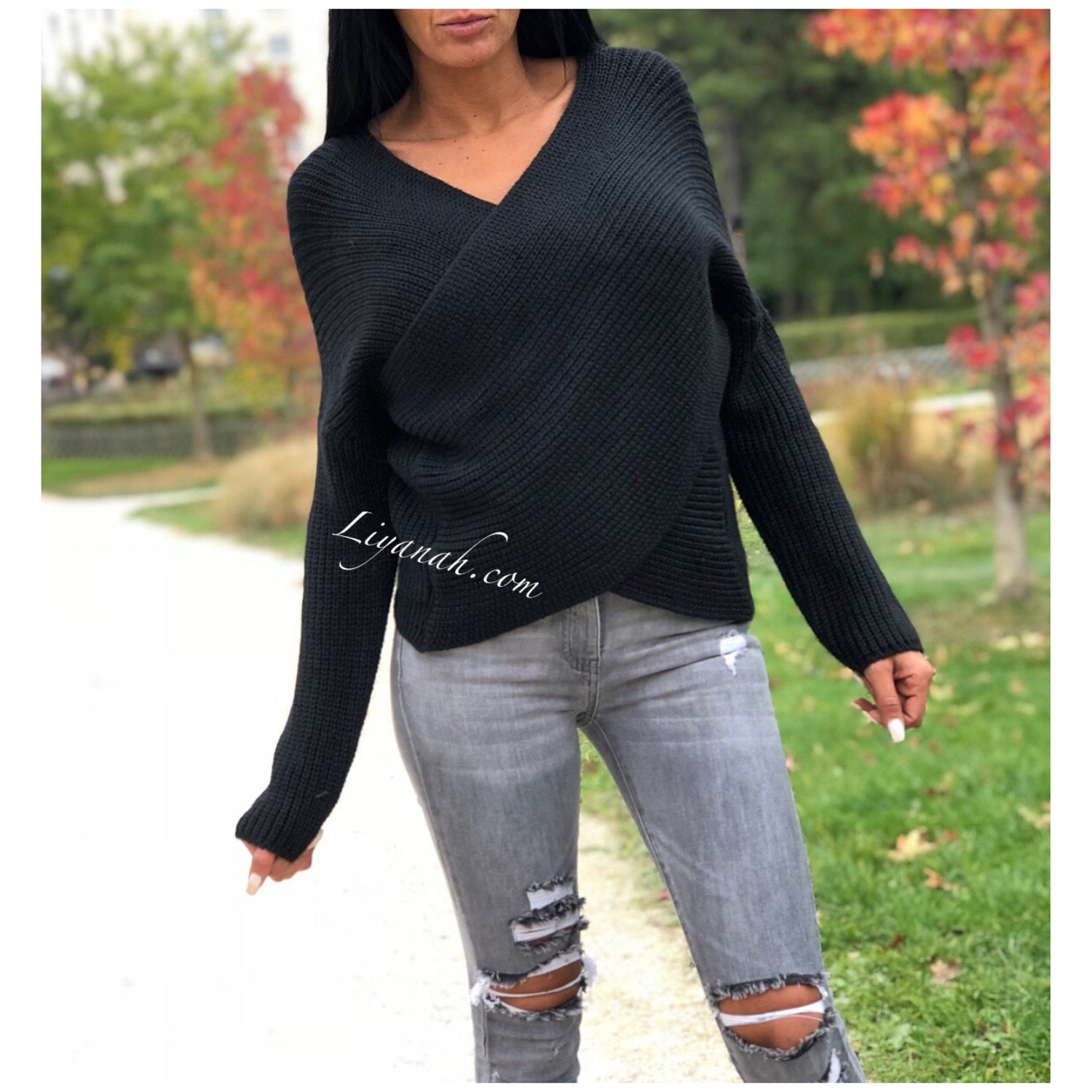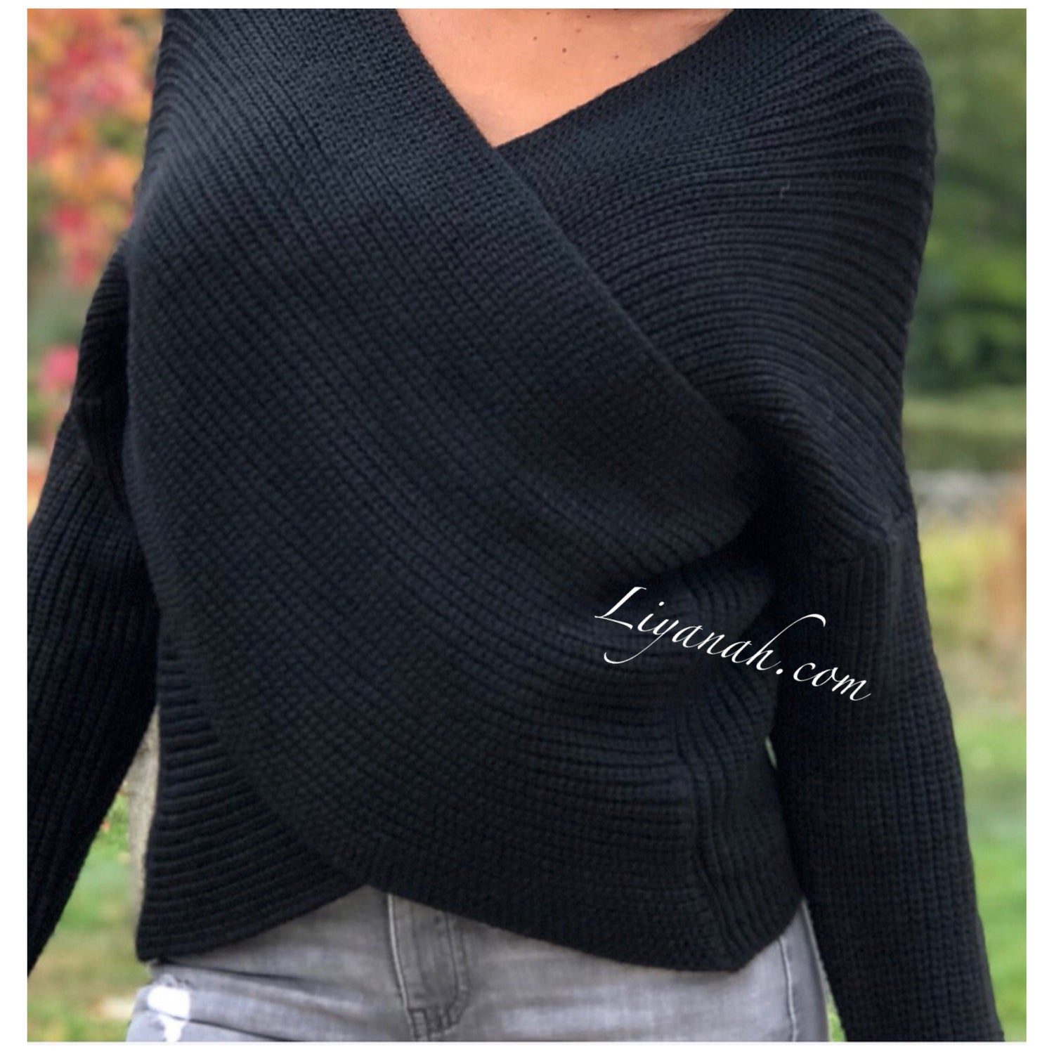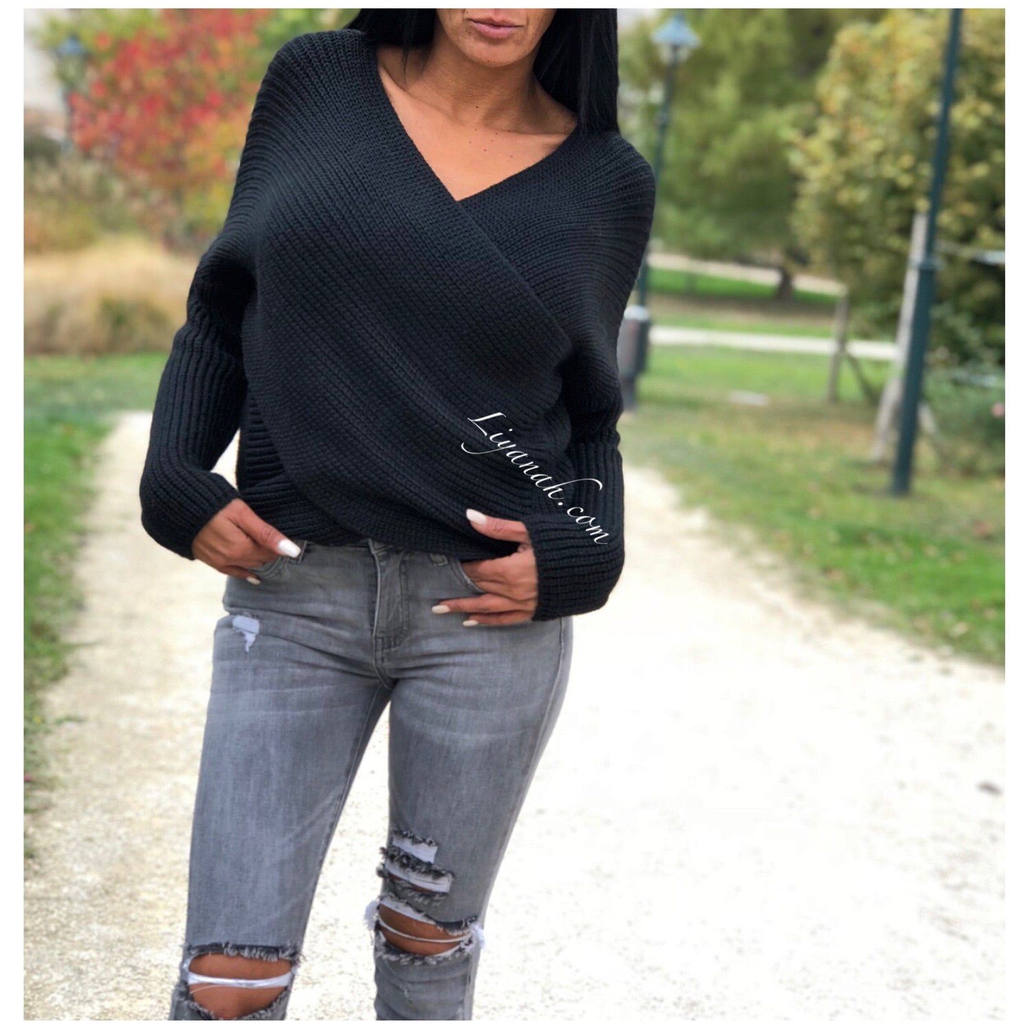 PULL Modèle KARALA NOIR - Manches longues et détails croisés à l’avant 🖤 Originalité Tout en simplicité - Maille douce et fine - Taille Unique du 34 au 38 !! 84% Acrylique 8% Viscose 8% Laine - Longueur : 62 cm (à partir de l’épaule)