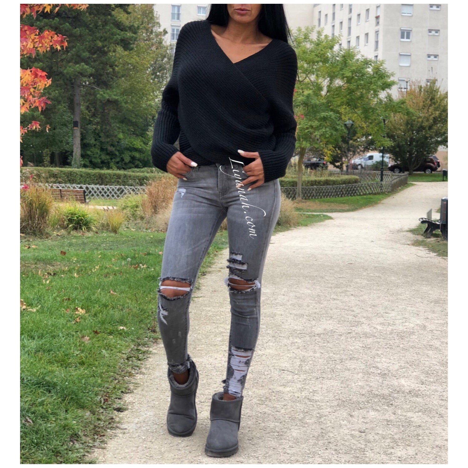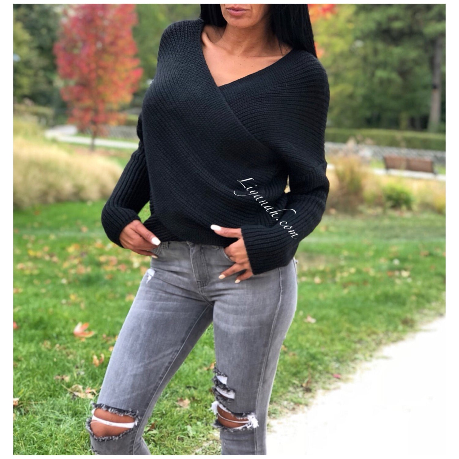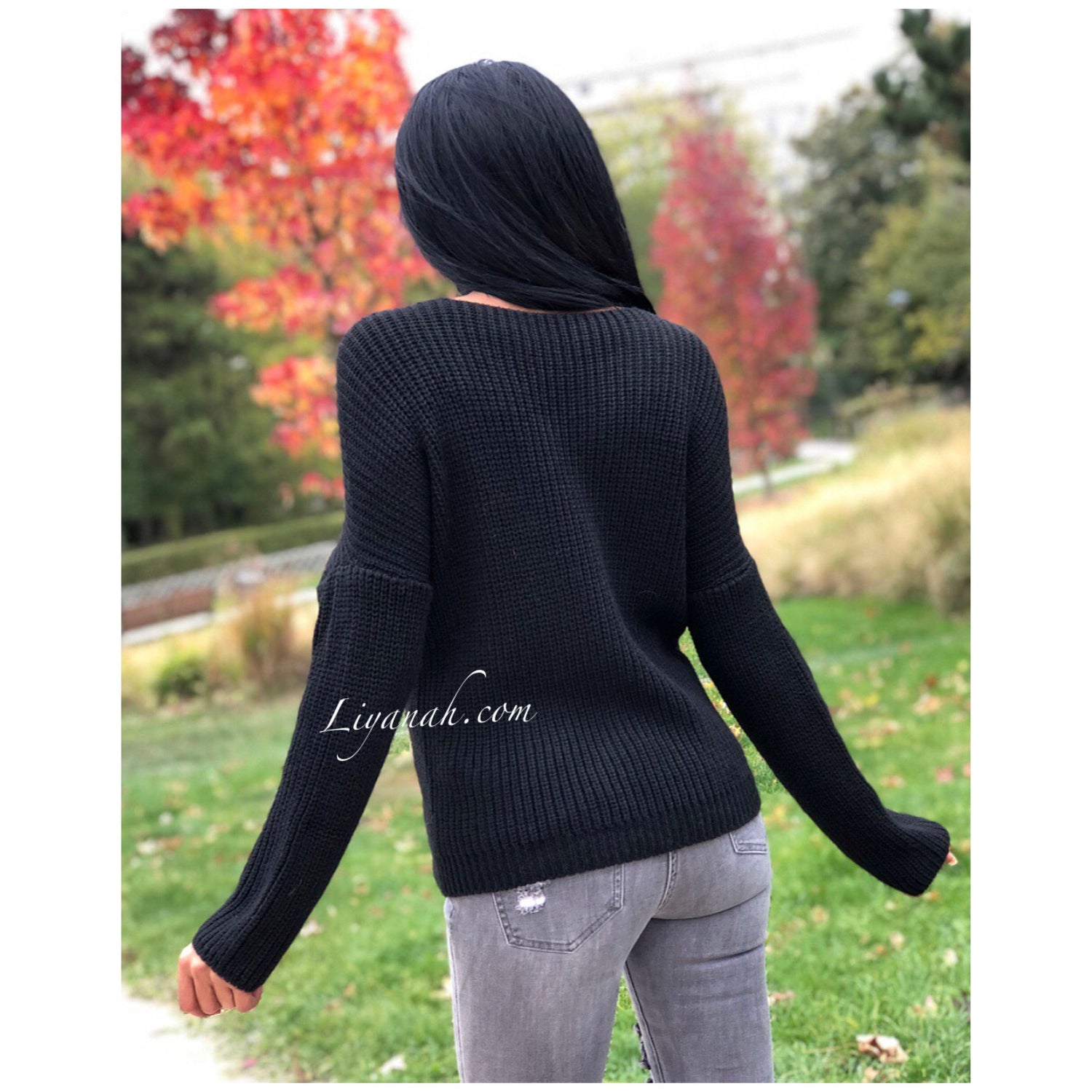 PULL Modèle KARALA NOIR - Manches longues et détails croisés à l’avant 🖤 Originalité Tout en simplicité - Maille douce et fine - Taille Unique du 34 au 38 !! 84% Acrylique 8% Viscose 8% Laine - Longueur : 62 cm (à partir de l’épaule)