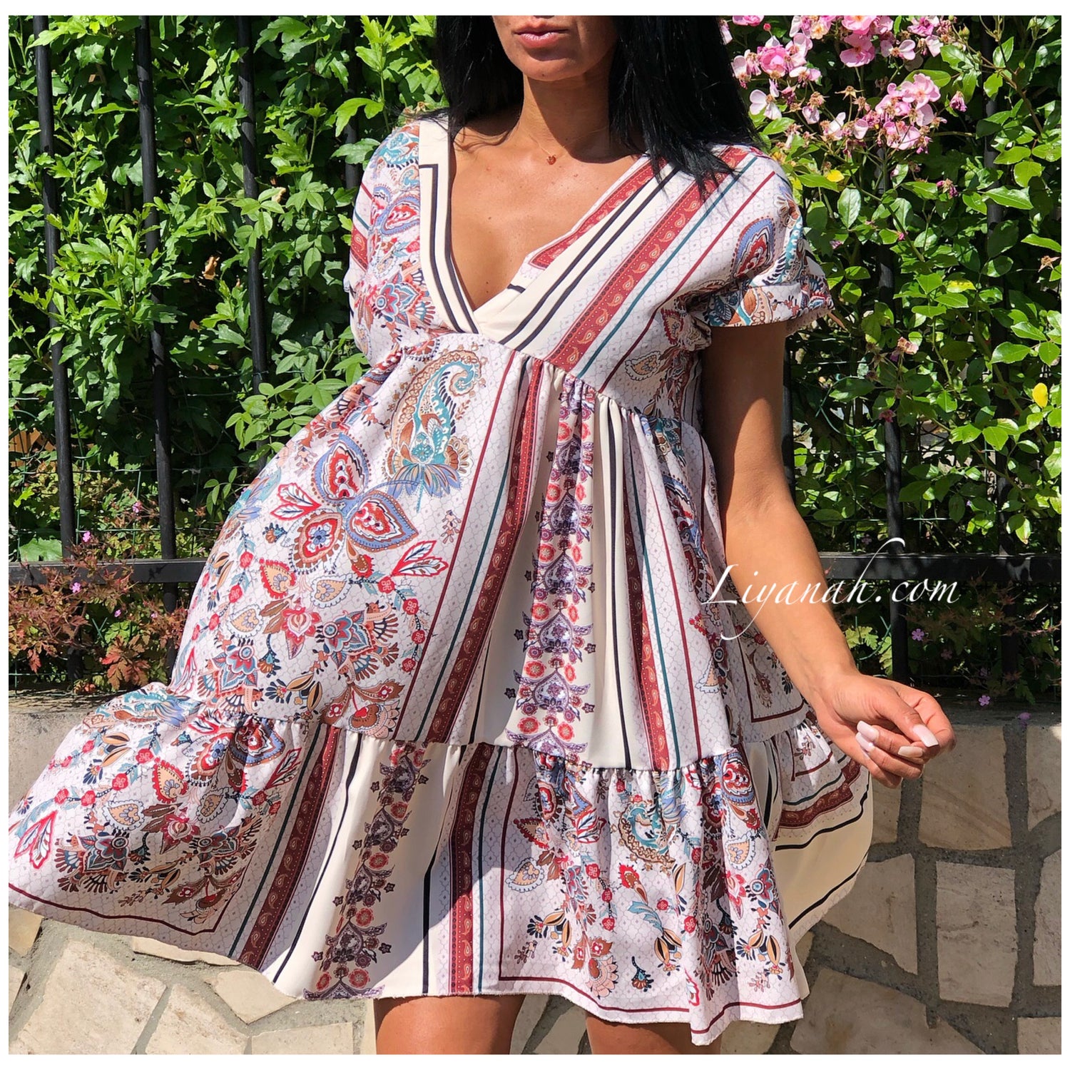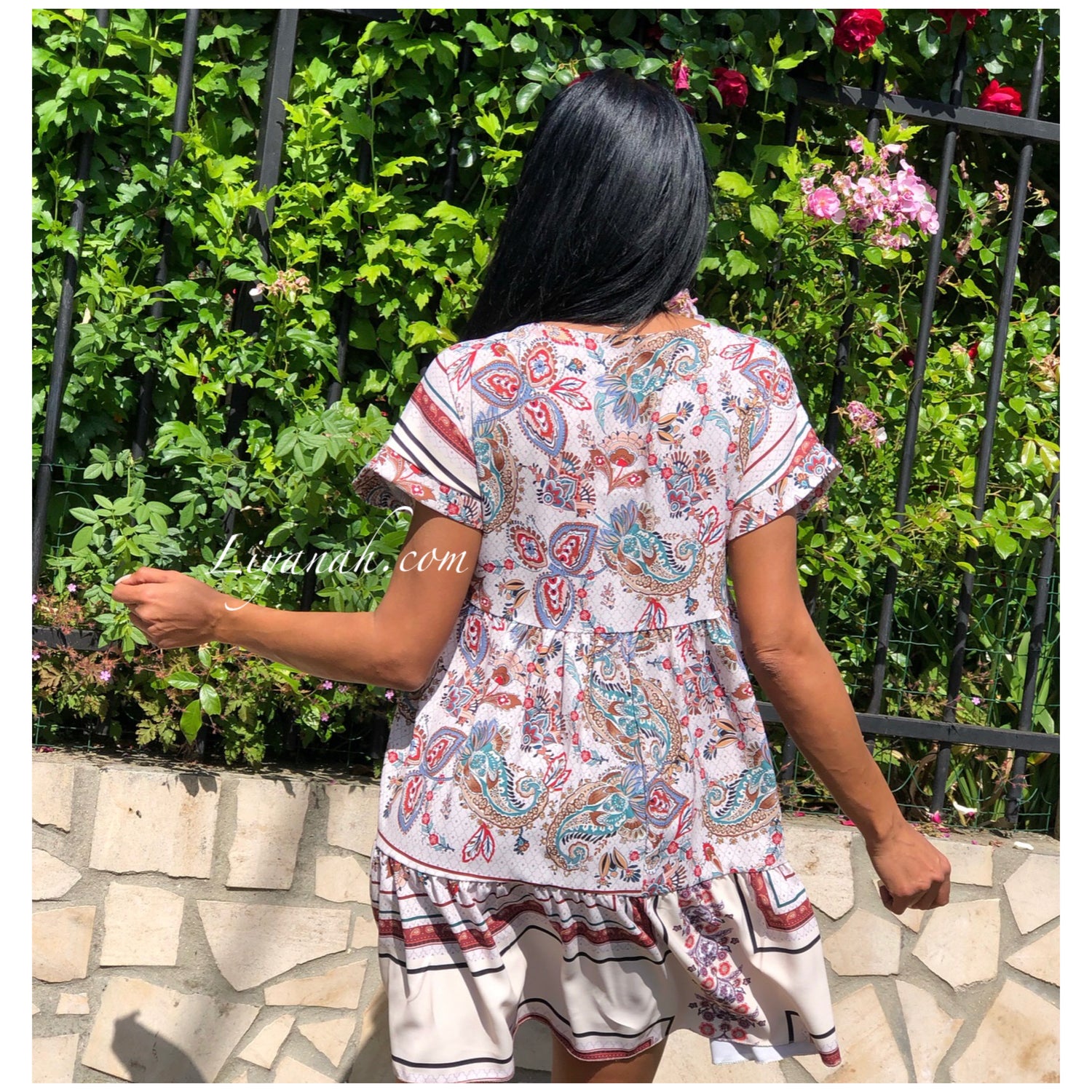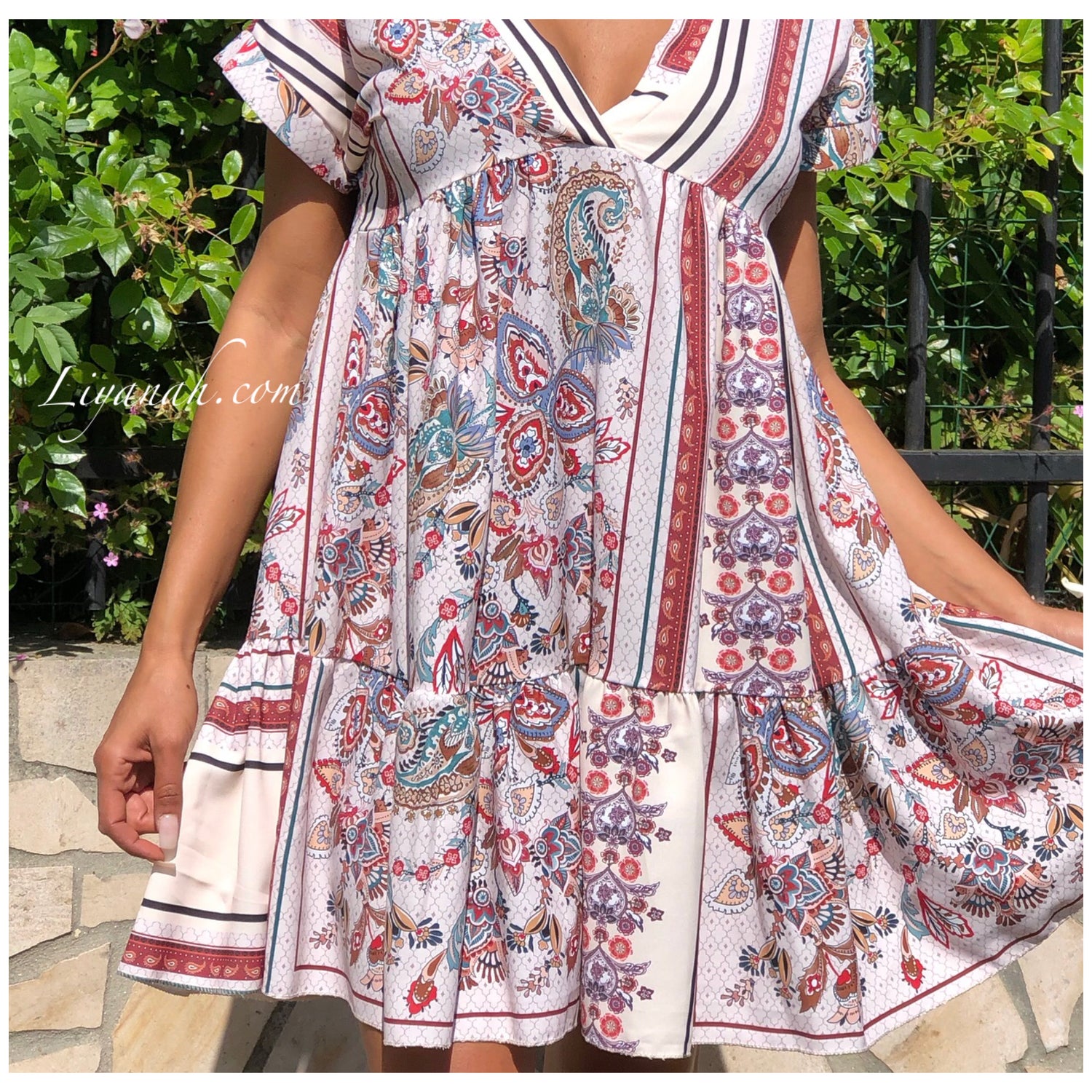 ROBE Courte Style Tunique à enfiler !!! Robe à Imprimée Évasée, fluide et décontractée, Taille Unique pour une taille 34 au 38 - 95% Polyester 5% Elasthanne - Matière légèrement épaisse et Fluide  - AGRÉABLE À PORTER